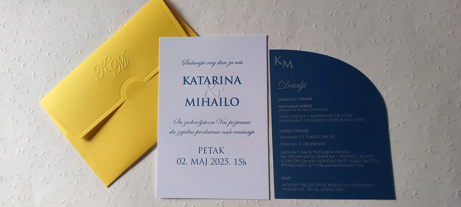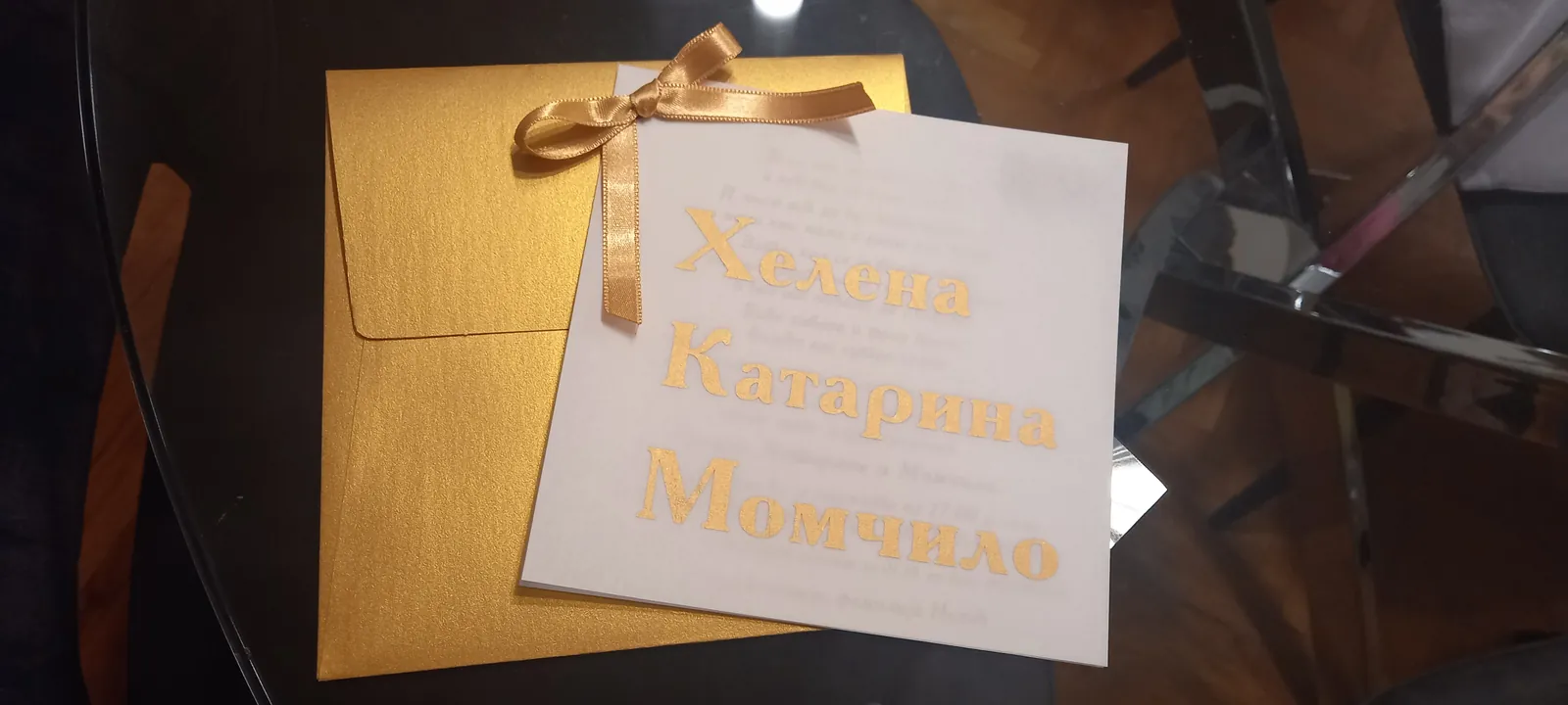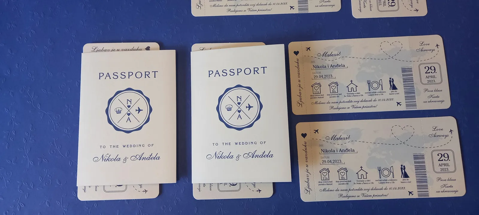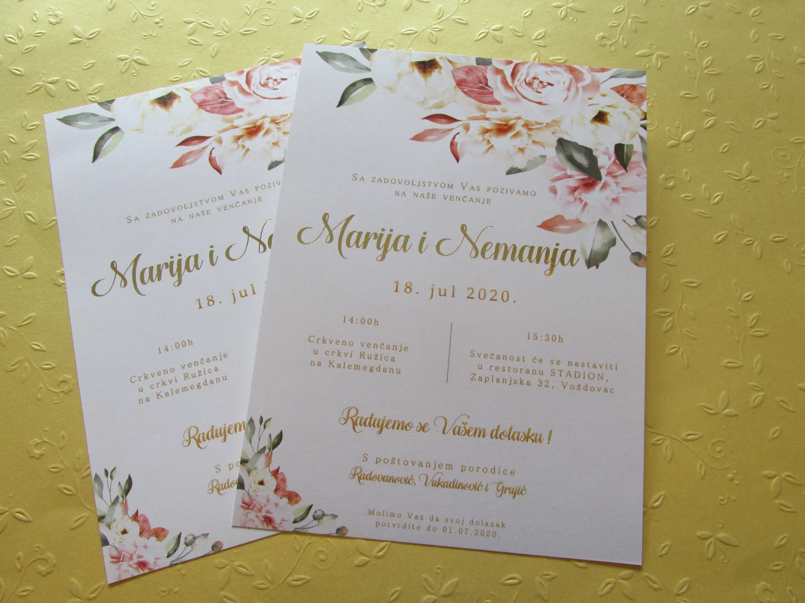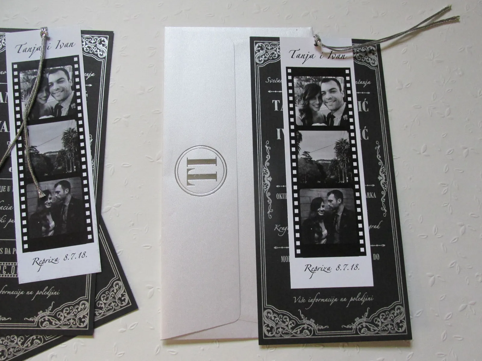 Na kovertama štampamo često inicijale u zlatotisku ili reljefnoj štampi, blindruku. Pečati od voska su prelep ukras za zatvaranje koverata ili pečati od papira sa inicijalima mladencima. Osim naših modela, IZRAĐUJEMO POZIVNICE PO VAŠOJ ŽELJI I VAŠEM DIZAJNU!