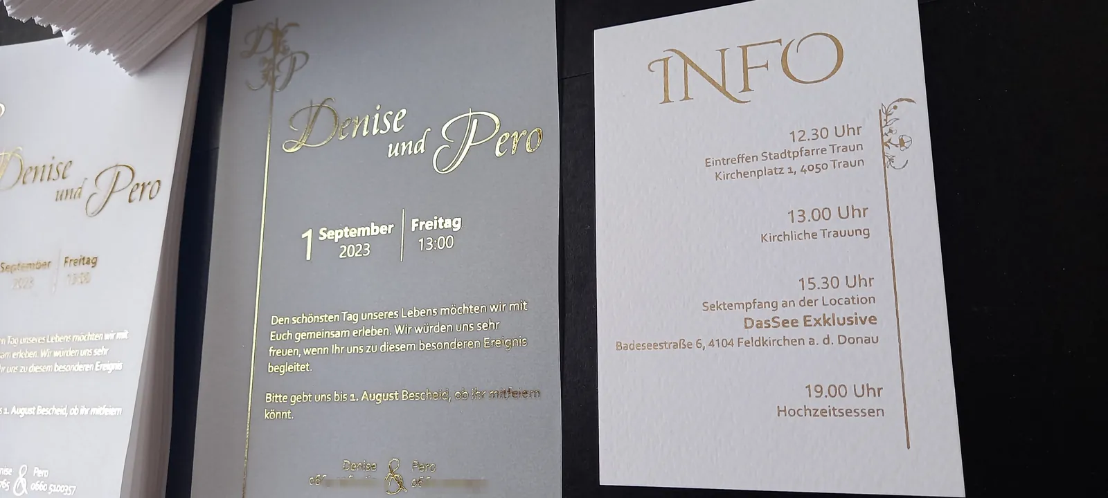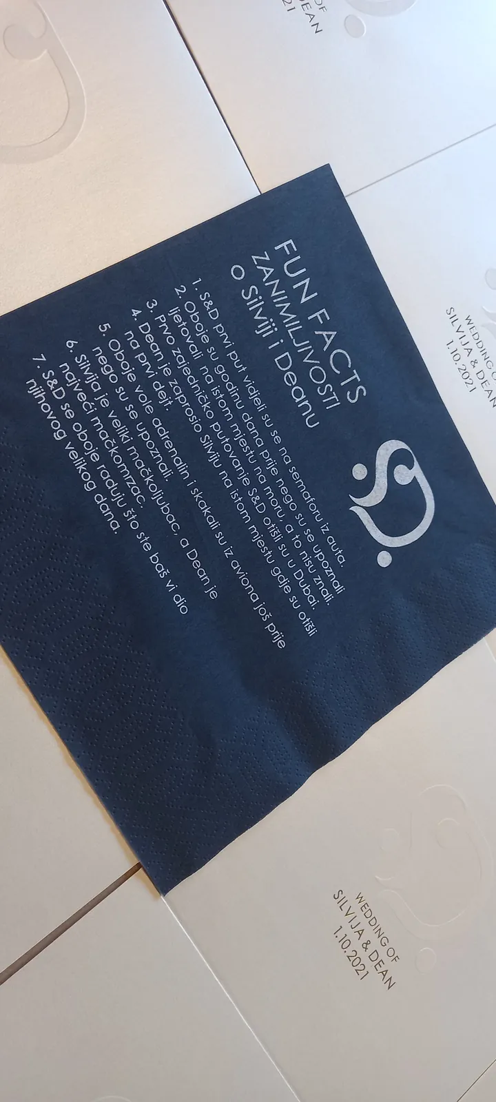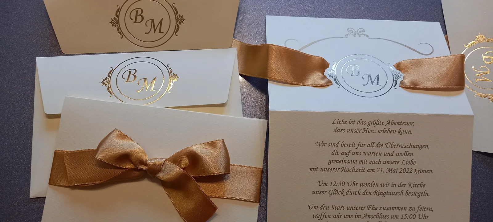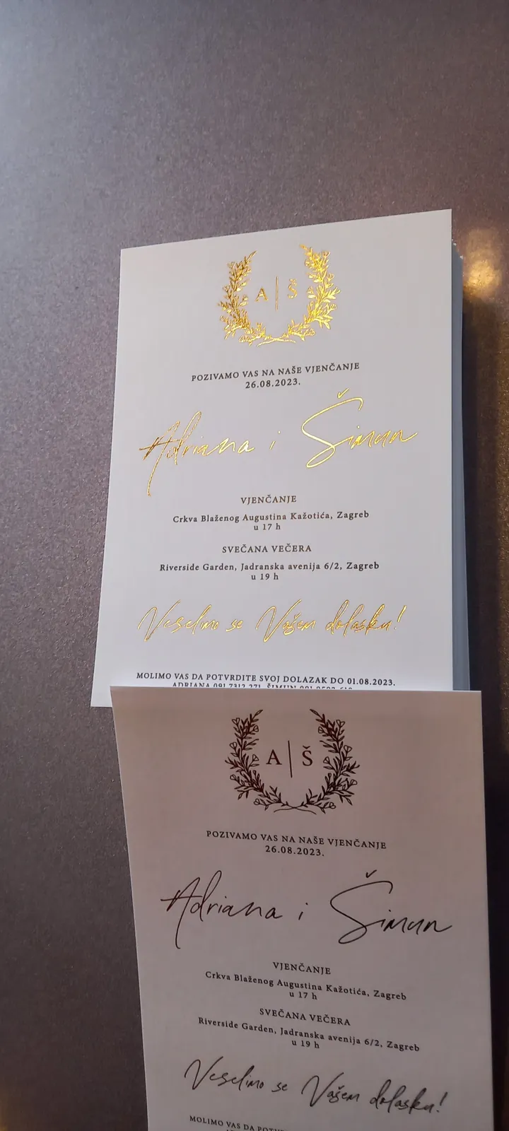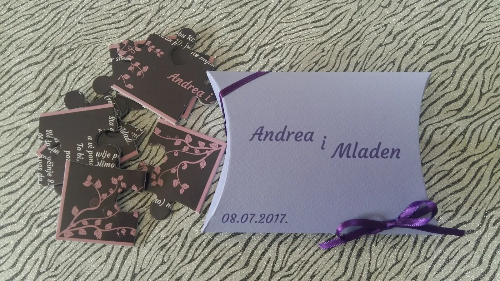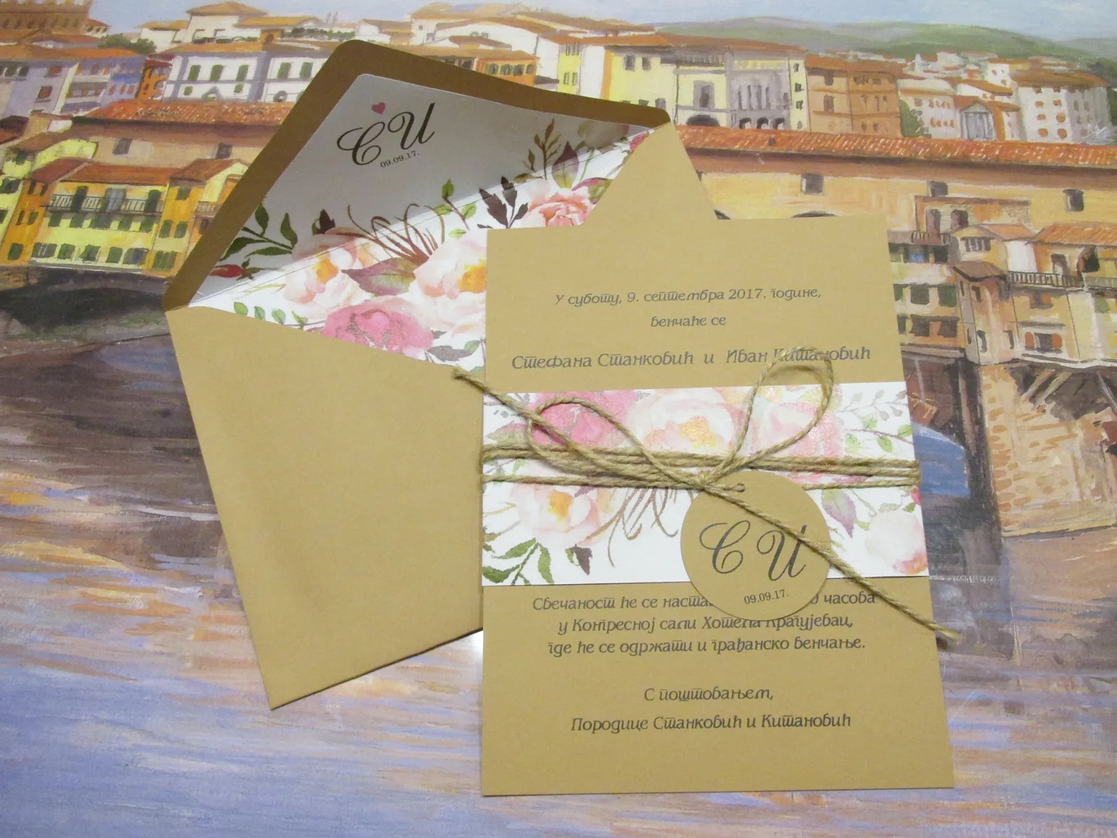 Na kovertama štampamo često inicijale u zlatotisku ili reljefnoj štampi, blindruku. Pečati od voska su prelep ukras za zatvaranje koverata ili pečati od papira sa inicijalima mladencima. Osim naših modela, IZRAĐUJEMO POZIVNICE PO VAŠOJ ŽELJI I VAŠEM DIZAJNU!
