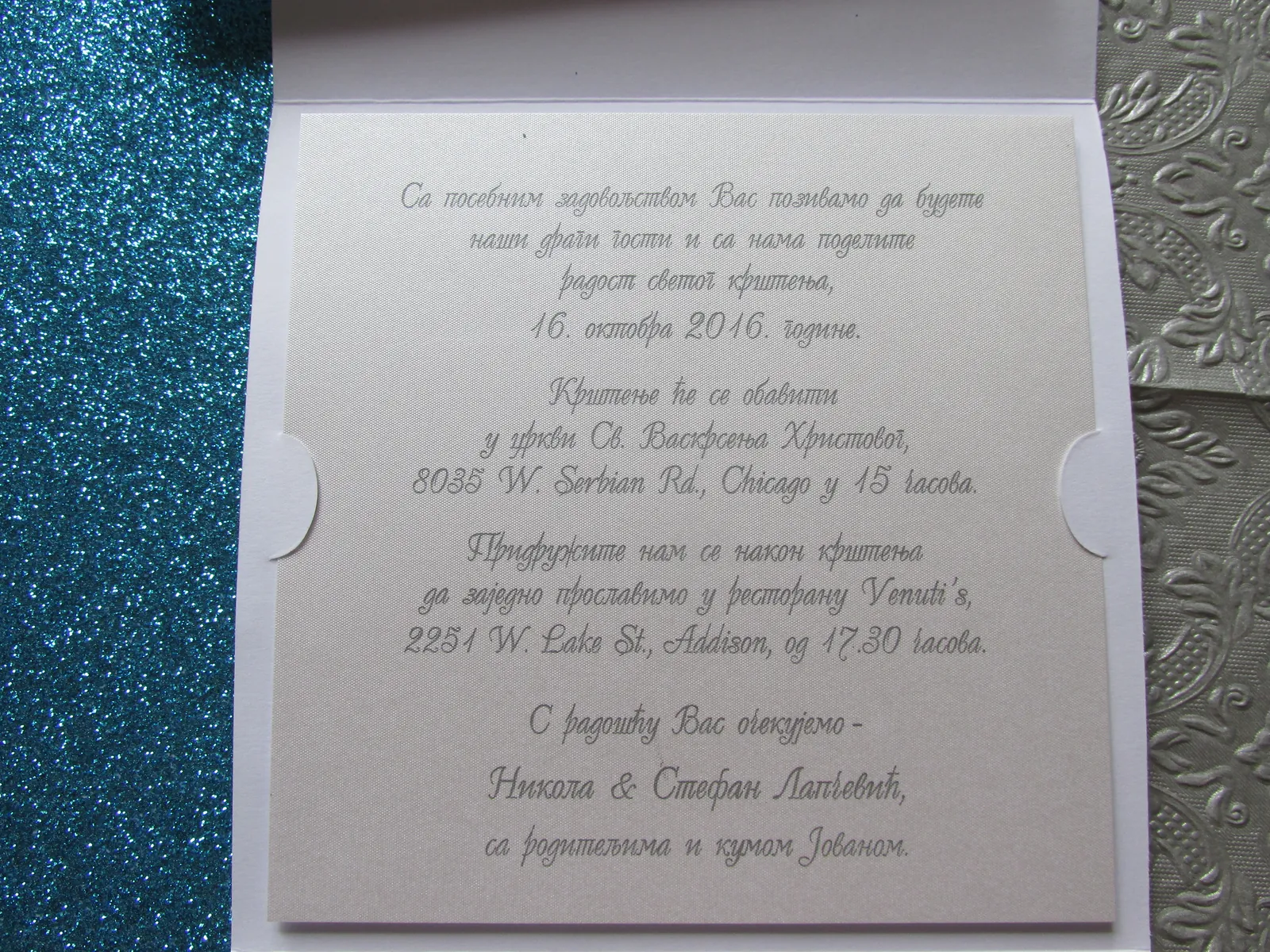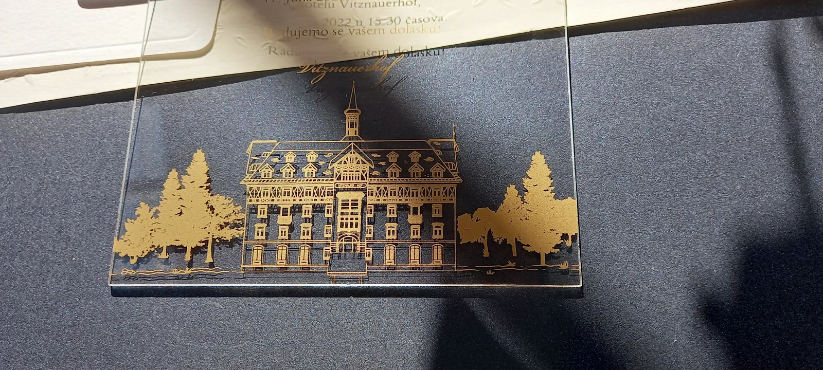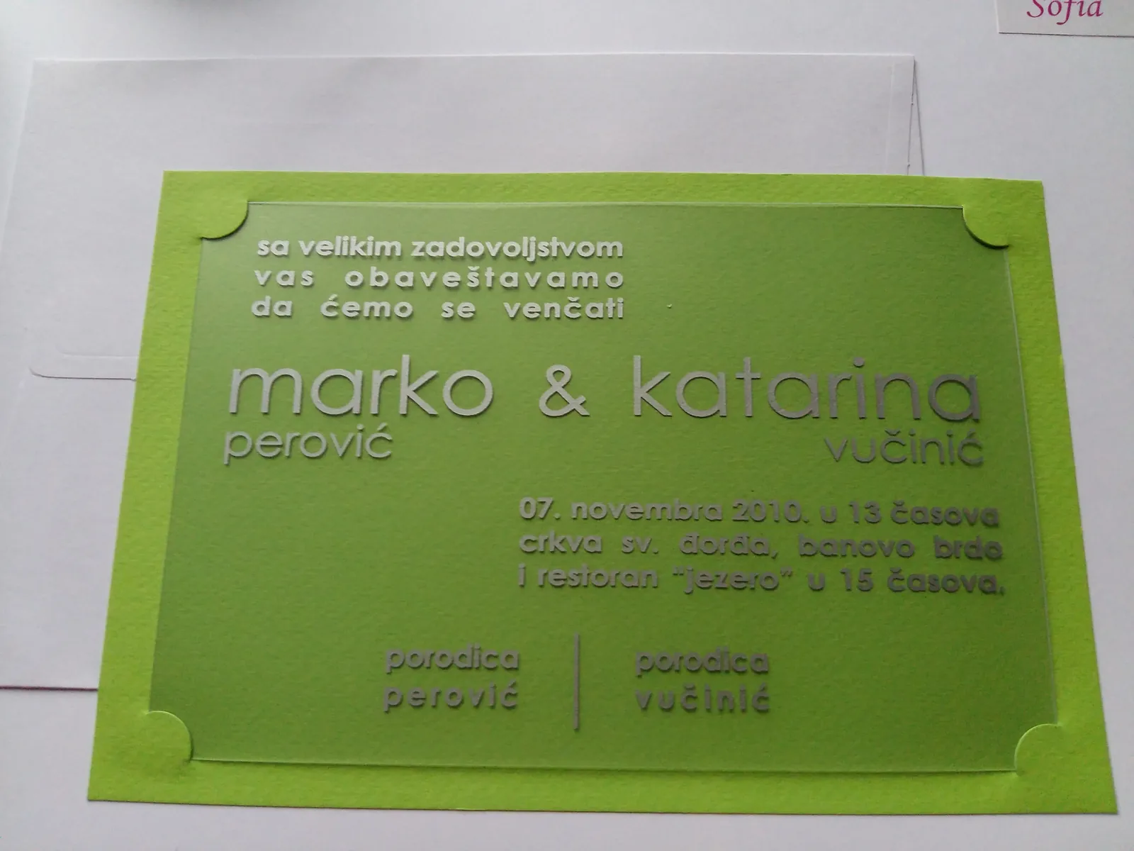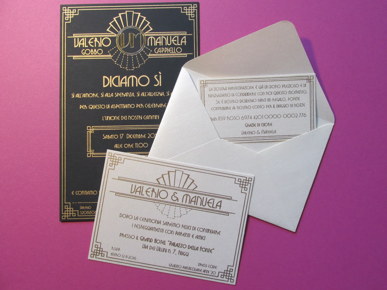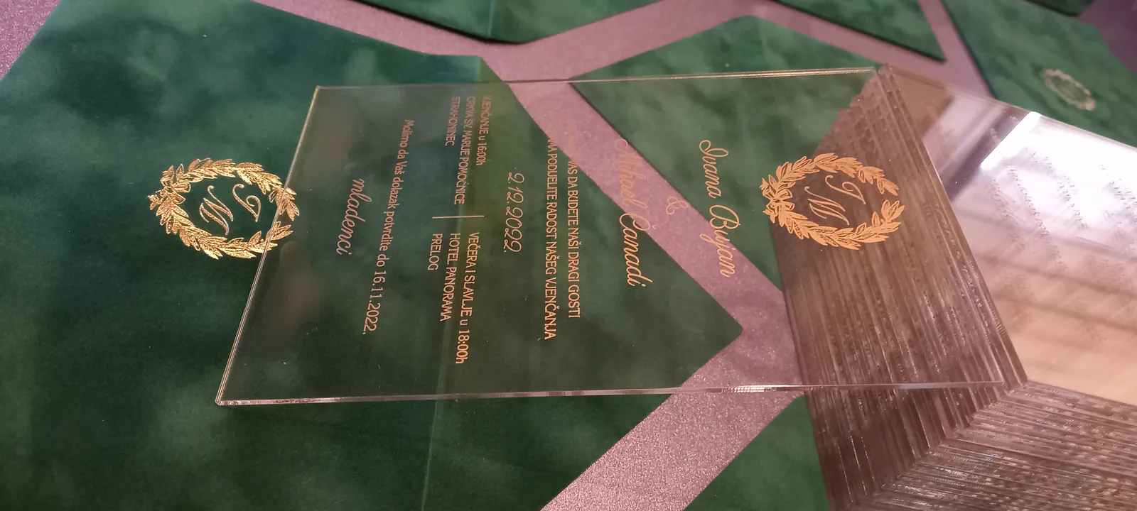 Na kovertama štampamo često inicijale u zlatotisku ili reljefnoj štampi, blindruku. Pečati od voska su prelep ukras za zatvaranje koverata ili pečati od papira sa inicijalima mladencima. Osim naših modela, IZRAĐUJEMO POZIVNICE PO VAŠOJ ŽELJI I VAŠEM DIZAJNU!