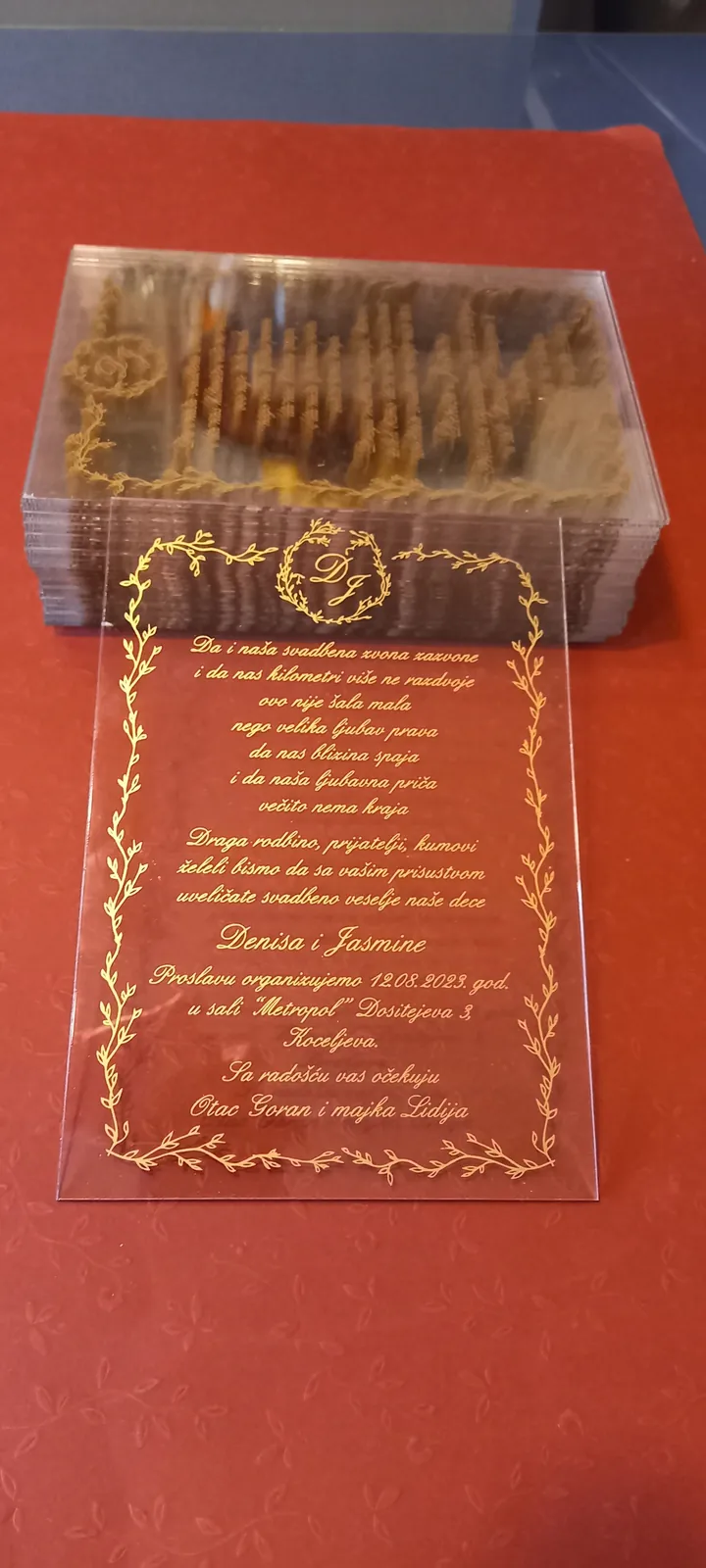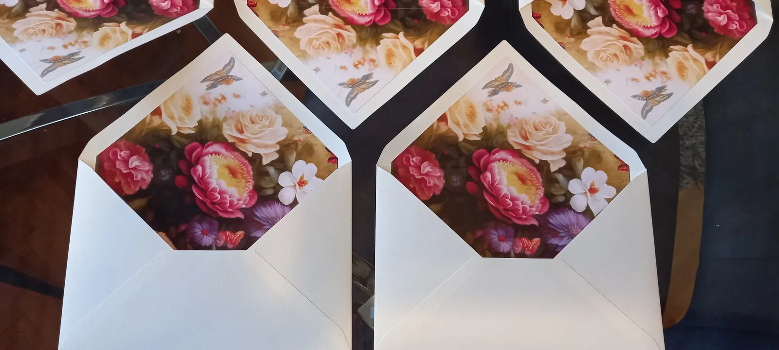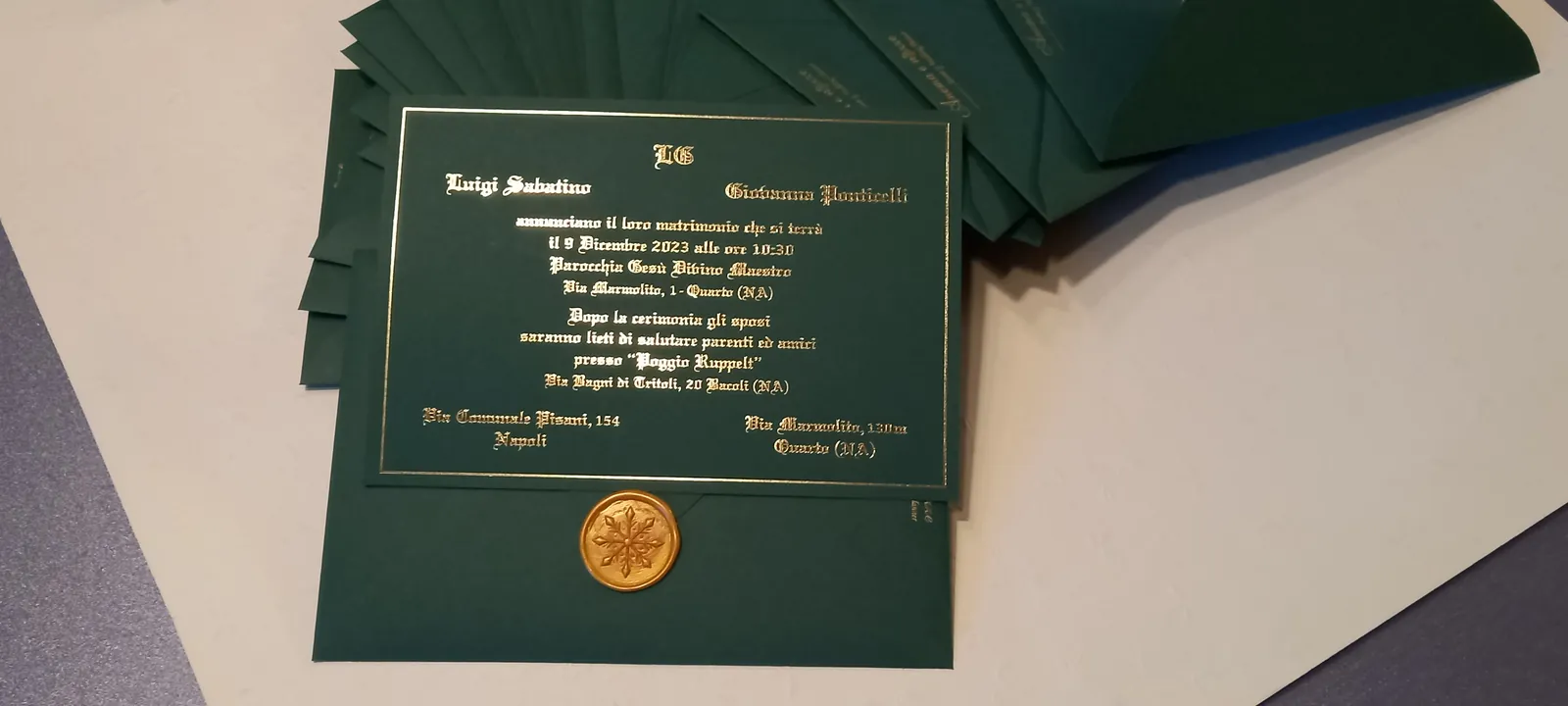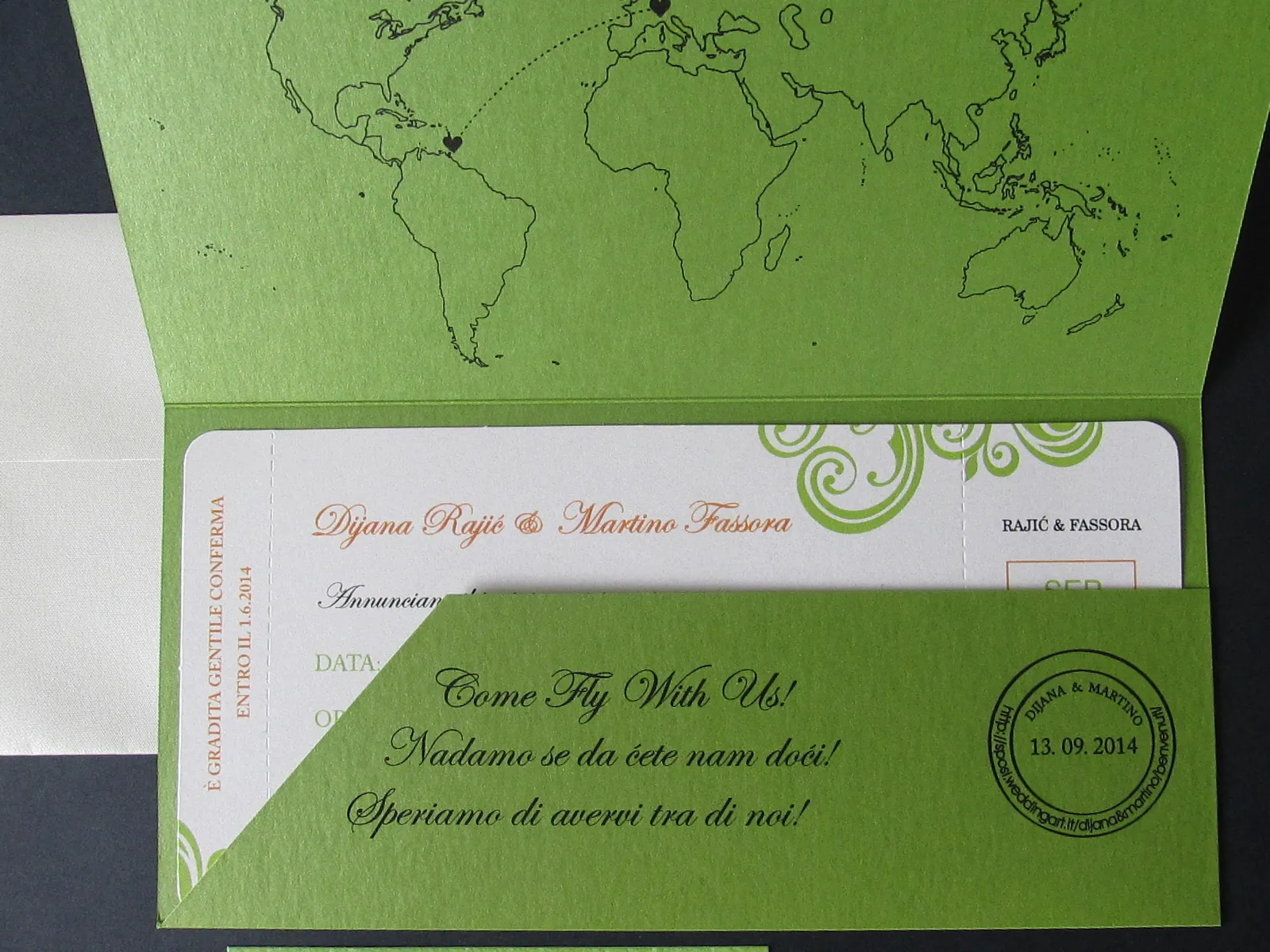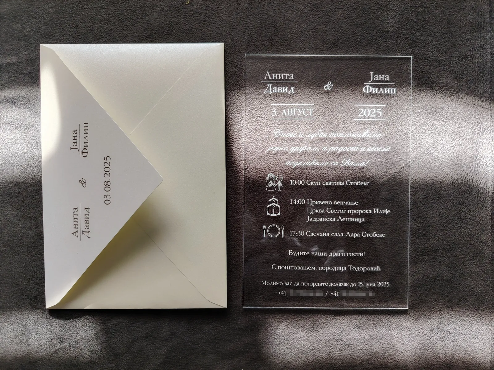 Na kovertama štampamo često inicijale u zlatotisku ili reljefnoj štampi, blindruku. Pečati od voska su prelep ukras za zatvaranje koverata ili pečati od papira sa inicijalima mladencima. Osim naših modela, IZRAĐUJEMO POZIVNICE PO VAŠOJ ŽELJI I VAŠEM DIZAJNU!