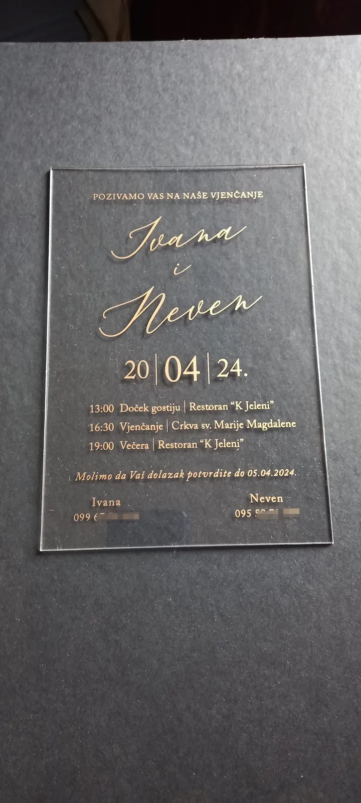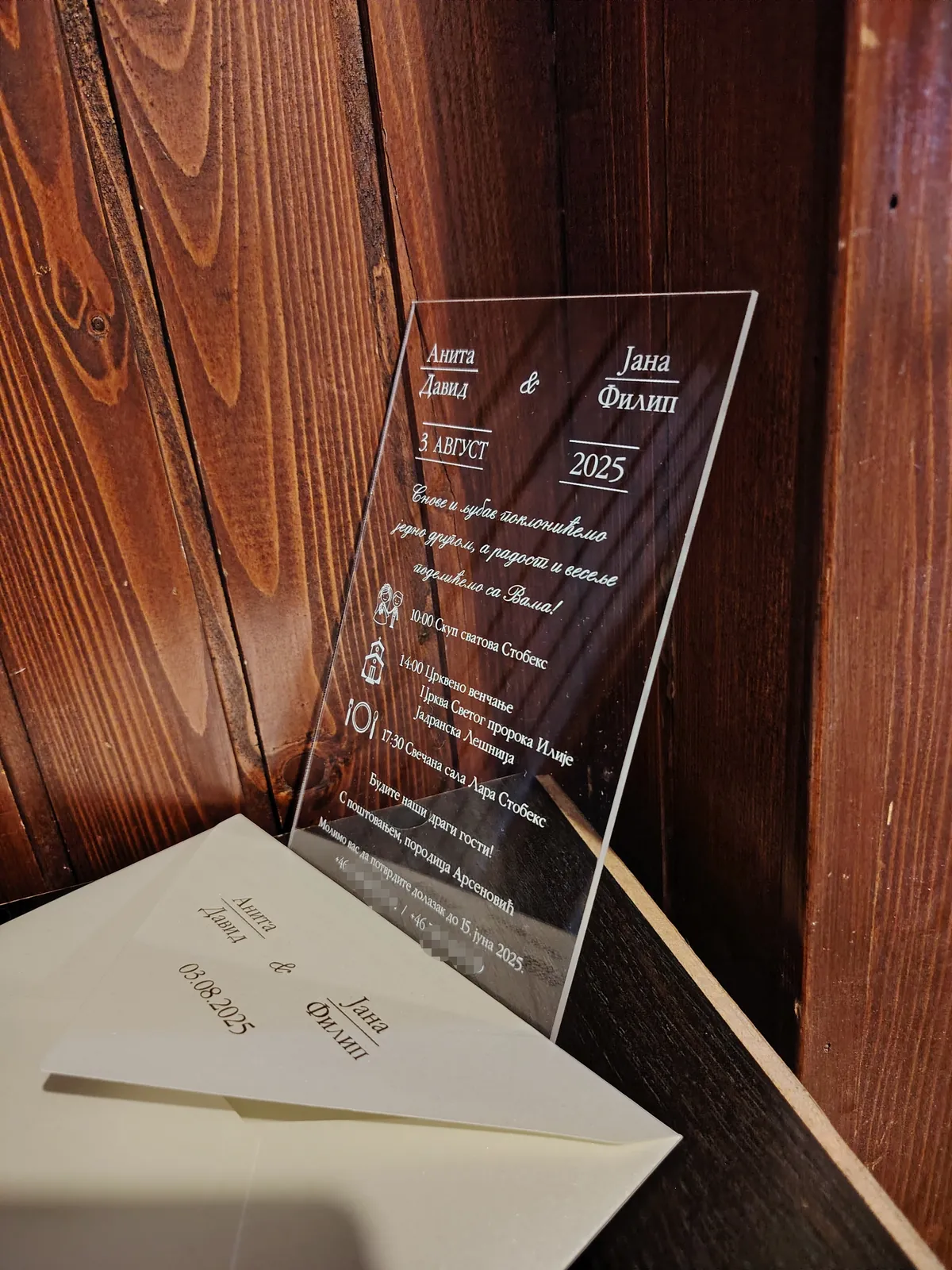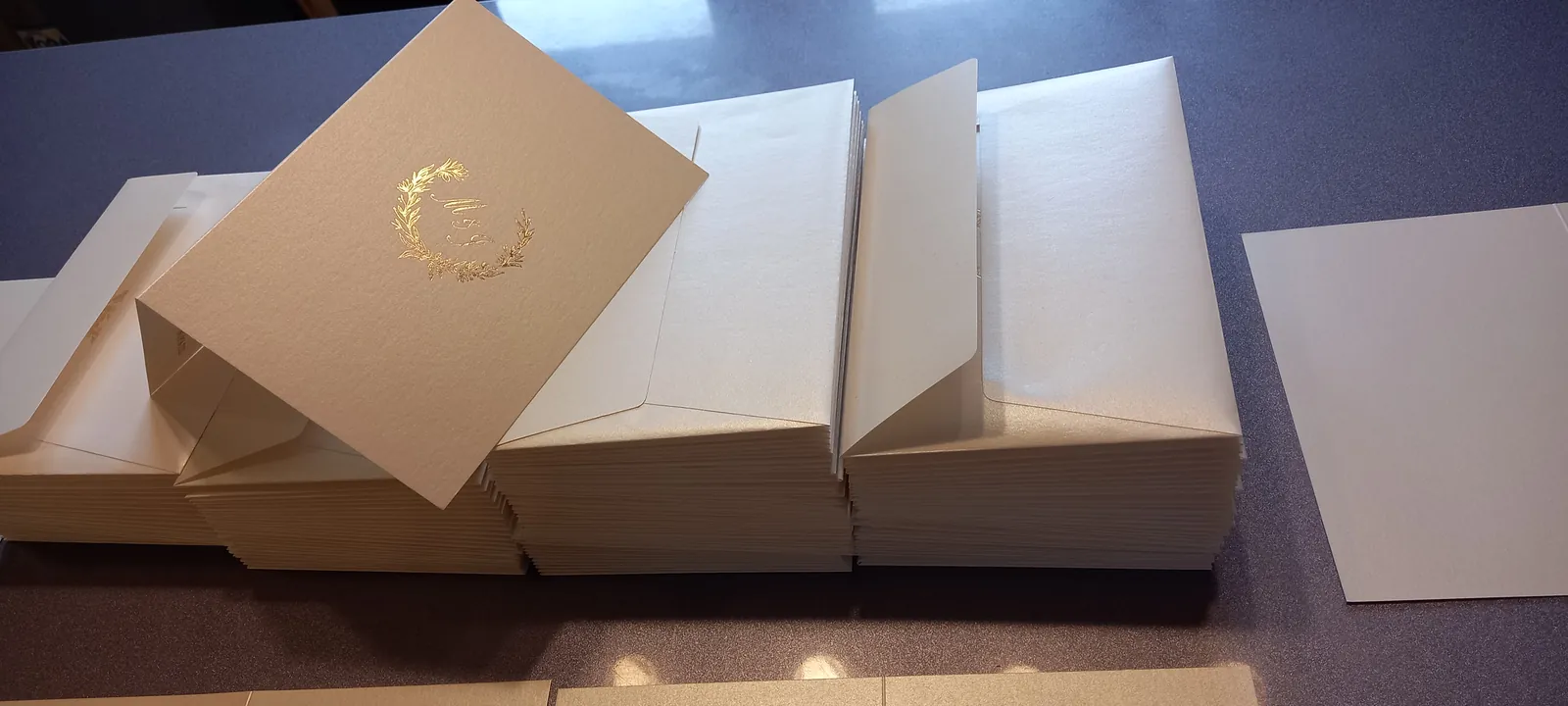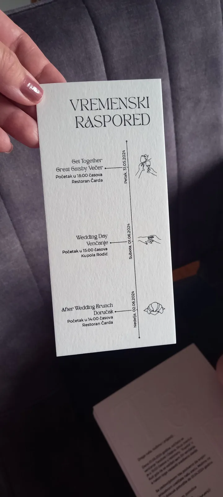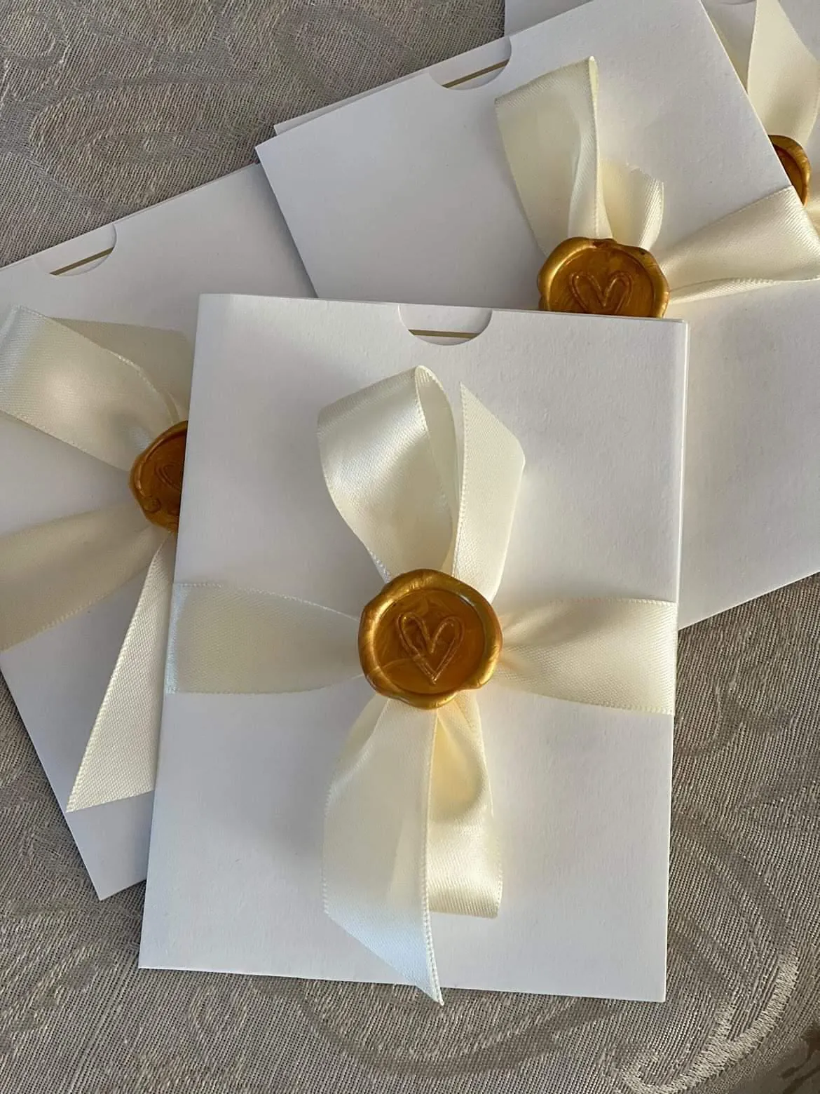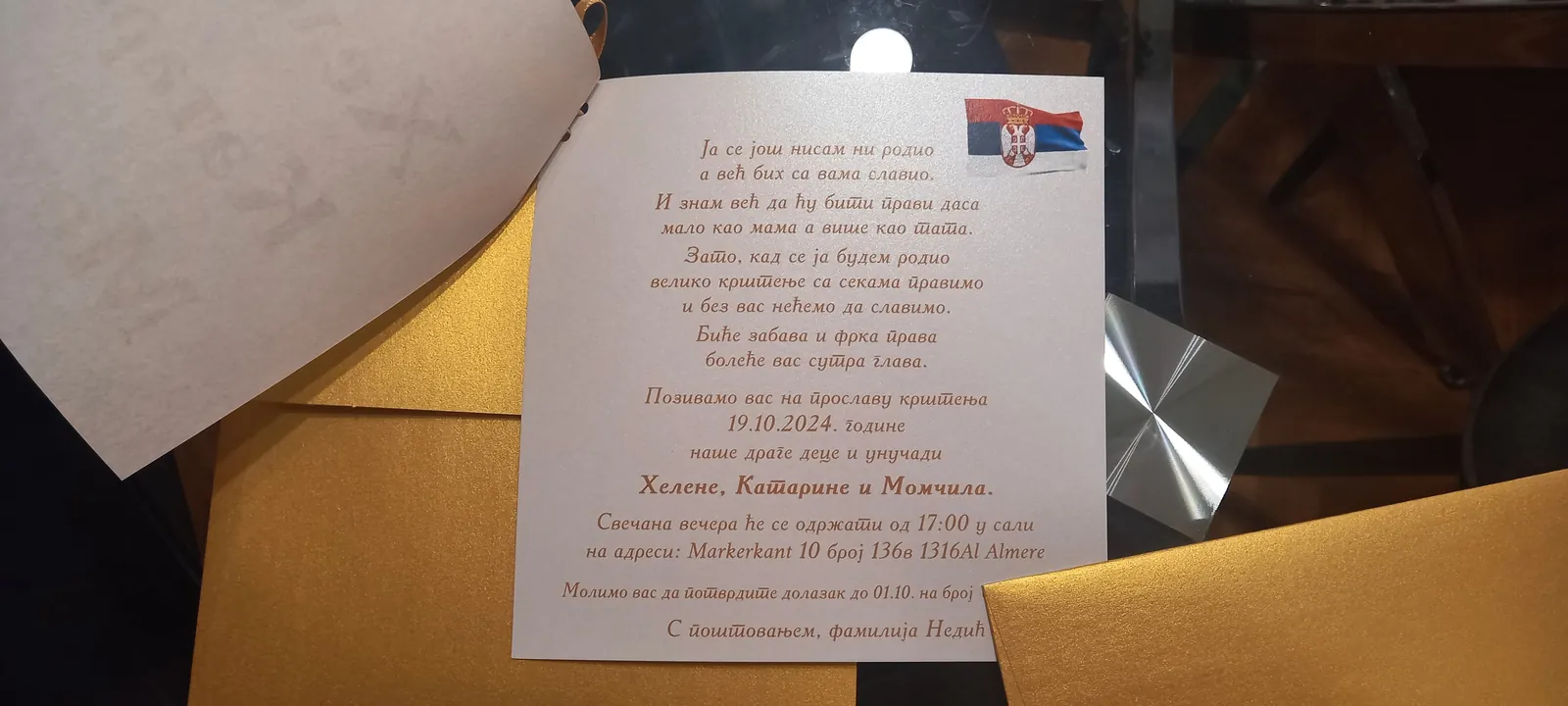 Na kovertama štampamo često inicijale u zlatotisku ili reljefnoj štampi, blindruku. Pečati od voska su prelep ukras za zatvaranje koverata ili pečati od papira sa inicijalima mladencima. Osim naših modela, IZRAĐUJEMO POZIVNICE PO VAŠOJ ŽELJI I VAŠEM DIZAJNU!