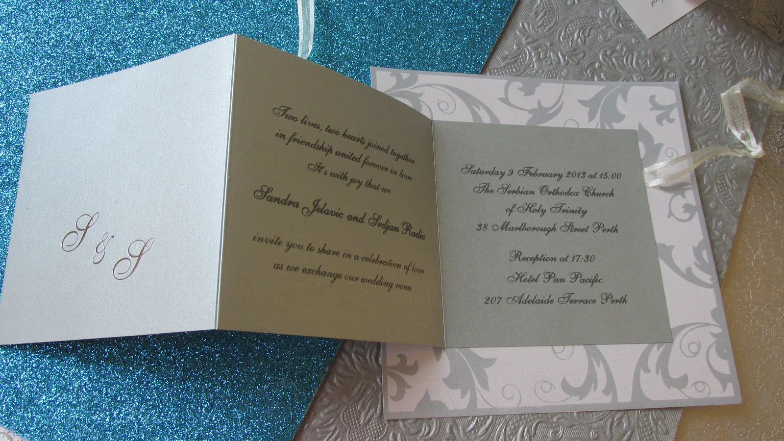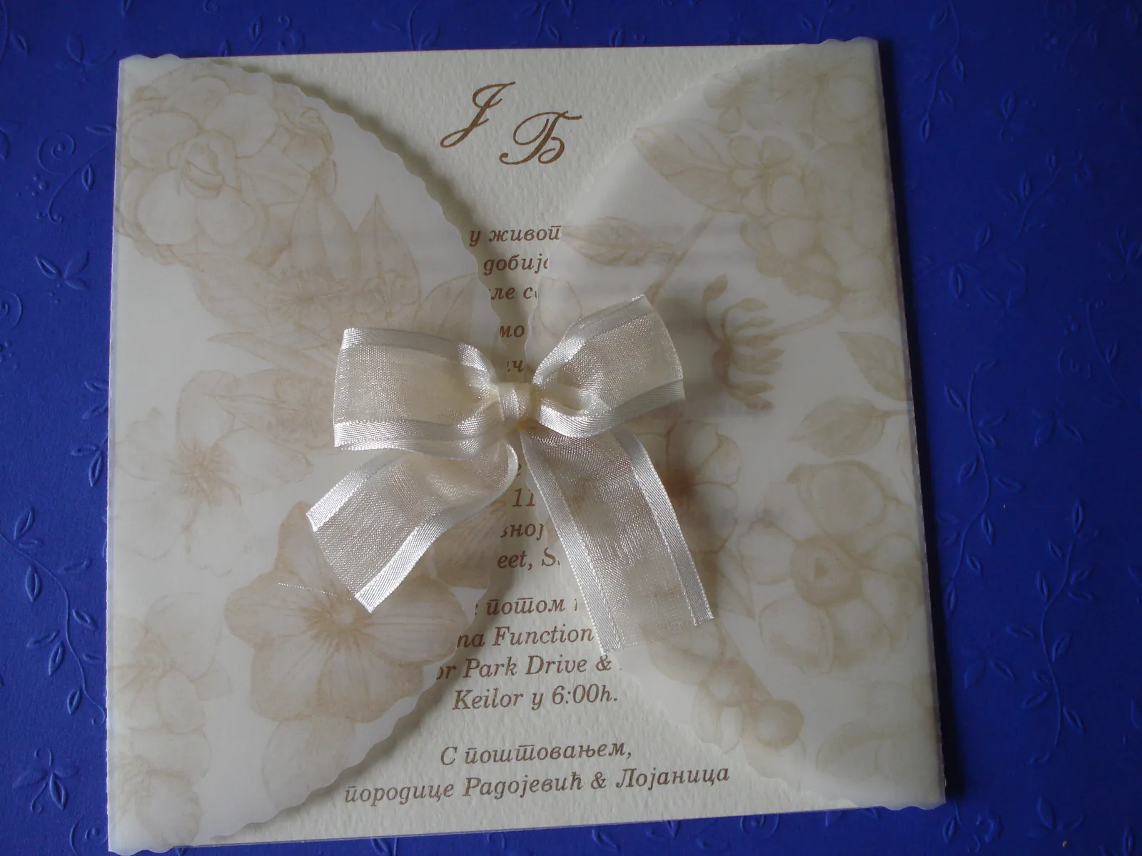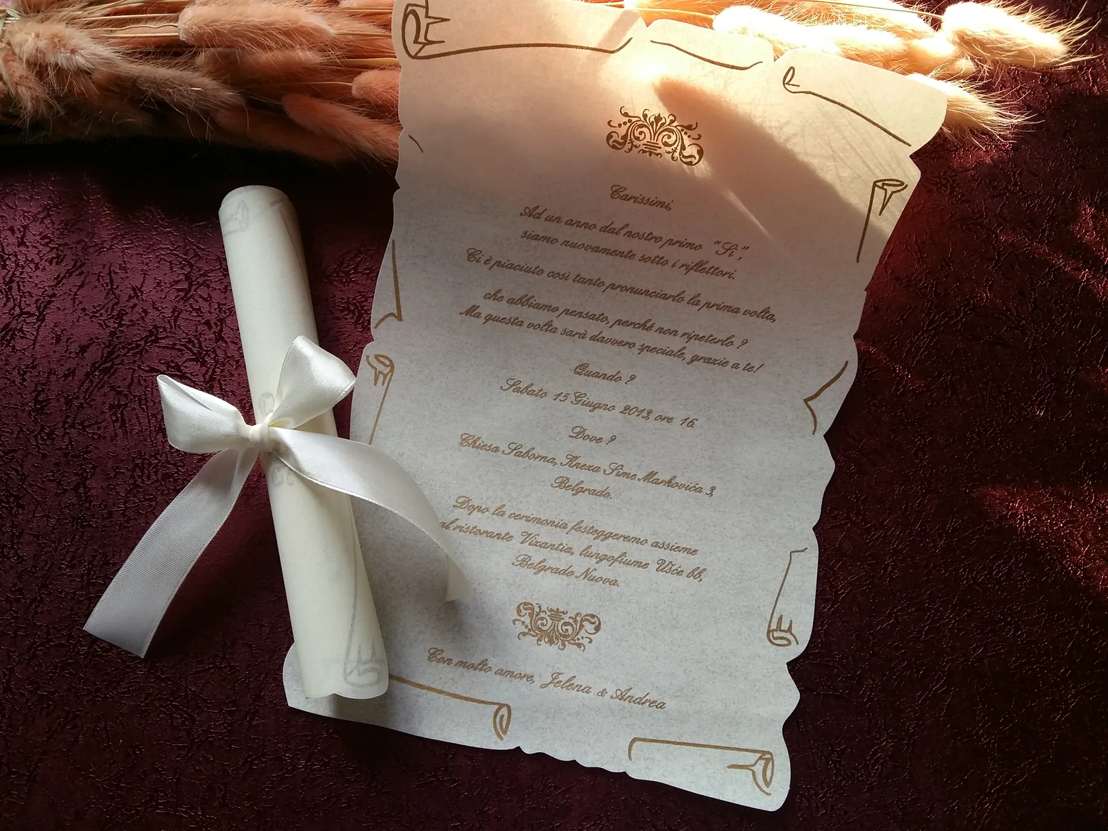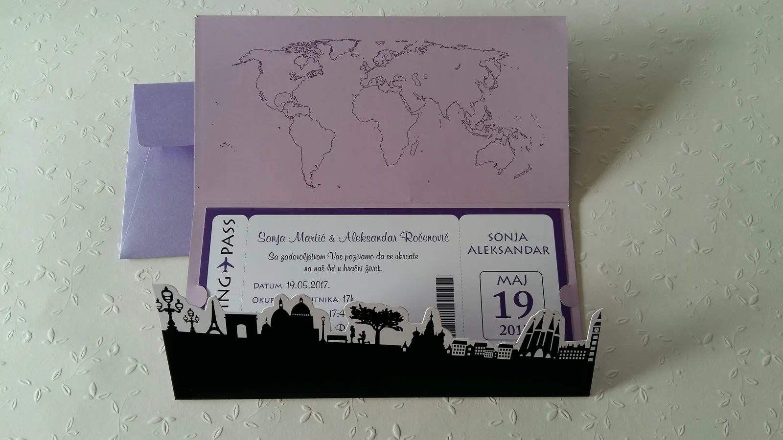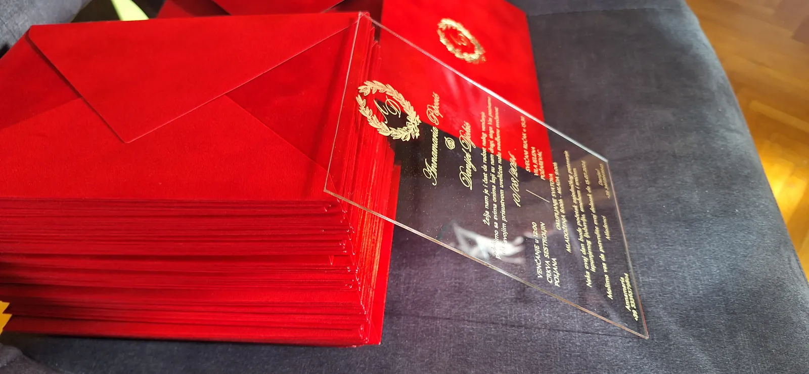 Proizvodimo sve vrste pozivnica i koverata. Svaki model koji je ovde može biti prilagođen vašim željama, može se izraditi od papira u drugoj boji sa drugom bojom satenske trake. Svaka pozivnica i dizajn može imati i svoju elektronsku formu, kako bi se slala Viberom ili WhatsApp-om. Raspolažemo širokim asortimanom specijalnih italijanskih, nemačkih i francuskih papira. Imamo zaista otmene, moderne, luksuzne pozivnice, kao što su: pozivnice na providnim materijalima, pleksiglasu ili tanjoj plastici, pozivnice u kutijima raznih oblika, pozivnice u rolni, pozivnice sa zlatotiskom, srebrotiskom, pozivnice u reljefnim tehnikama štampe: u tehnici letterpress (utisnuta slova) i u tehnici blindruka (ispupčena slova), pozivnice sa čipkom, plišane luksuzne koverte, koverte u svim bojama i u svim formatima.