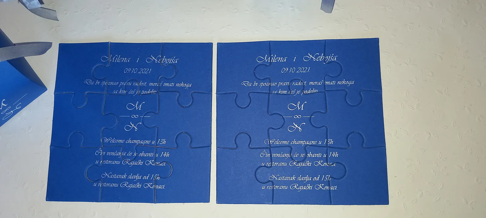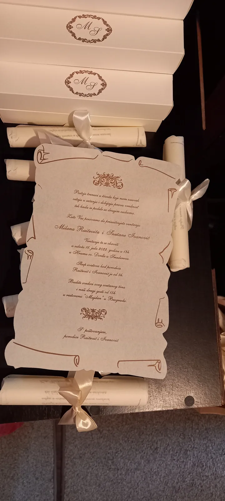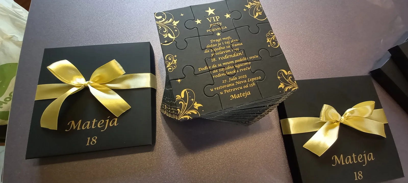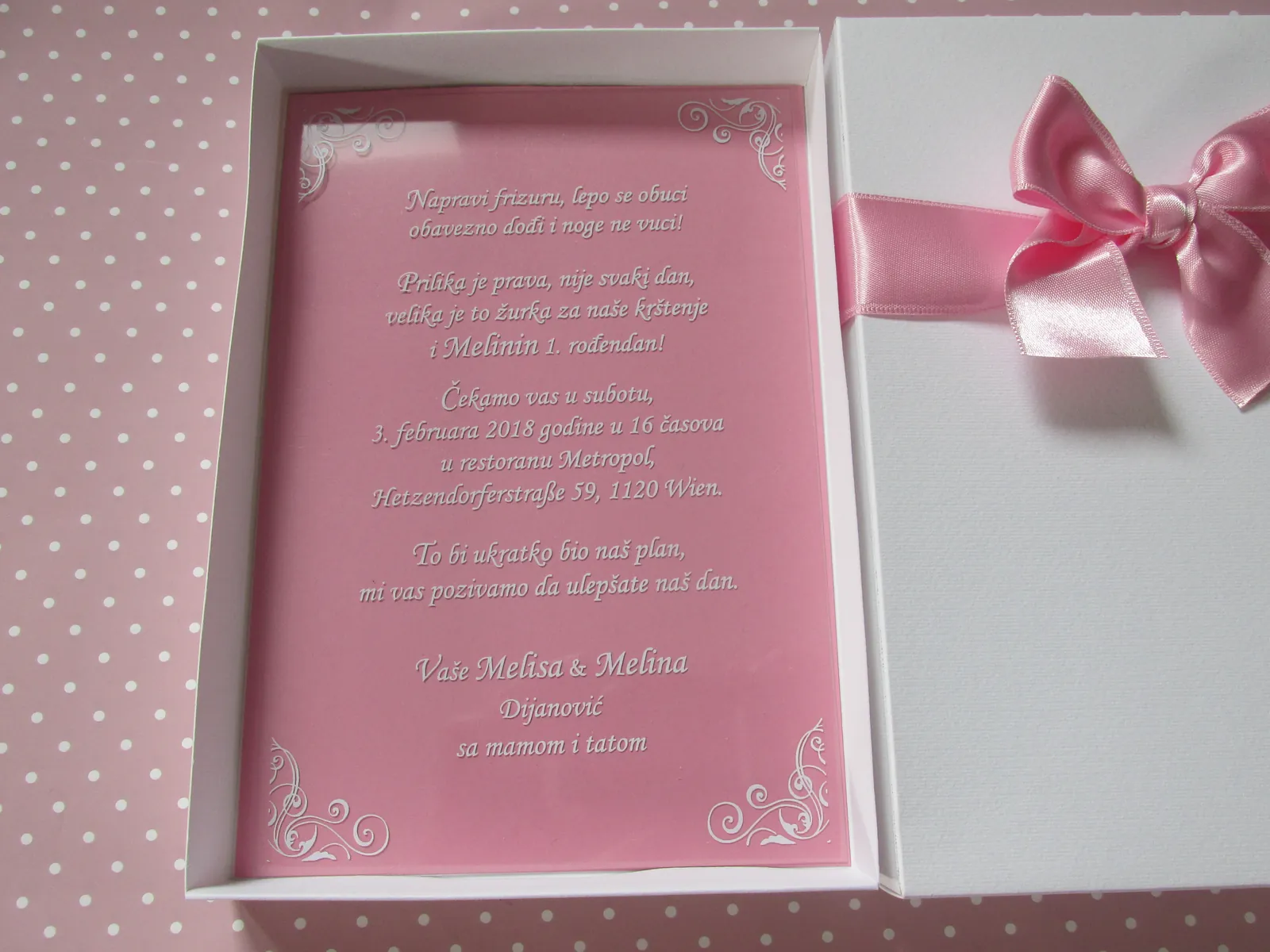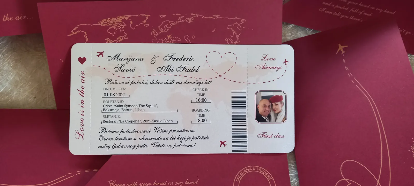 Proizvodimo sve vrste pozivnica i koverata. Svaki model koji je ovde može biti prilagođen vašim željama, može se izraditi od papira u drugoj boji sa drugom bojom satenske trake. Svaka pozivnica i dizajn može imati i svoju elektronsku formu, kako bi se slala Viberom ili WhatsApp-om. Raspolažemo širokim asortimanom specijalnih italijanskih, nemačkih i francuskih papira. Imamo zaista otmene, moderne, luksuzne pozivnice, kao što su: pozivnice na providnim materijalima, pleksiglasu ili tanjoj plastici, pozivnice u kutijima raznih oblika, pozivnice u rolni, pozivnice sa zlatotiskom, srebrotiskom, pozivnice u reljefnim tehnikama štampe: u tehnici letterpress (utisnuta slova) i u tehnici blindruka (ispupčena slova), pozivnice sa čipkom, plišane luksuzne koverte, koverte u svim bojama i u svim formatima.