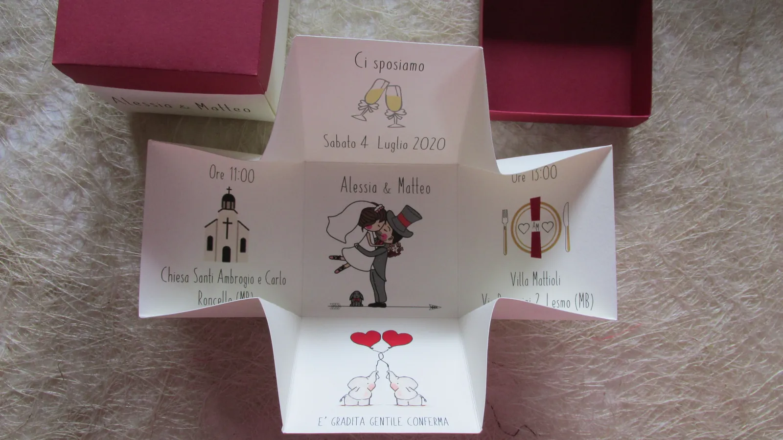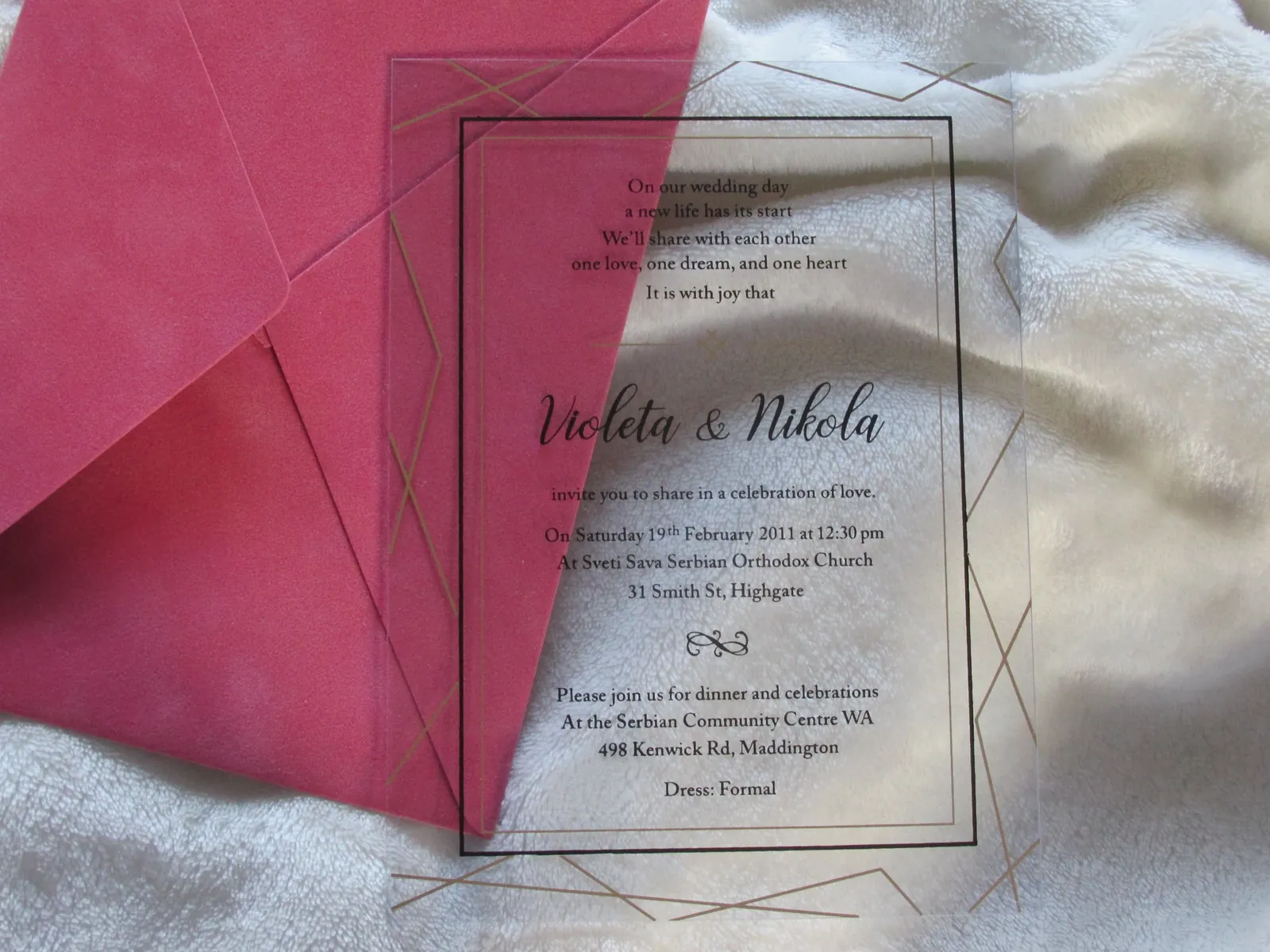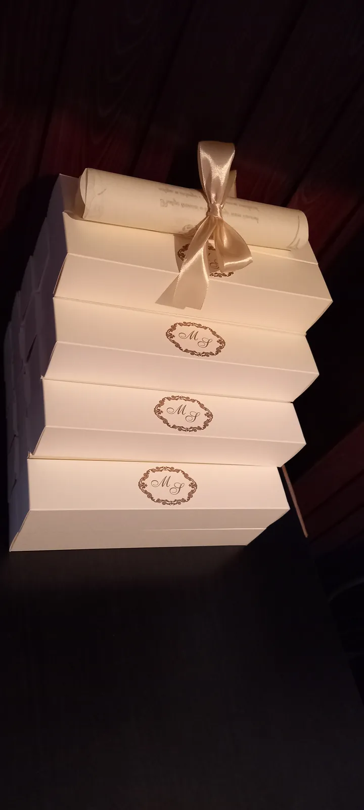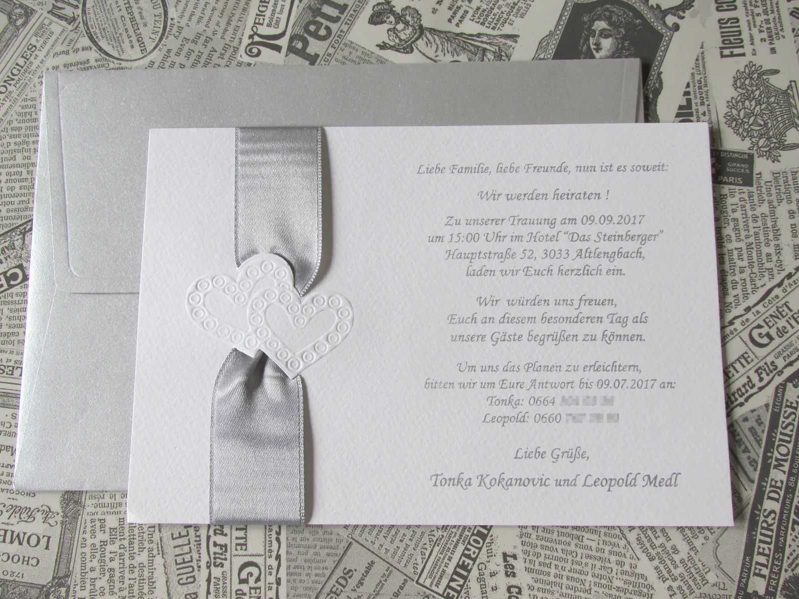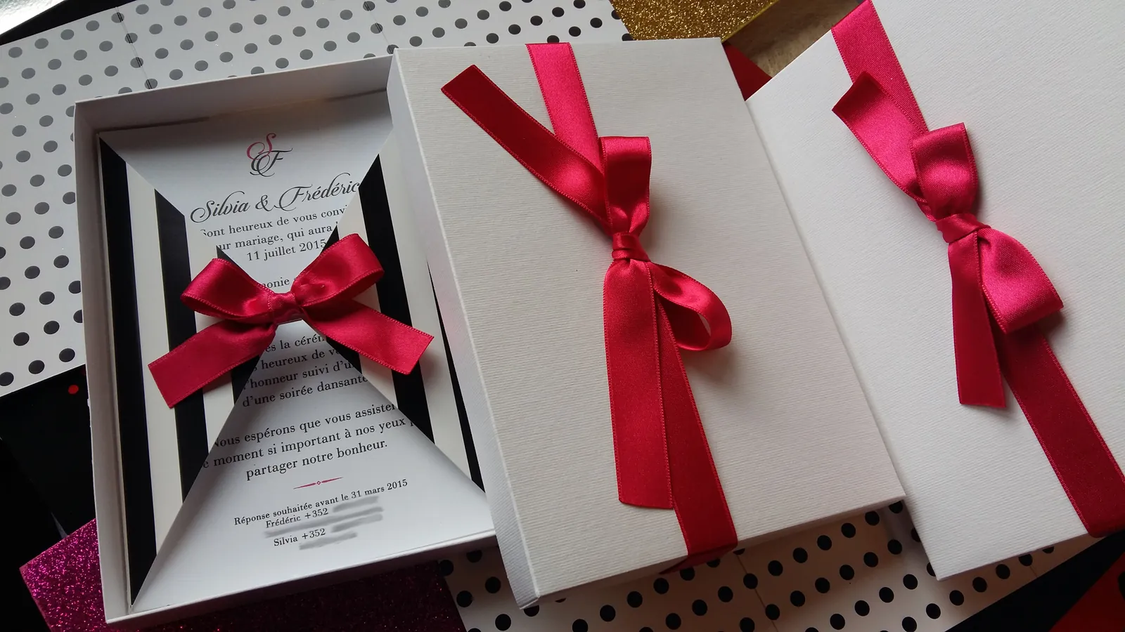 Proizvodimo sve vrste pozivnica i koverata. Svaki model koji je ovde može biti prilagođen vašim željama, može se izraditi od papira u drugoj boji sa drugom bojom satenske trake. Svaka pozivnica i dizajn može imati i svoju elektronsku formu, kako bi se slala Viberom ili WhatsApp-om. Raspolažemo širokim asortimanom specijalnih italijanskih, nemačkih i francuskih papira. Imamo zaista otmene, moderne, luksuzne pozivnice, kao što su: pozivnice na providnim materijalima, pleksiglasu ili tanjoj plastici, pozivnice u kutijima raznih oblika, pozivnice u rolni, pozivnice sa zlatotiskom, srebrotiskom, pozivnice u reljefnim tehnikama štampe: u tehnici letterpress (utisnuta slova) i u tehnici blindruka (ispupčena slova), pozivnice sa čipkom, plišane luksuzne koverte, koverte u svim bojama i u svim formatima.