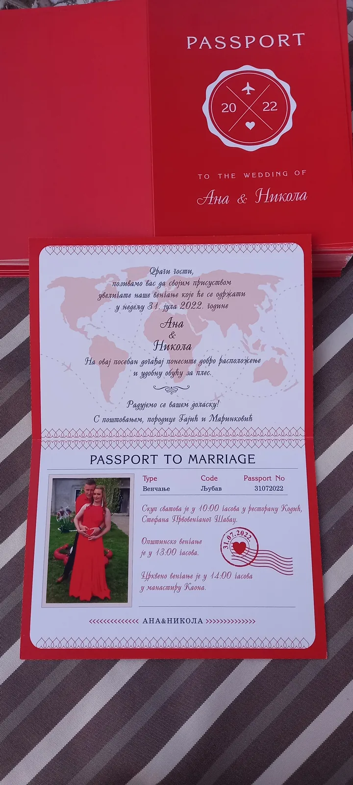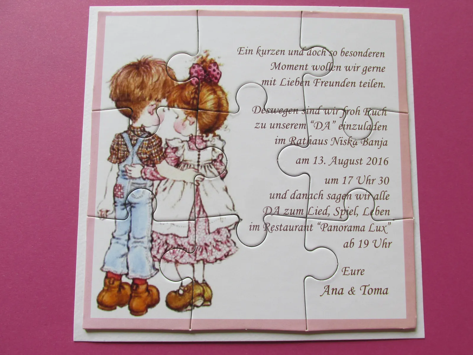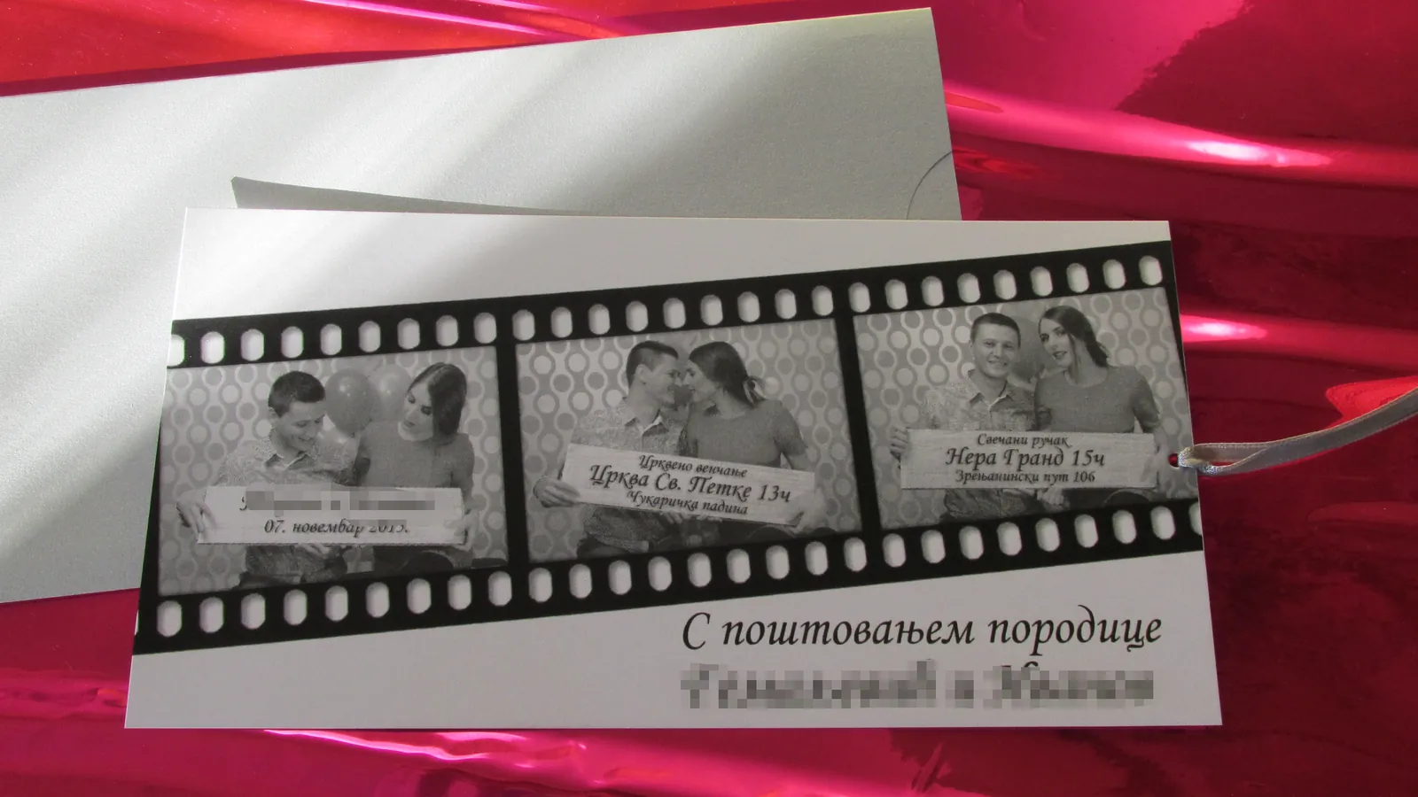 Neobične-originalne pozivnice: puzzle pozivnice sa kovertom ili u kutiji, pozivnice kao avio karta, pozivnica kao pasoš za ljubitelje putovanja, pozivnice u obliku muzičkog CD-a ili muzičke ploče, pozivnice u obliku lepeze, romantične pozivnice sa fotografijama mladenaca, pozivnice za venčanje i krštenje dece, kada par već ima jedno dete ili decu.