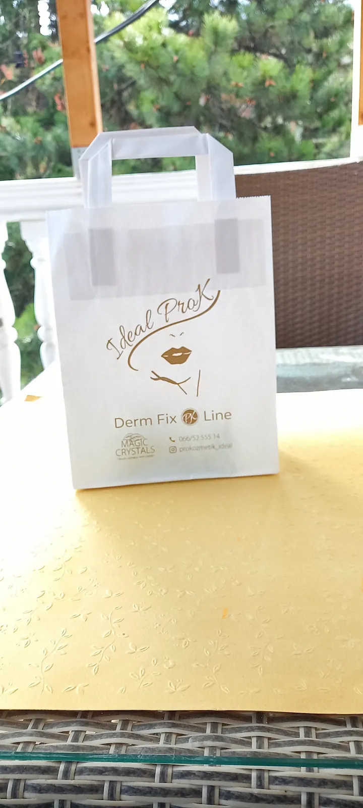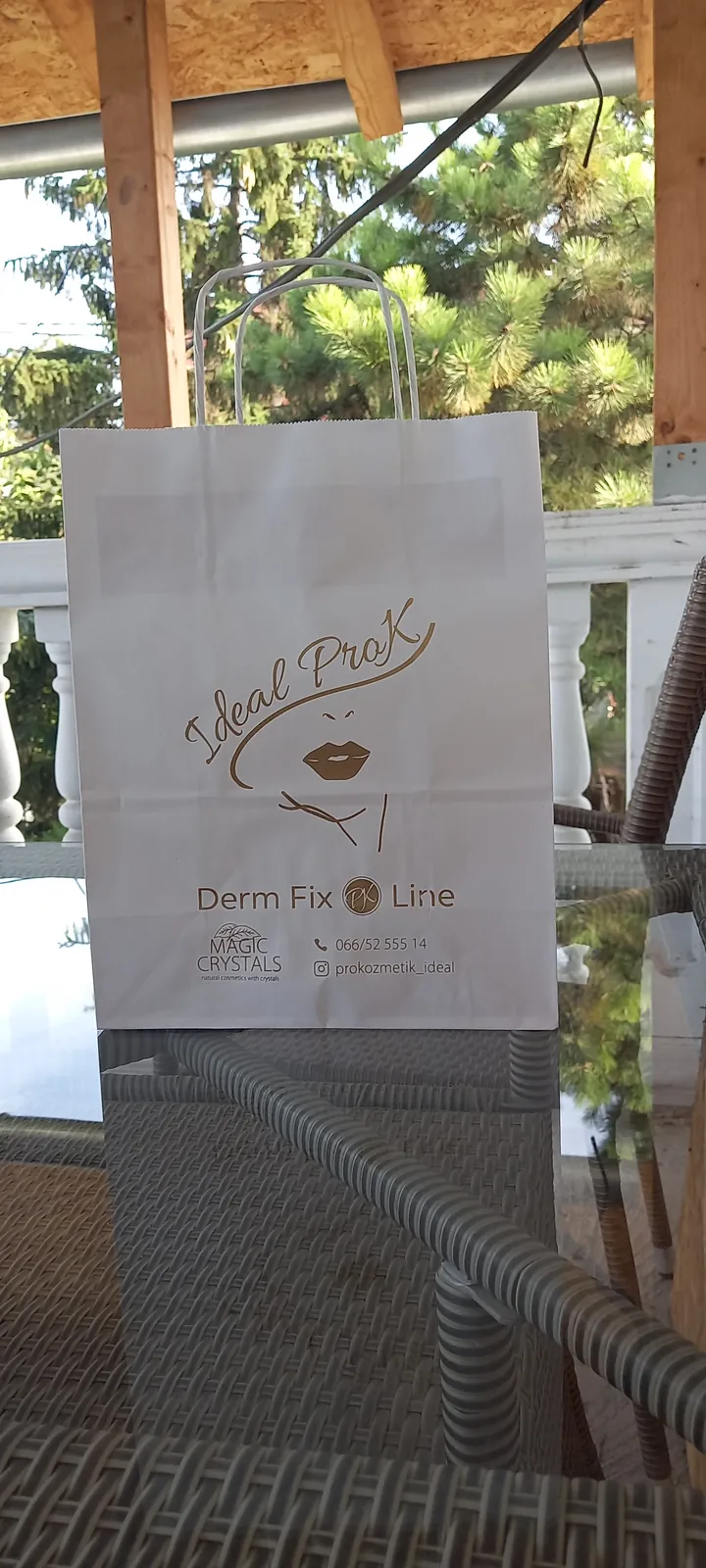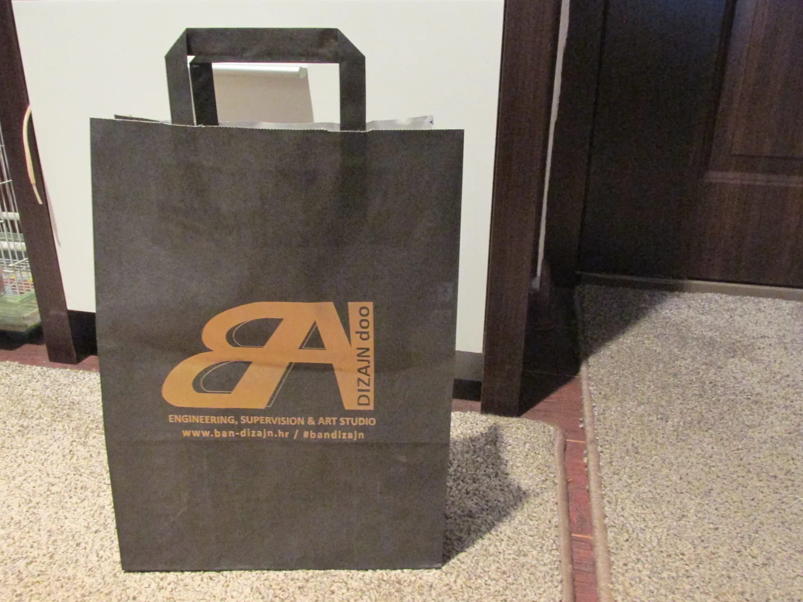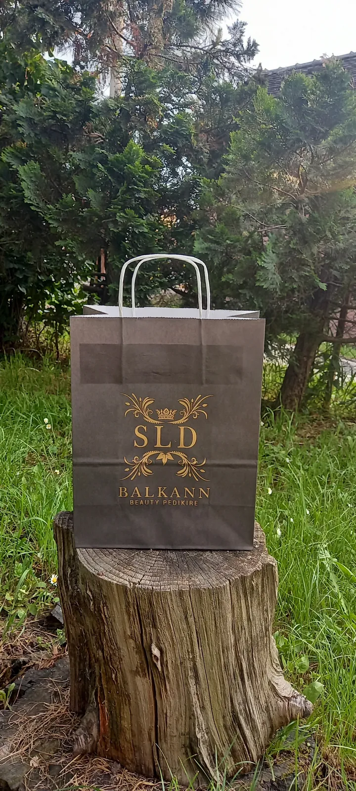 Kada počinjete biznis, ili želite neku manju količinu kesa sa vašim brendom, preporučujemo povoljniju varijantu. Ovo su papirne kese, već urađene, koje mogu da se poruče u količini koja vam je potrebna. Možemo da uštampamo vaš logo u boji po vašoj želji. Na primer crne kese sa zlatnom štampom izgledaju baš lepo, a veoma su povoljne. Takođe za dizajnera koji isporučuje elegantne haljine, štampamo logo u crnoj boji na velikoj beloj kesi.