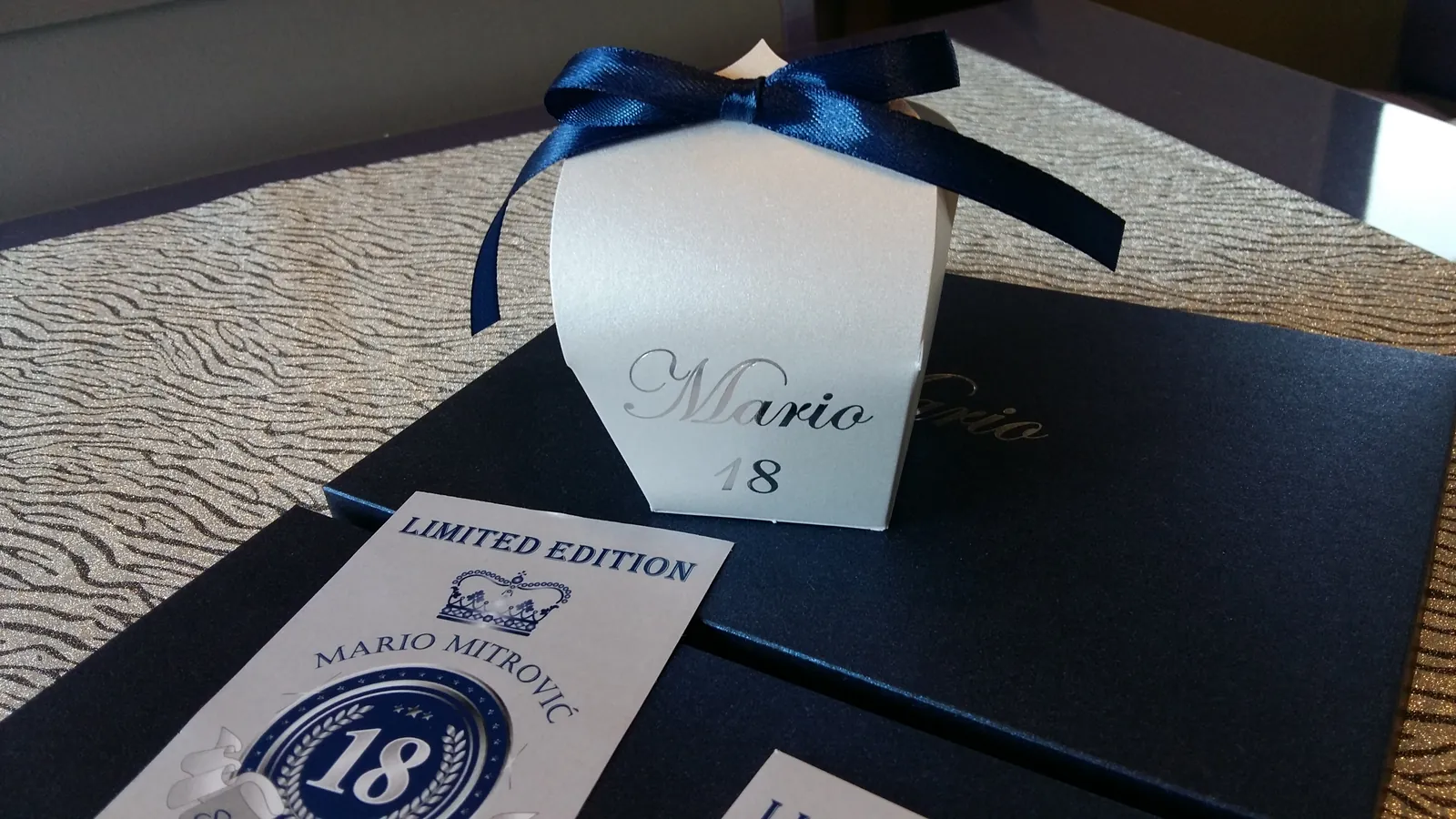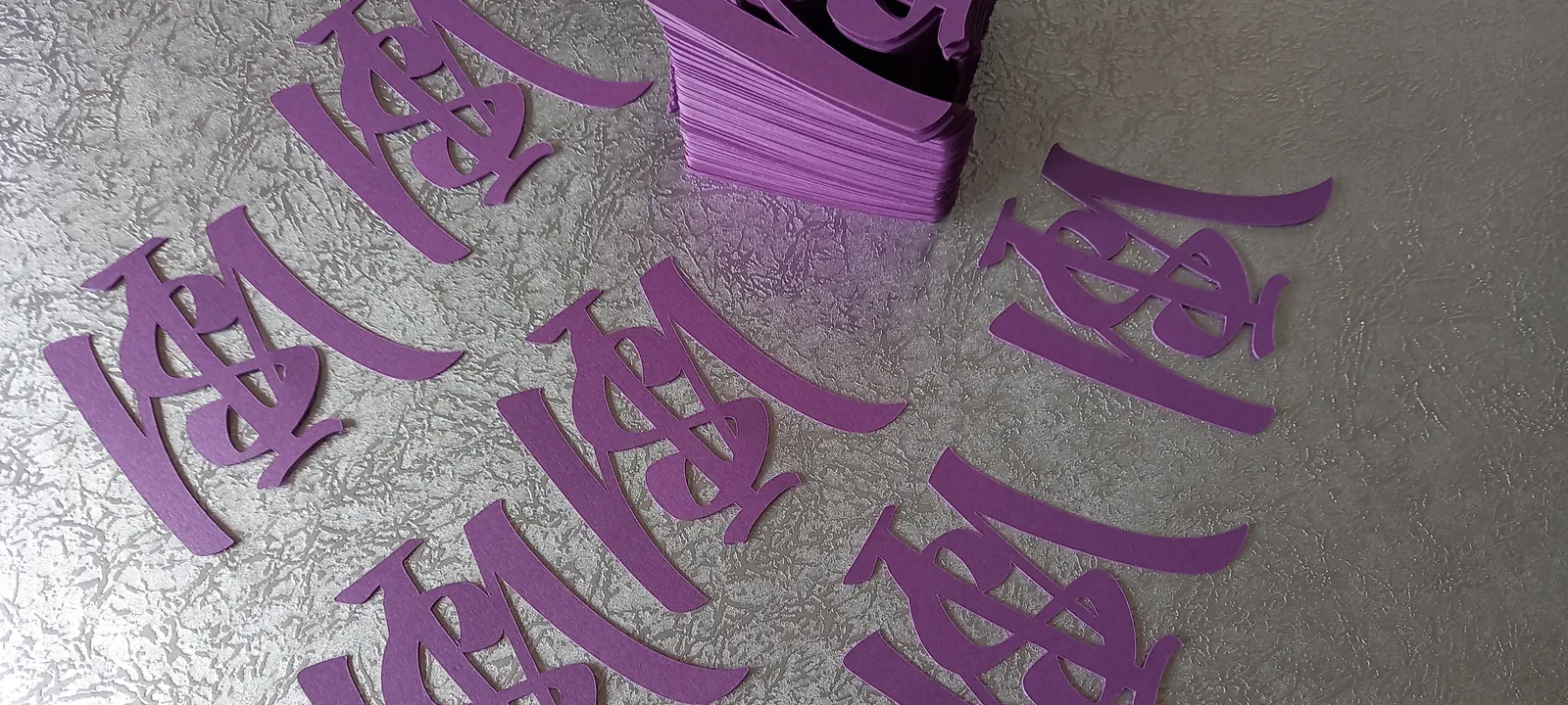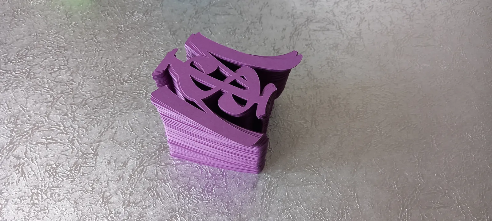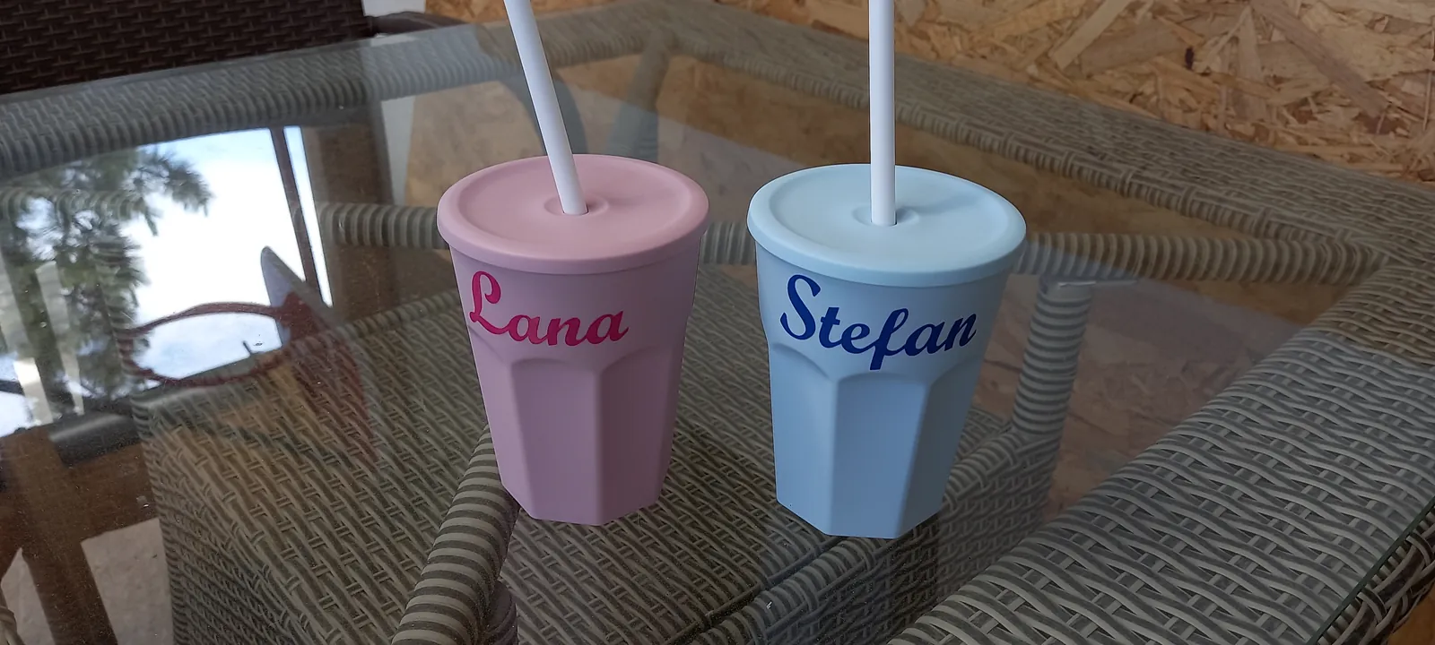 Radimo isecanje slova za imena dece na ukrasnim roze i plavim čašama, zatim sečenje inicijala mladenaca radi dekoracije u restoranu.