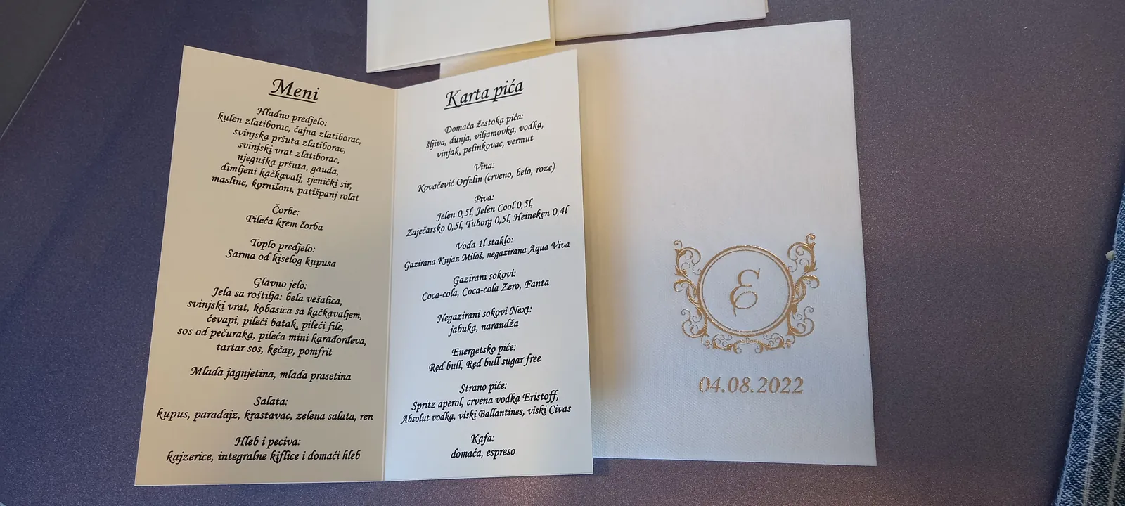 31.Bele salvete sa zlatotiskom i Meni (Karta pića)