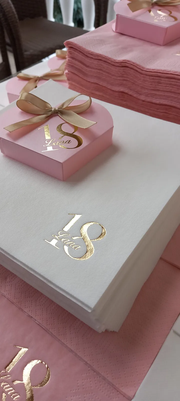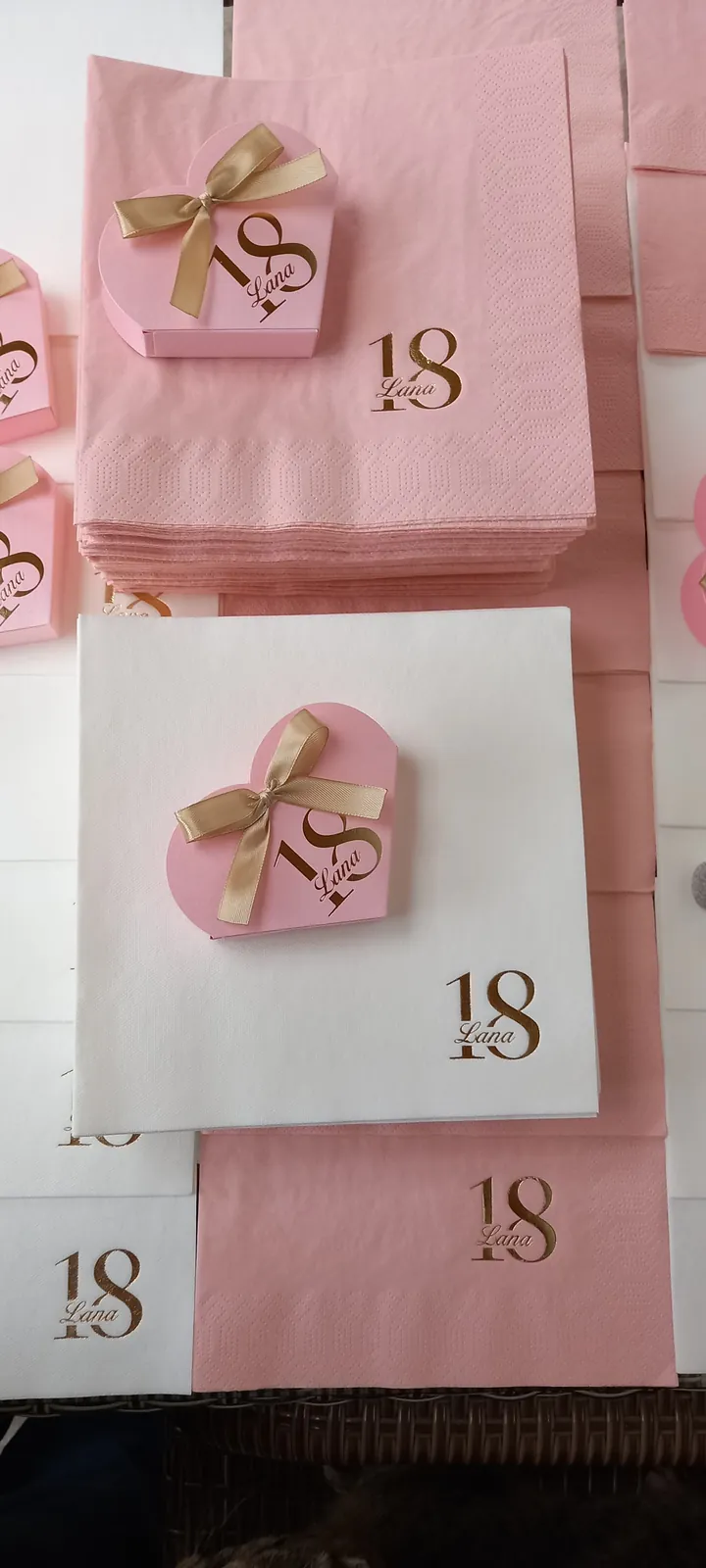 7.Bele salvete sa zlatotiskom i kutije Srce sa zlatotiskom