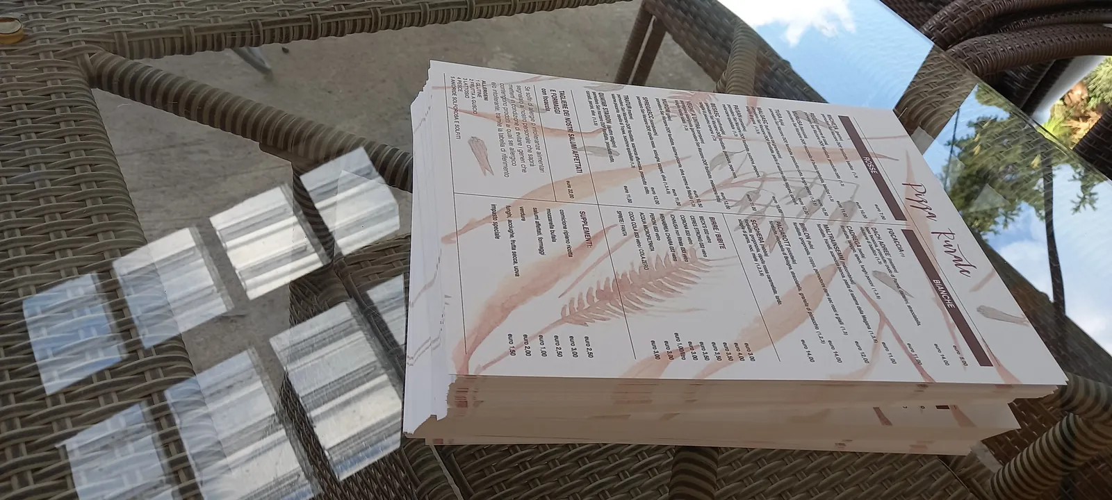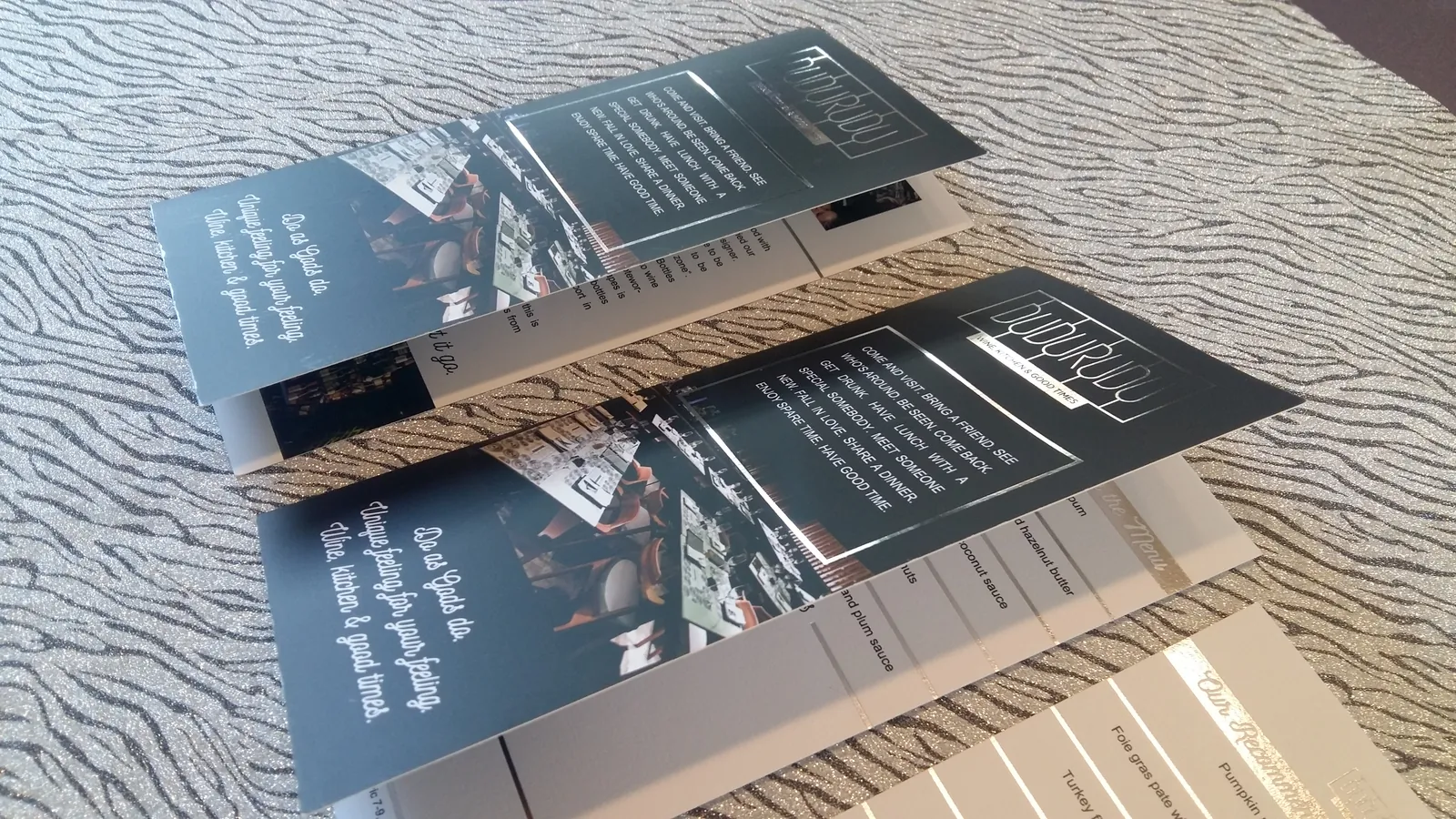 Izrada ekskluzivnih menija ili jelovnika za restorane, u standarnim tehnikama štampe ili sa detaljima u srebrotisku/ zlatotisku (foto 1-7). Radimo i plastifikaciju jelovnika radi dužeg trajanja jer se često uzima u ruke.