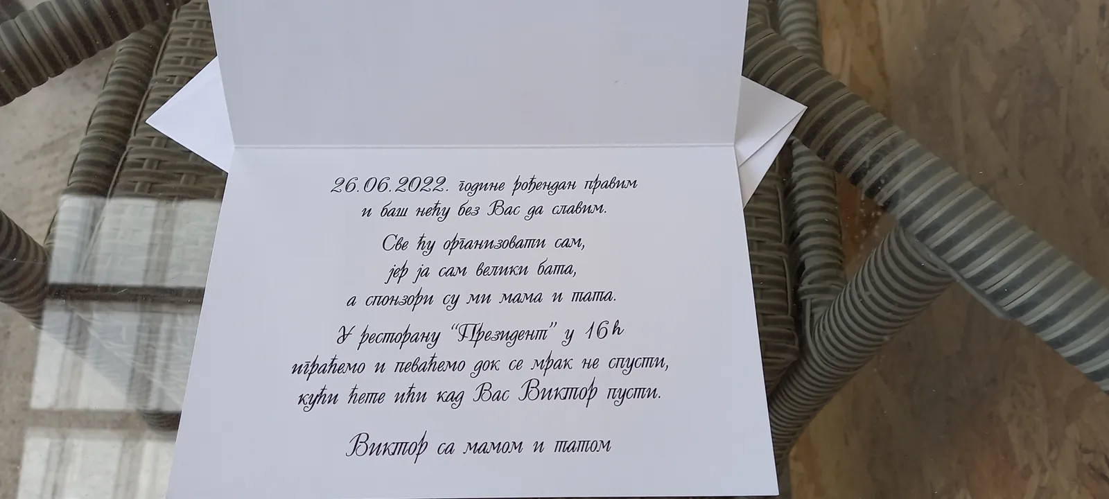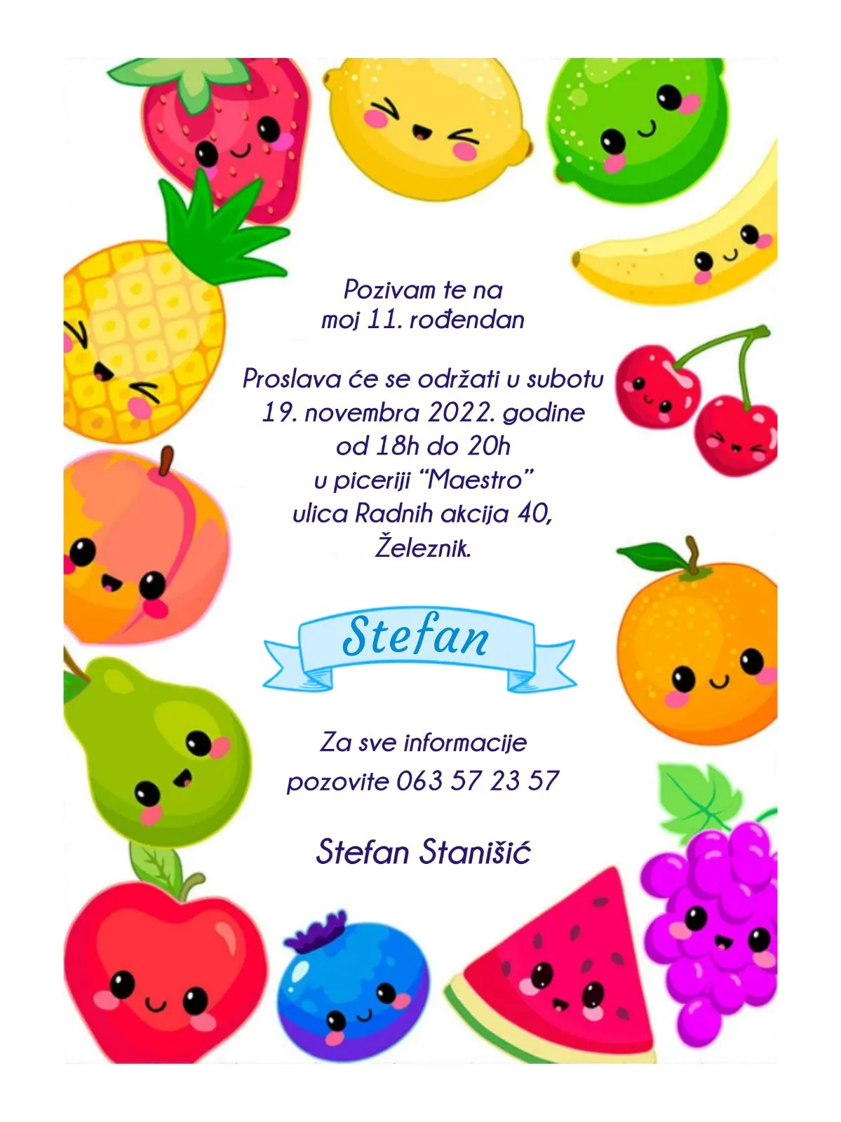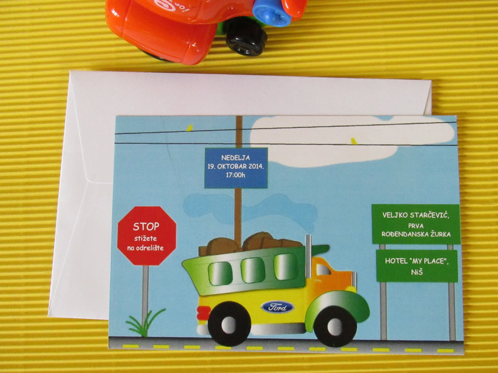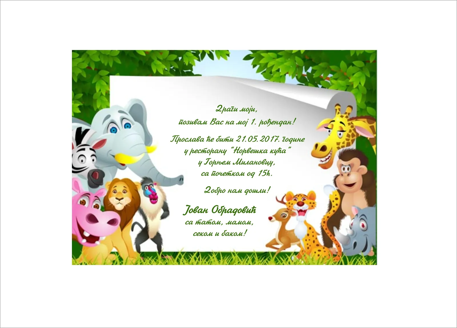 Povoljne pozivnice za proslavu prvog rođendana ili krštenja devojčica i dečaka sa motivima Diznijevih junaka, Minnie Mouse, Mickey Mouse, Winnie Pooh, Stič, Pepa Prase, Mala sirena, Šilja, princeza Sofija, Cars, kamiončići, Patrolne šape, Spiderman, životinjice iz prašume, bubamare...sve što vaše dete voli, može biti na pozivnici. Sve ove pozivnice mogu biti u štampanoj formi ili u ELEKTRONSKOJ FORMI sa vašim tekstom za pozivanje gostiju preko Vibera ili WhatsApp-a. Sve pozivnice mogu biti urađene na jednoj strani ili da se otvaraju, takođe na svakoj se može dodati fotografija vašeg deteta. Možete naručiti pozivnice sa kovertom u beloj ili nekoj boji po želji, ili bez koverte.