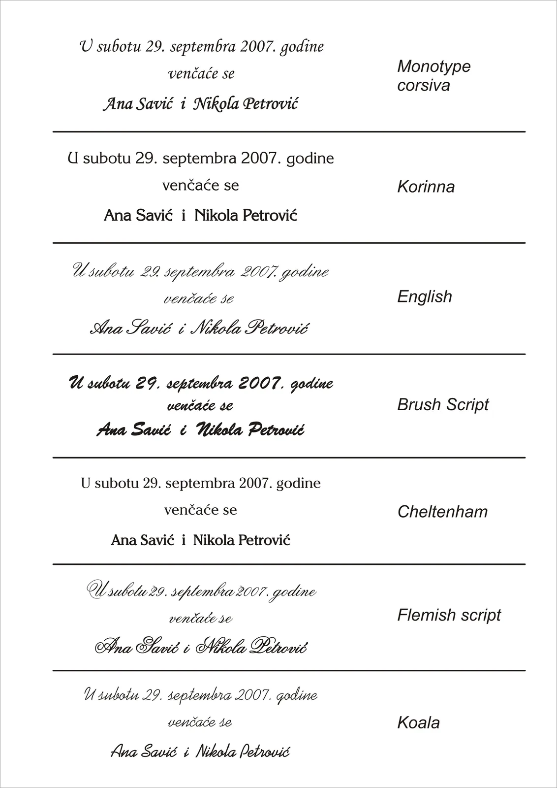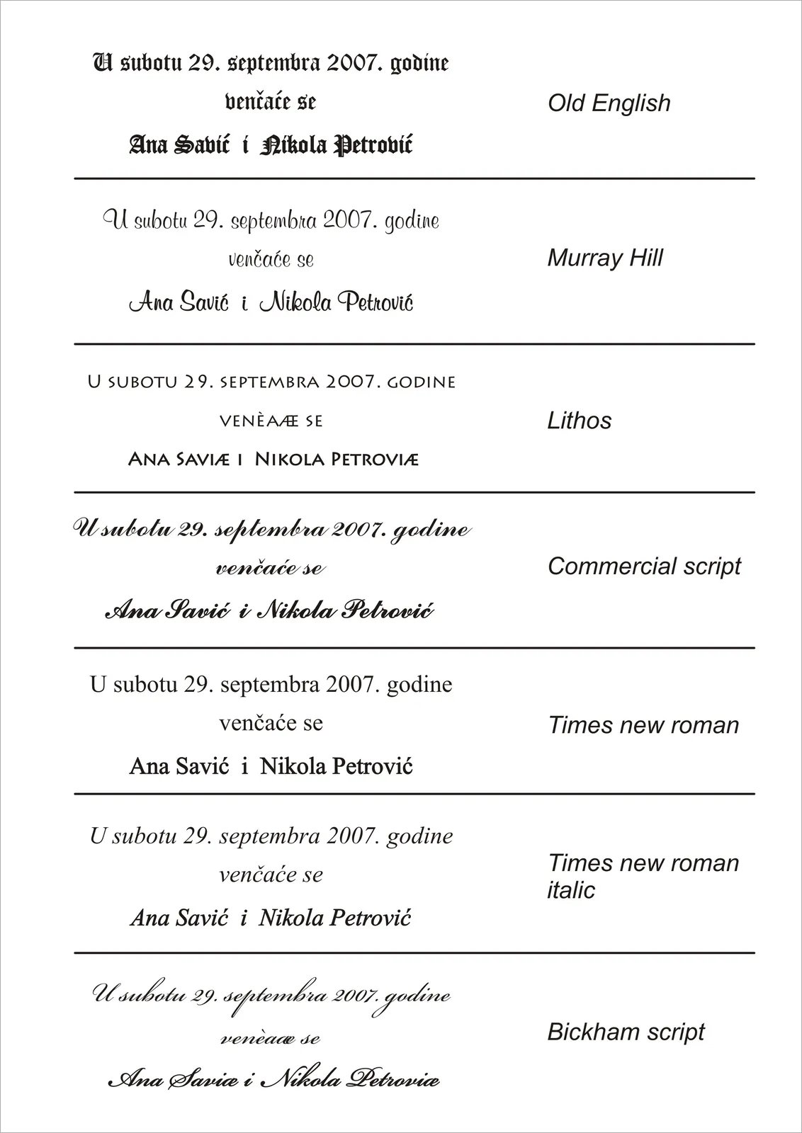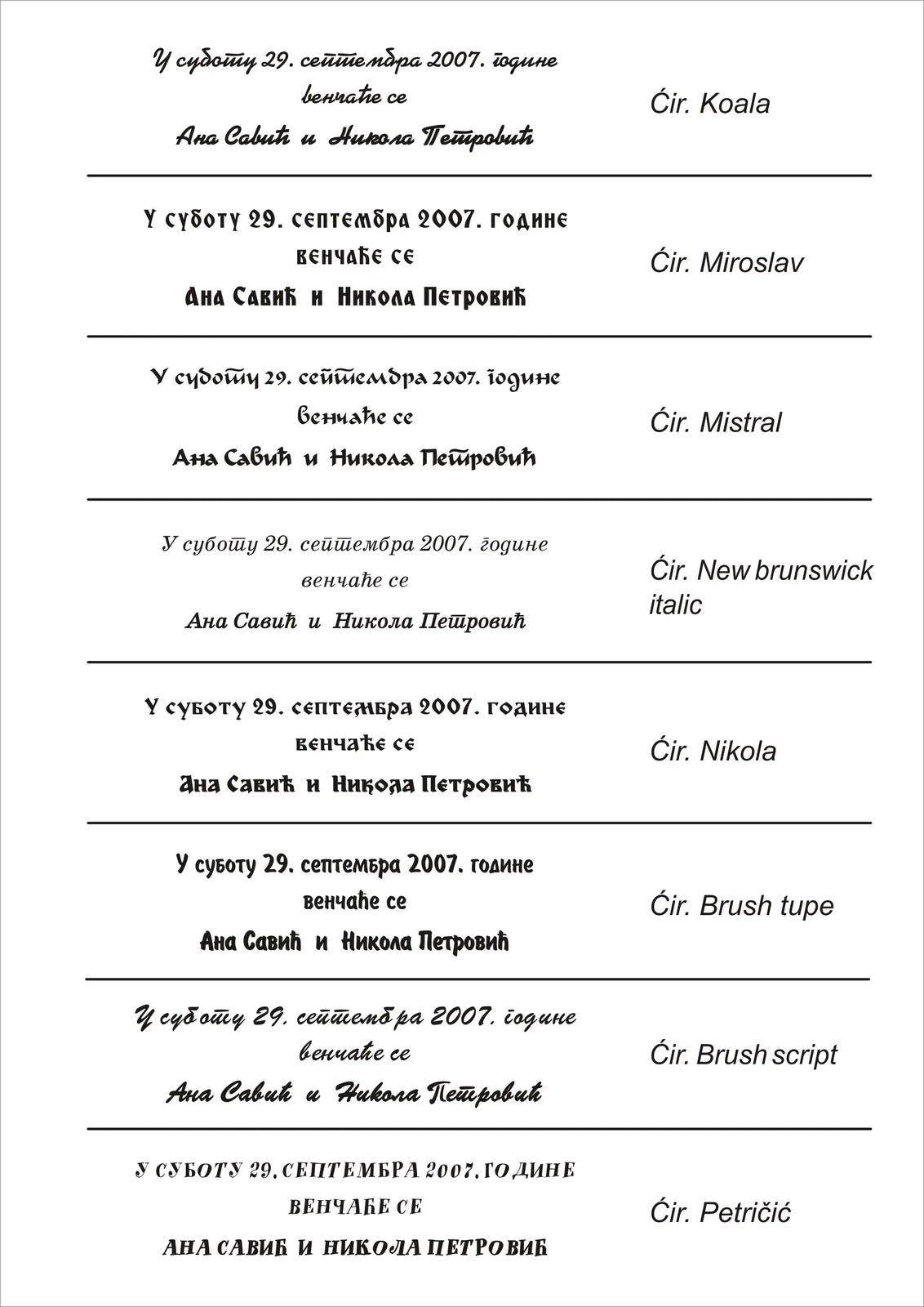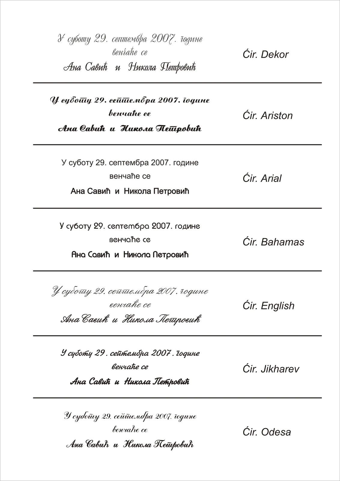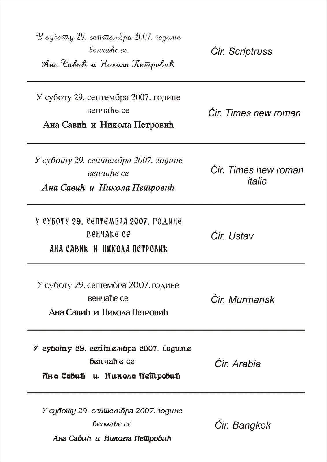 IZBOR FONTOVA (VRSTE SLOVA) – ĆIRILICA/LATINICA PISANA/ŠTAMPANA