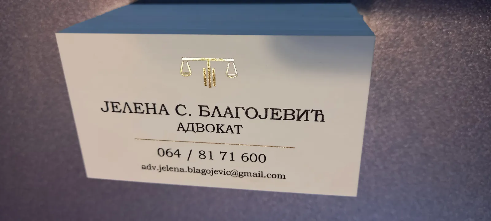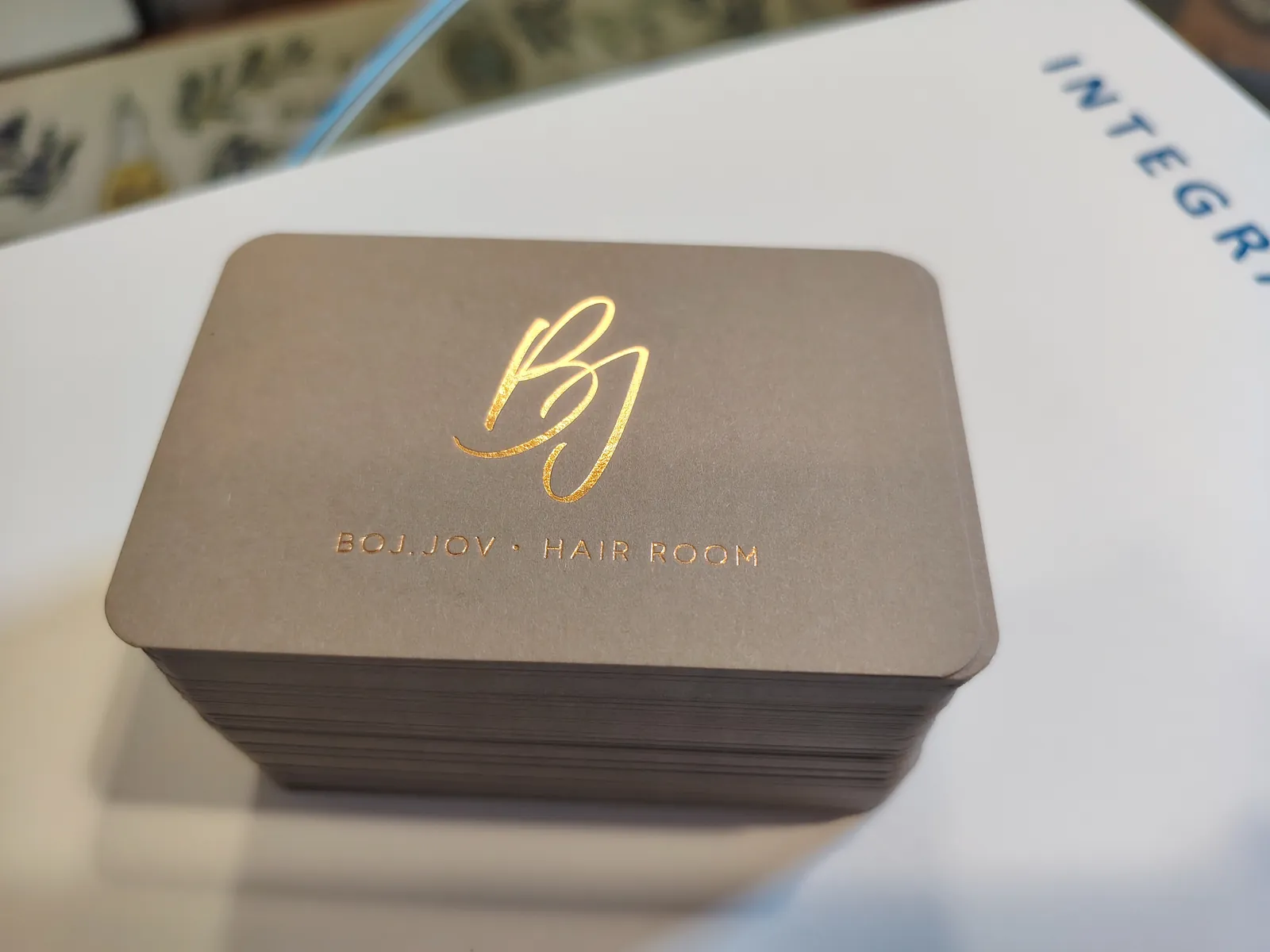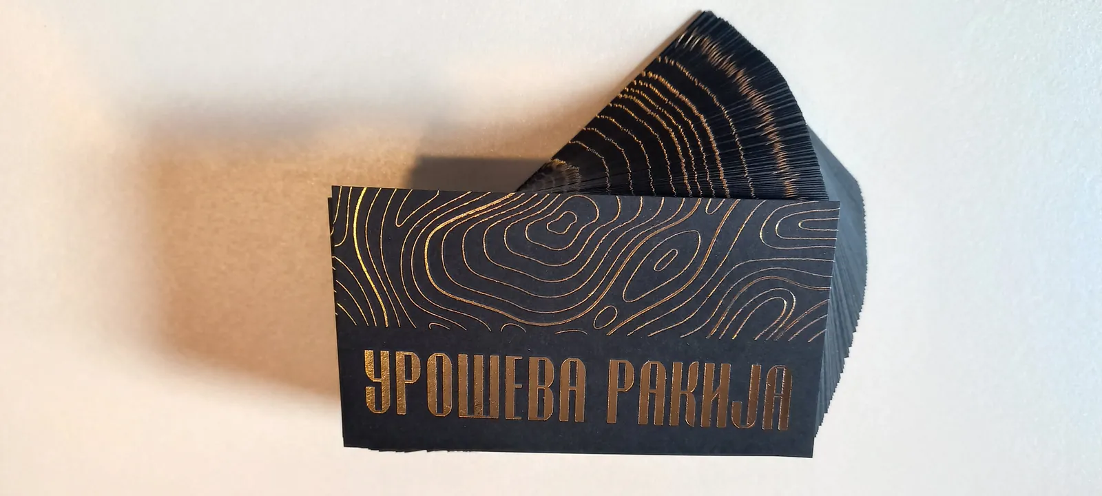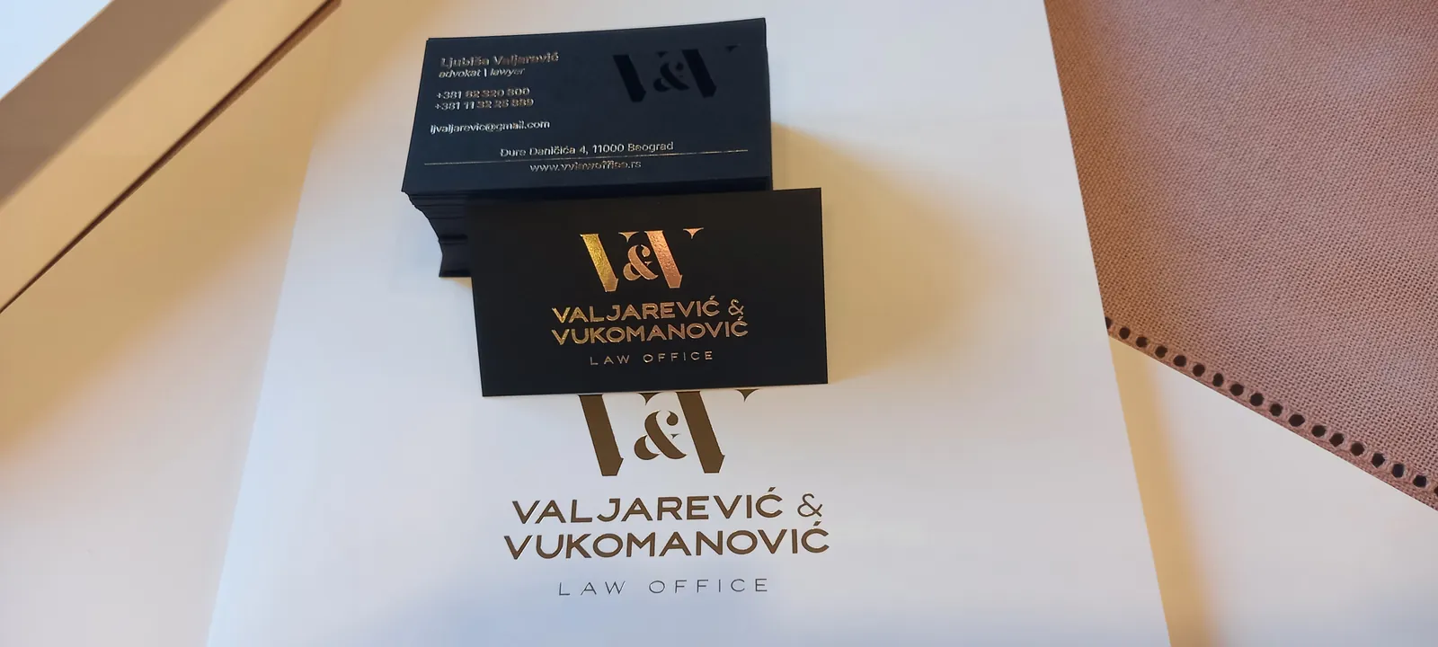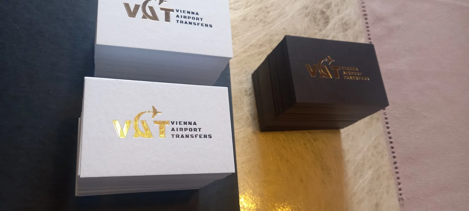 Za vizit karte sa zlatotiskom postali smo pravi stručnjaci, jer godinama najviše radimo baš ovakve vizit karte. Za ove otmene i luksuzne vizit karte u zlatotisku, obavezno se koriste italijanski papiri, boje po želji: bela, bež, crna u zadnje vreme najpopularnija, zelena, ljubičasta, bordo, teget...Grafičku pripremu vam možemo uraditi mi. Ukoliko želite vizit karte u zlatotisku, neophodna je priprema u vektorskom formatu, jer se po njoj prave klišei, a slova se otiskuju u zlatnoj foliji pod viskom temperaturom. Slova imaju izuzetan sjaj. Što se tiče čvrstine papira, u ovoj varijanti je moguće uraditi štampu i na dosta čvršćem papiru do 450 grama jer ova vrsta štampe to dozvoljava. Kao završnu obradu, predlažemo zaobljene ivice, to je stvar izbora, nekome se sviđa, nekome ne. Ceo tekst može se štampati samo na prednjoj strani, što je povoljnije. Naravno, može biti i obostrani zlatotisak.