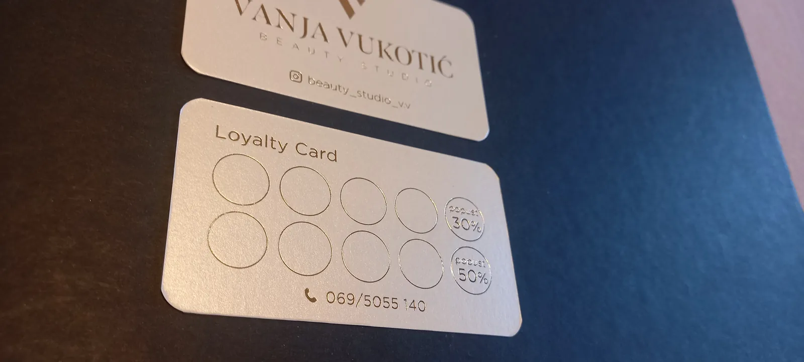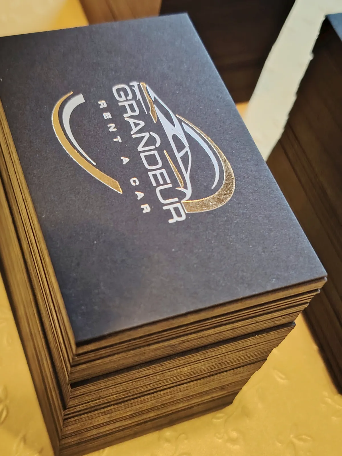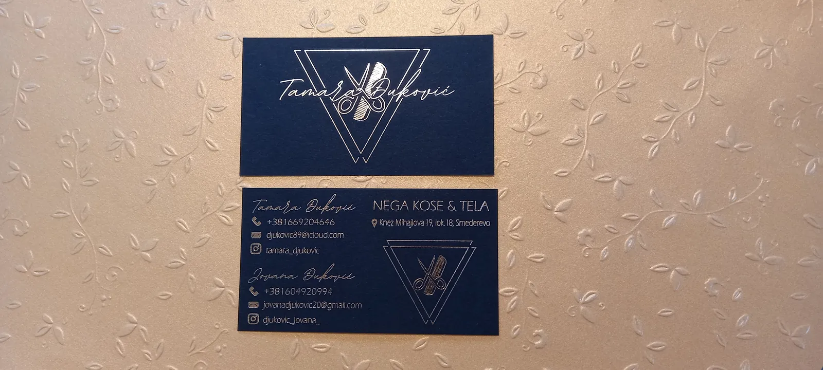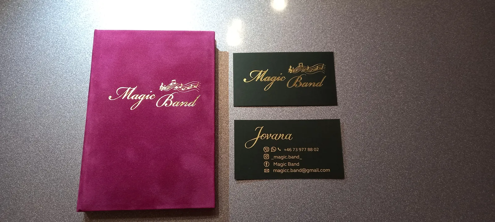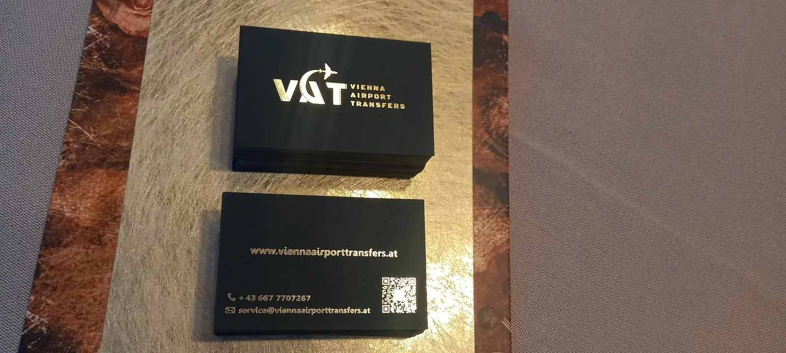 Za vizit karte sa zlatotiskom postali smo pravi stručnjaci, jer godinama najviše radimo baš ovakve vizit karte. Za ove otmene i luksuzne vizit karte u zlatotisku, obavezno se koriste italijanski papiri, boje po želji: bela, bež, crna u zadnje vreme najpopularnija, zelena, ljubičasta, bordo, teget...Grafičku pripremu vam možemo uraditi mi. Ukoliko želite vizit karte u zlatotisku, neophodna je priprema u vektorskom formatu, jer se po njoj prave klišei, a slova se otiskuju u zlatnoj foliji pod viskom temperaturom. Slova imaju izuzetan sjaj. Što se tiče čvrstine papira, u ovoj varijanti je moguće uraditi štampu i na dosta čvršćem papiru do 450 grama jer ova vrsta štampe to dozvoljava. Kao završnu obradu, predlažemo zaobljene ivice, to je stvar izbora, nekome se sviđa, nekome ne. Ceo tekst može se štampati samo na prednjoj strani, što je povoljnije. Naravno, može biti i obostrani zlatotisak.