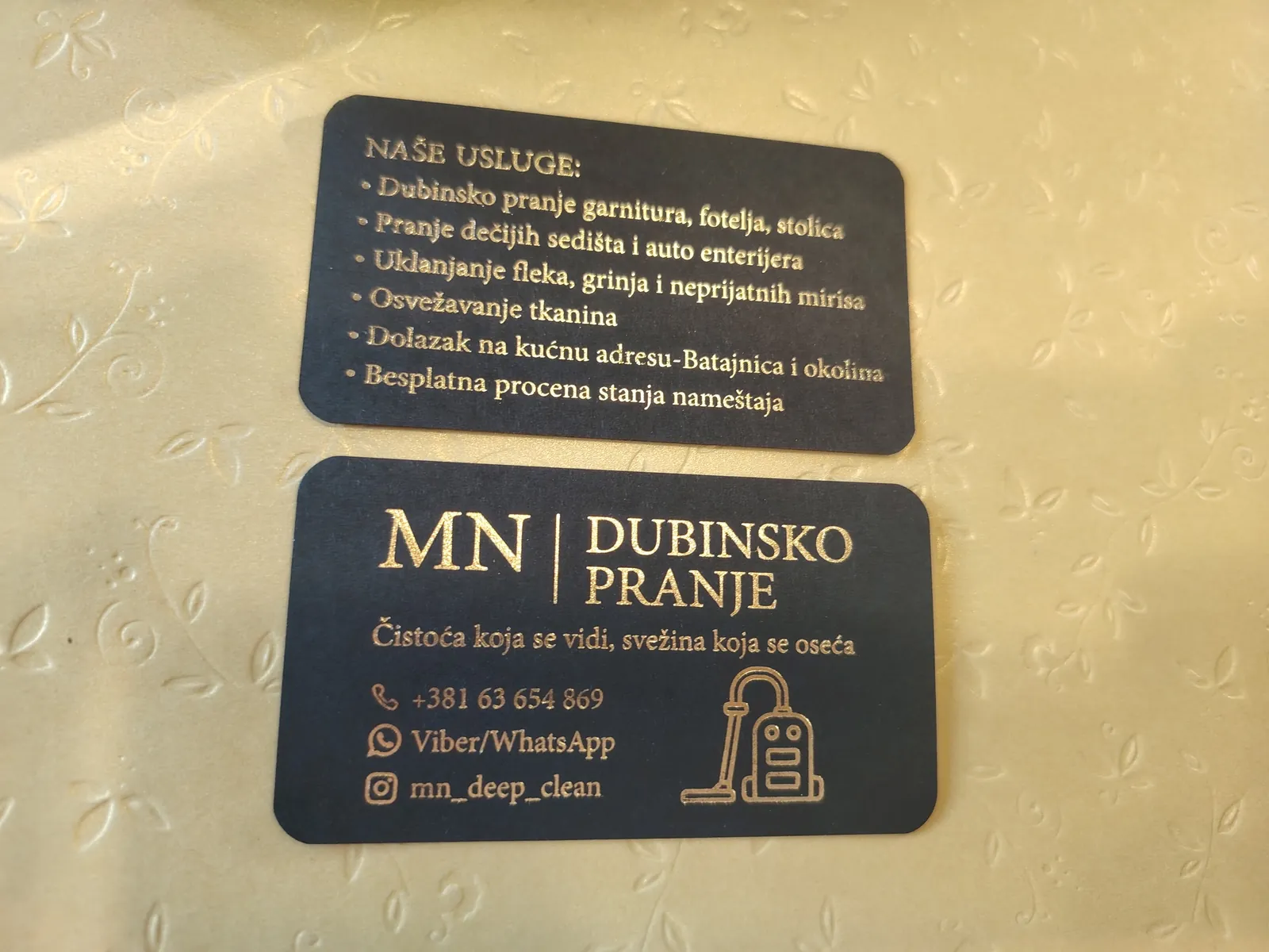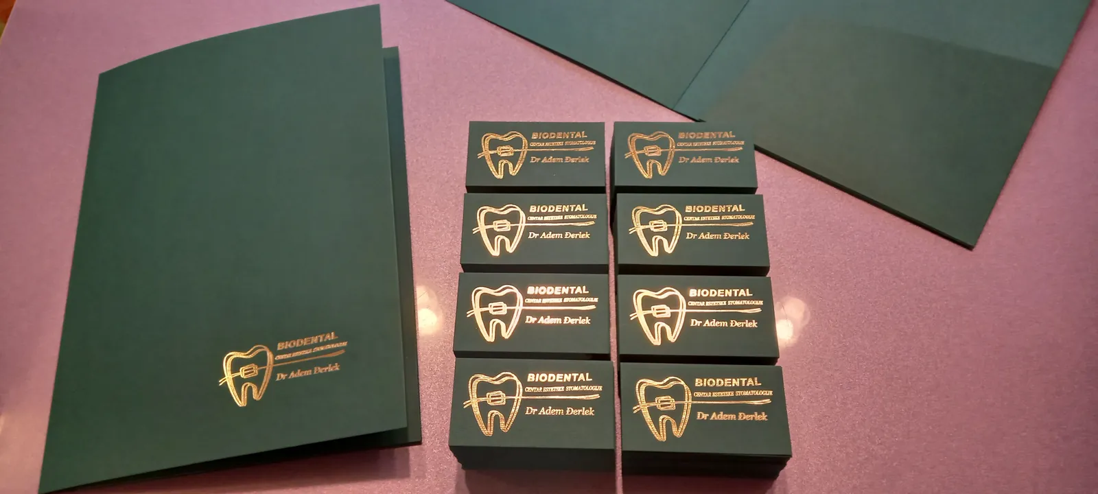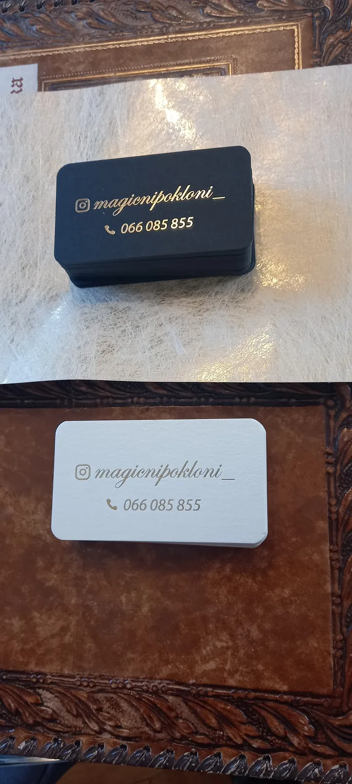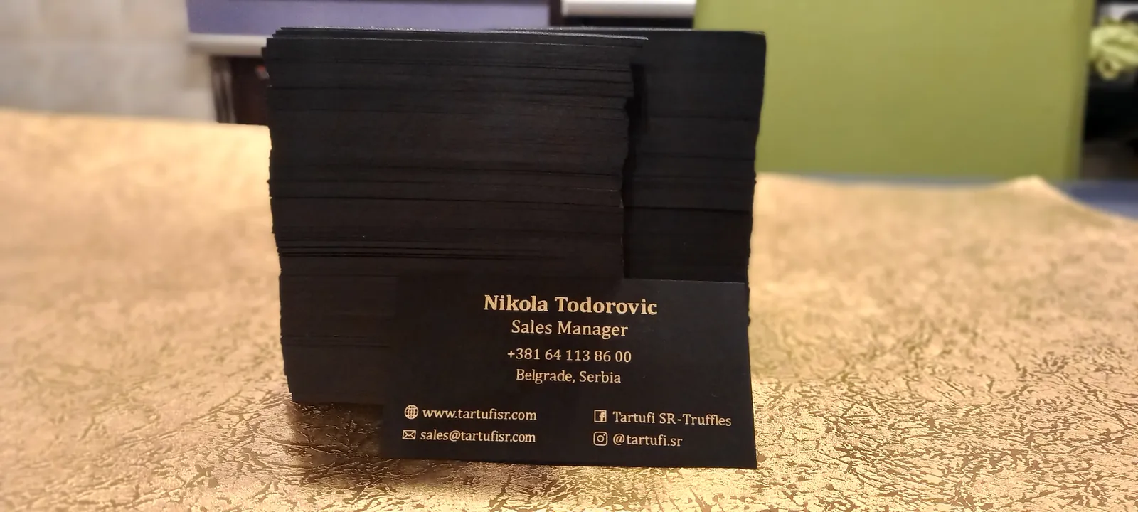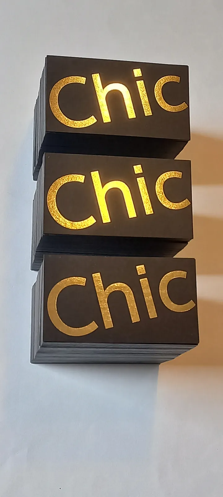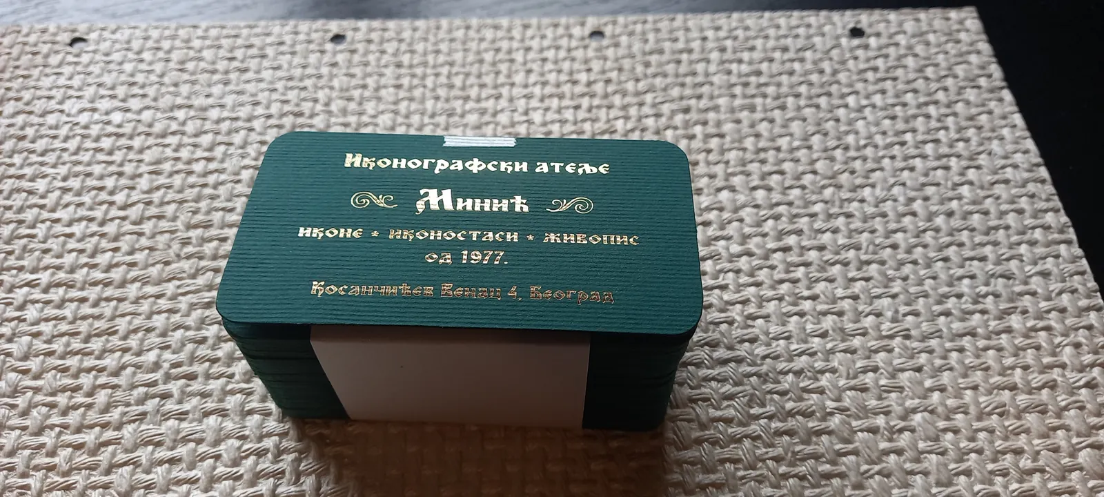 Za vizit karte sa zlatotiskom postali smo pravi stručnjaci, jer godinama najviše radimo baš ovakve vizit karte. Za ove otmene i luksuzne vizit karte u zlatotisku, obavezno se koriste italijanski papiri, boje po želji: bela, bež, crna u zadnje vreme najpopularnija, zelena, ljubičasta, bordo, teget...Grafičku pripremu vam možemo uraditi mi. Ukoliko želite vizit karte u zlatotisku, neophodna je priprema u vektorskom formatu, jer se po njoj prave klišei, a slova se otiskuju u zlatnoj foliji pod viskom temperaturom. Slova imaju izuzetan sjaj. Što se tiče čvrstine papira, u ovoj varijanti je moguće uraditi štampu i na dosta čvršćem papiru do 450 grama jer ova vrsta štampe to dozvoljava. Kao završnu obradu, predlažemo zaobljene ivice, to je stvar izbora, nekome se sviđa, nekome ne. Ceo tekst može se štampati samo na prednjoj strani, što je povoljnije. Naravno, može biti i obostrani zlatotisak.