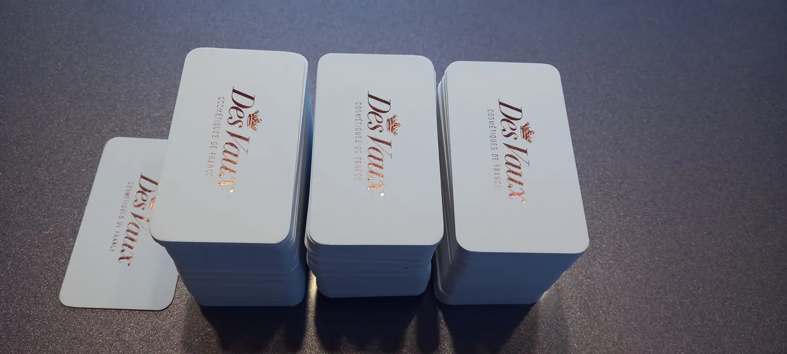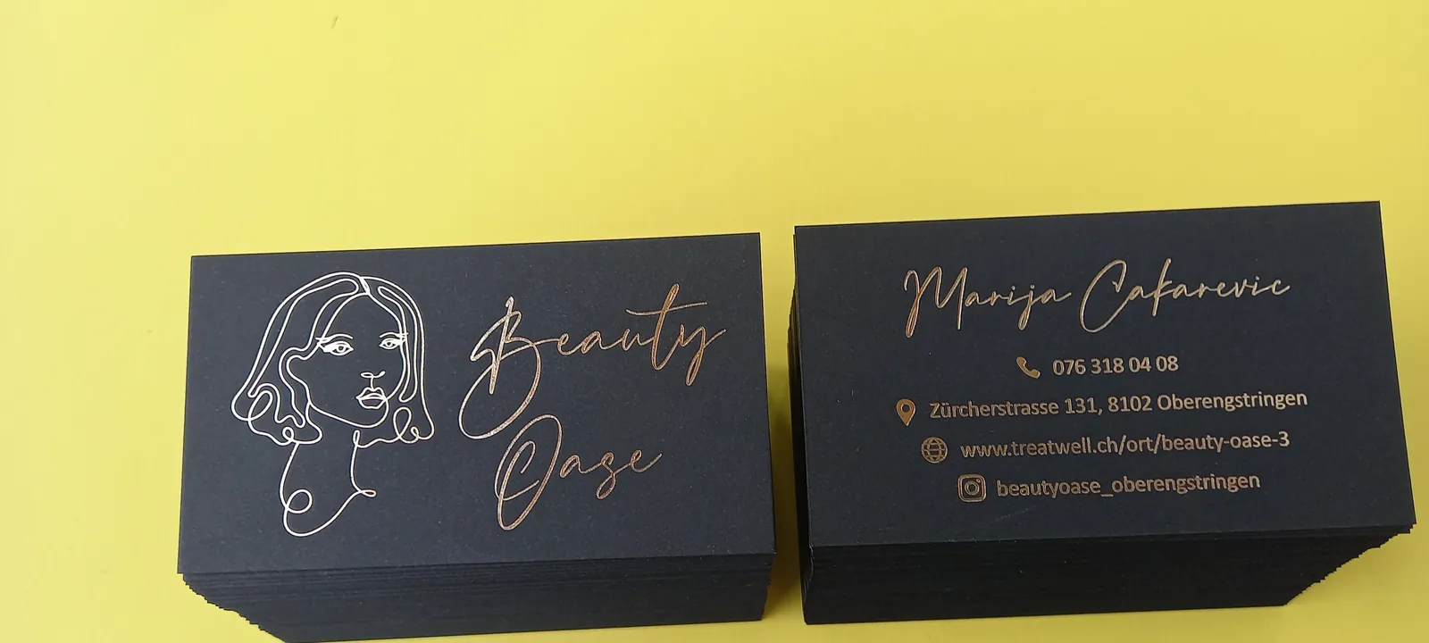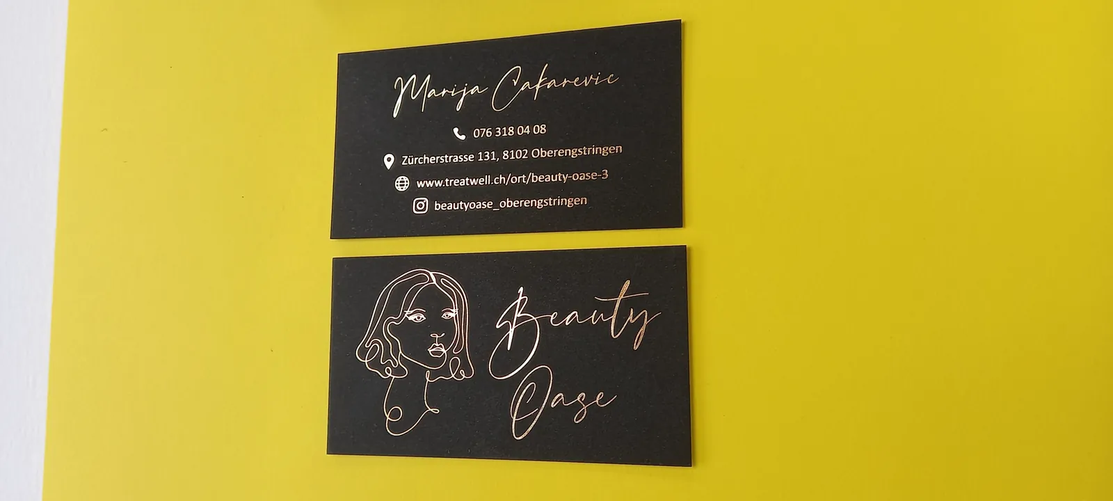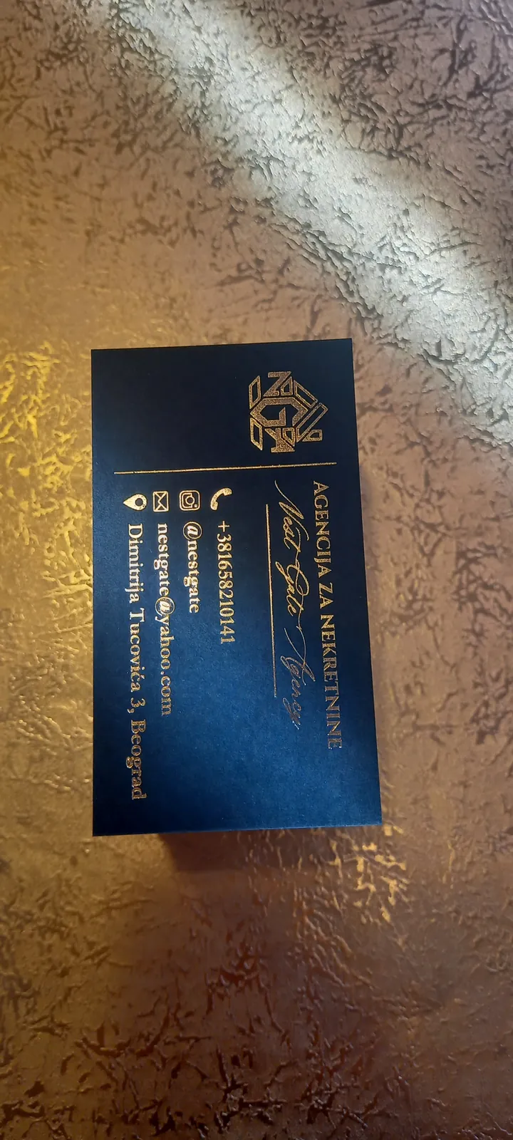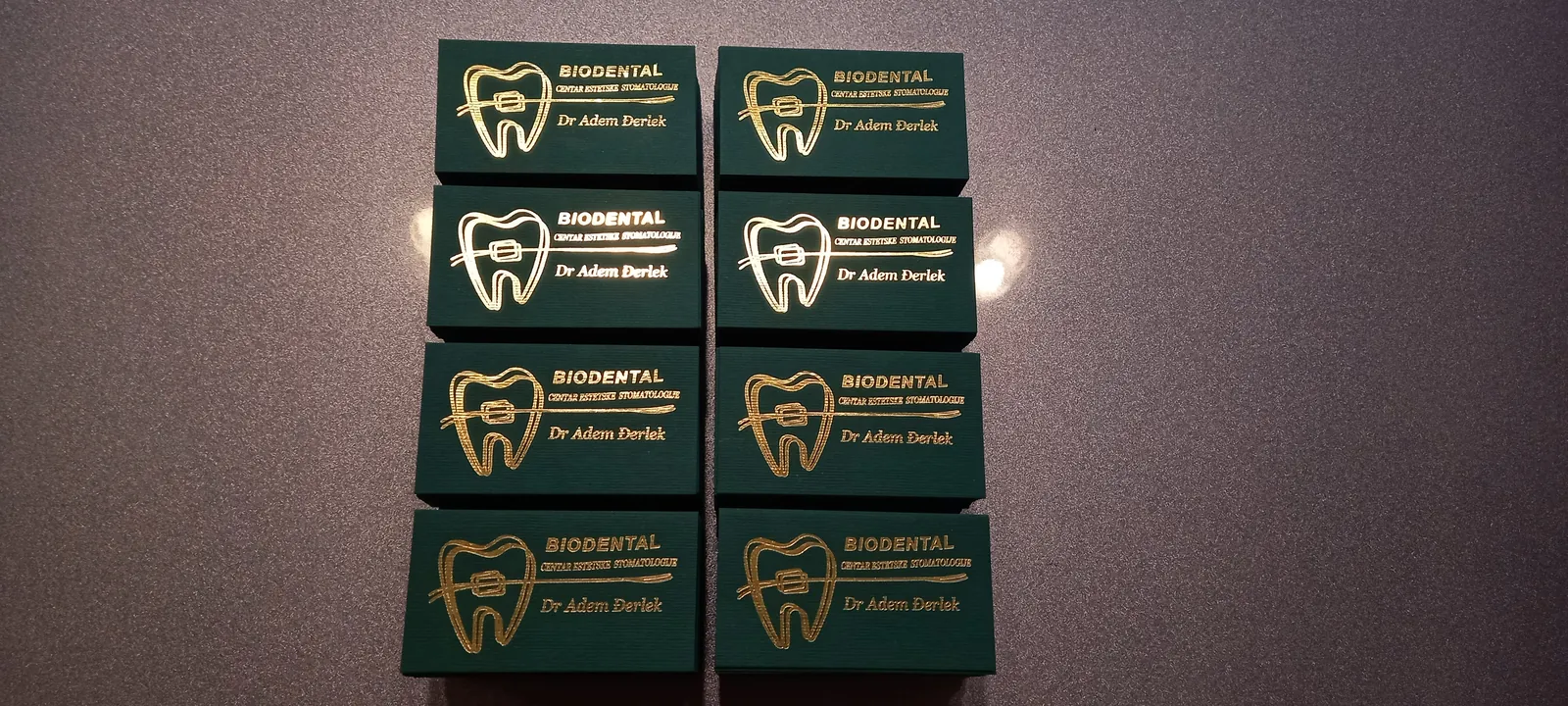 Za vizit karte sa zlatotiskom postali smo pravi stručnjaci, jer godinama najviše radimo baš ovakve vizit karte. Za ove otmene i luksuzne vizit karte u zlatotisku, obavezno se koriste italijanski papiri, boje po želji: bela, bež, crna u zadnje vreme najpopularnija, zelena, ljubičasta, bordo, teget...Grafičku pripremu vam možemo uraditi mi. Ukoliko želite vizit karte u zlatotisku, neophodna je priprema u vektorskom formatu, jer se po njoj prave klišei, a slova se otiskuju u zlatnoj foliji pod viskom temperaturom. Slova imaju izuzetan sjaj. Što se tiče čvrstine papira, u ovoj varijanti je moguće uraditi štampu i na dosta čvršćem papiru do 450 grama jer ova vrsta štampe to dozvoljava. Kao završnu obradu, predlažemo zaobljene ivice, to je stvar izbora, nekome se sviđa, nekome ne. Ceo tekst može se štampati samo na prednjoj strani, što je povoljnije. Naravno, može biti i obostrani zlatotisak.