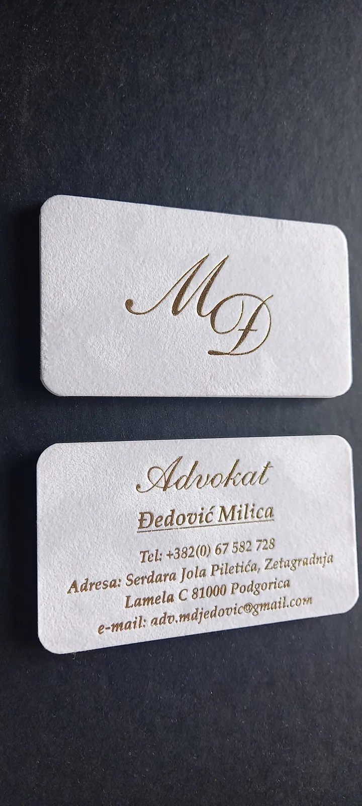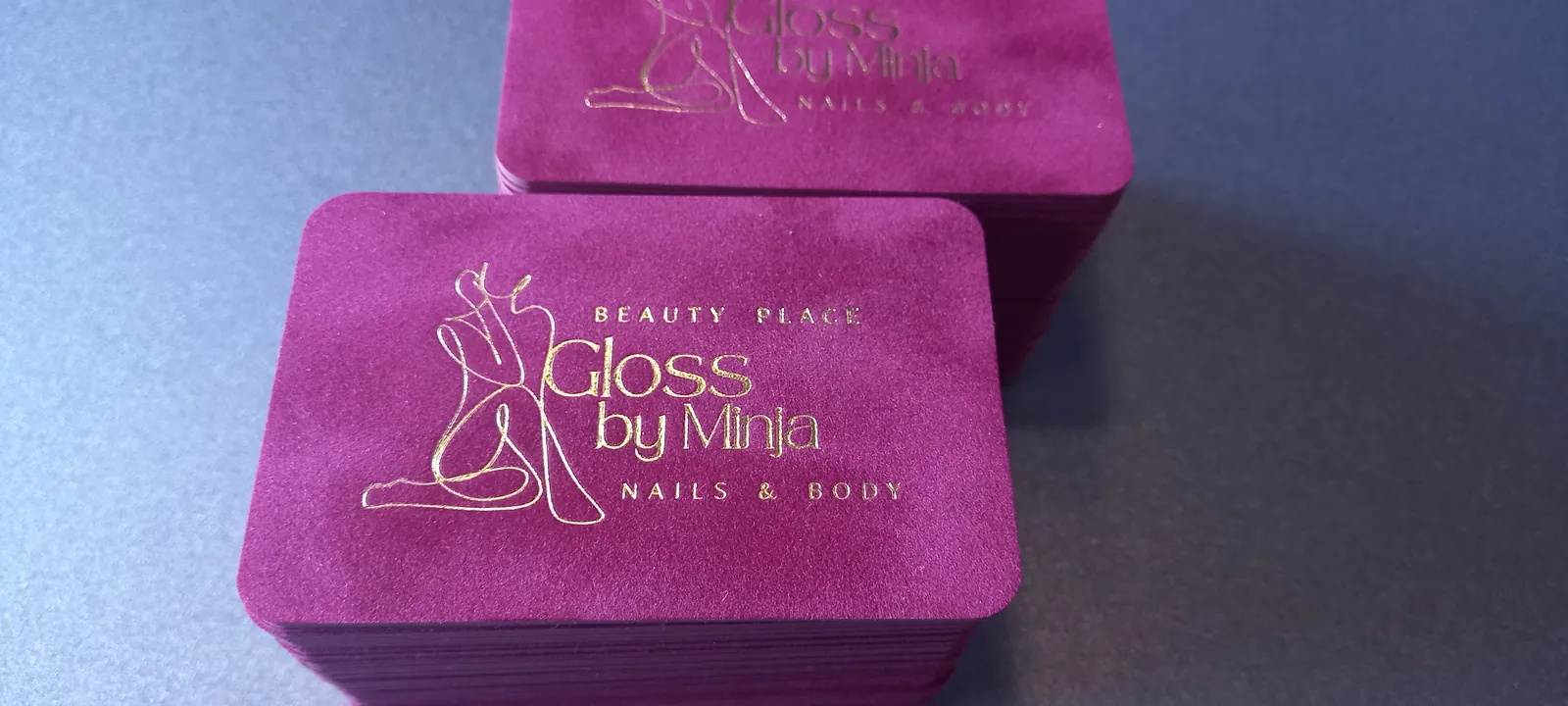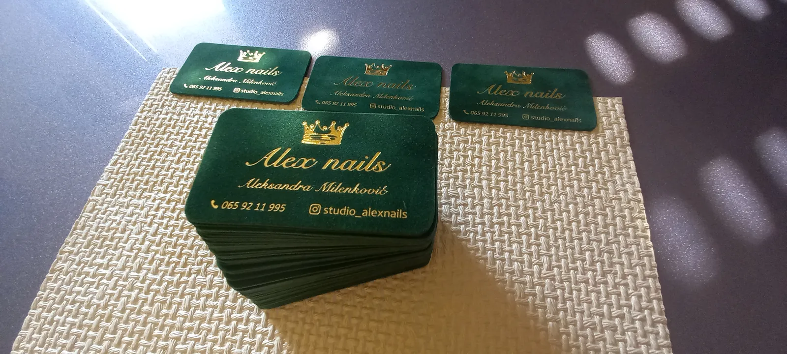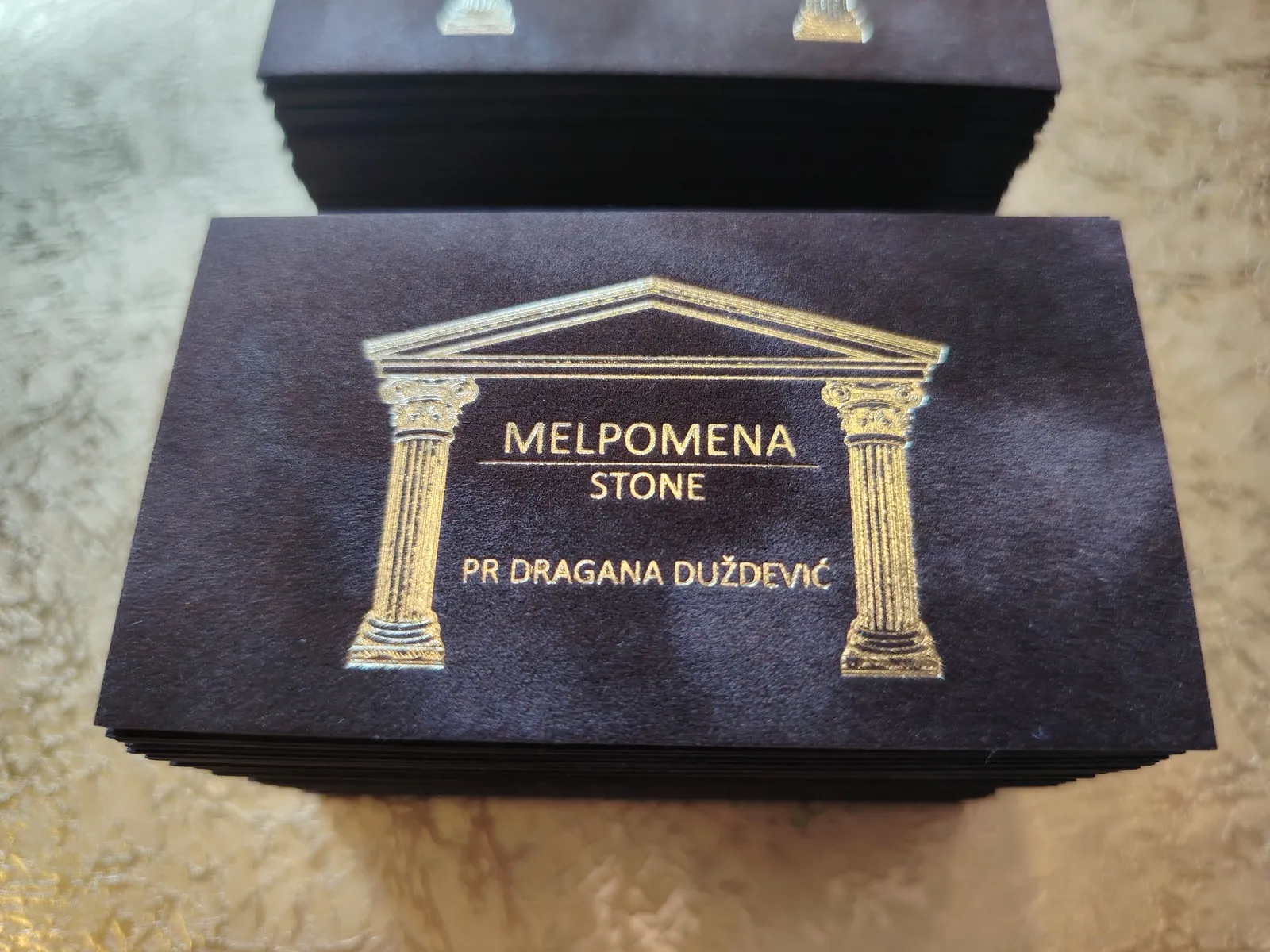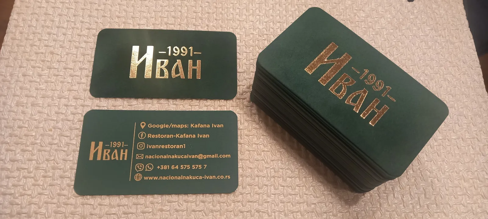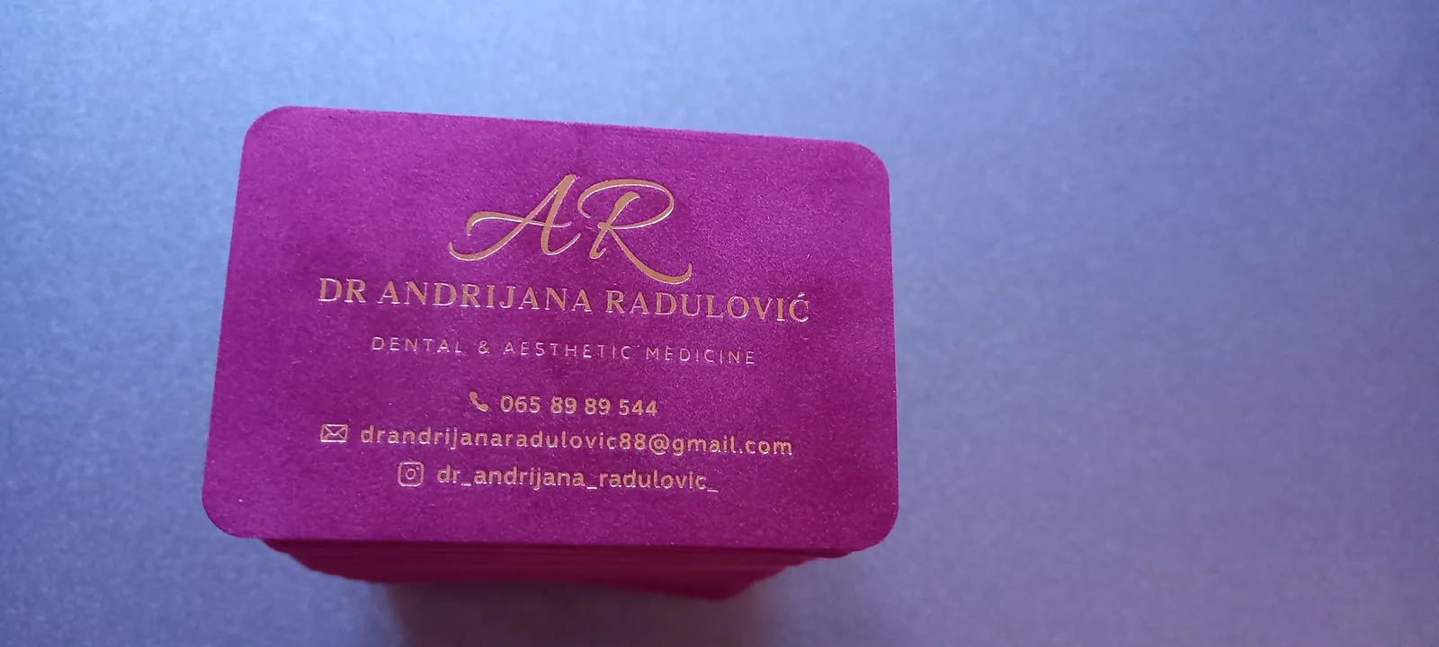Kada neko zaista želi da bude neobičan sa svojim vizit kartama, neka se odluči za otmene, luksuzne plišane vizit karte! Klijenti mogu odabrati boju pliša, ima ga u svim bojama. Na plišu se radi zlatototisak, srebrotisak ili foliotisak, ne može se raditi obična štampa. Plišane vizit karte takođe su kaširane, čvršće od običnih, lepe se mašinski iz tri sloja. Ponekad kada je logo firme u punom koloru, možemo uraditi i kombinaciju, jedna strana plišana a druga štampana u digitalnoj štampi. Šaljemo plišane vizit karte često u Crnu Goru, Bosnu, Hrvatsku, Švajcarsku, Nemačku jer tamo niko to ne radi!