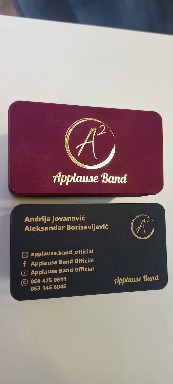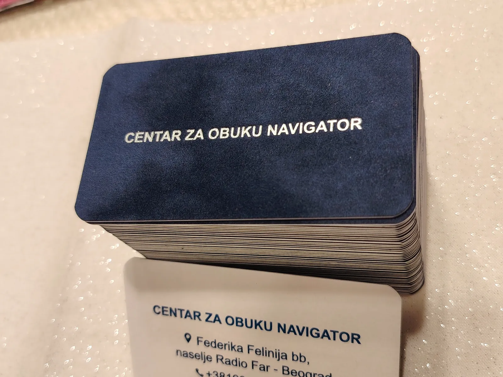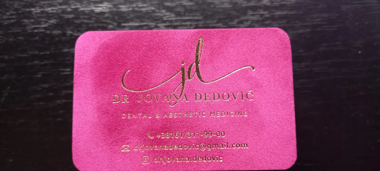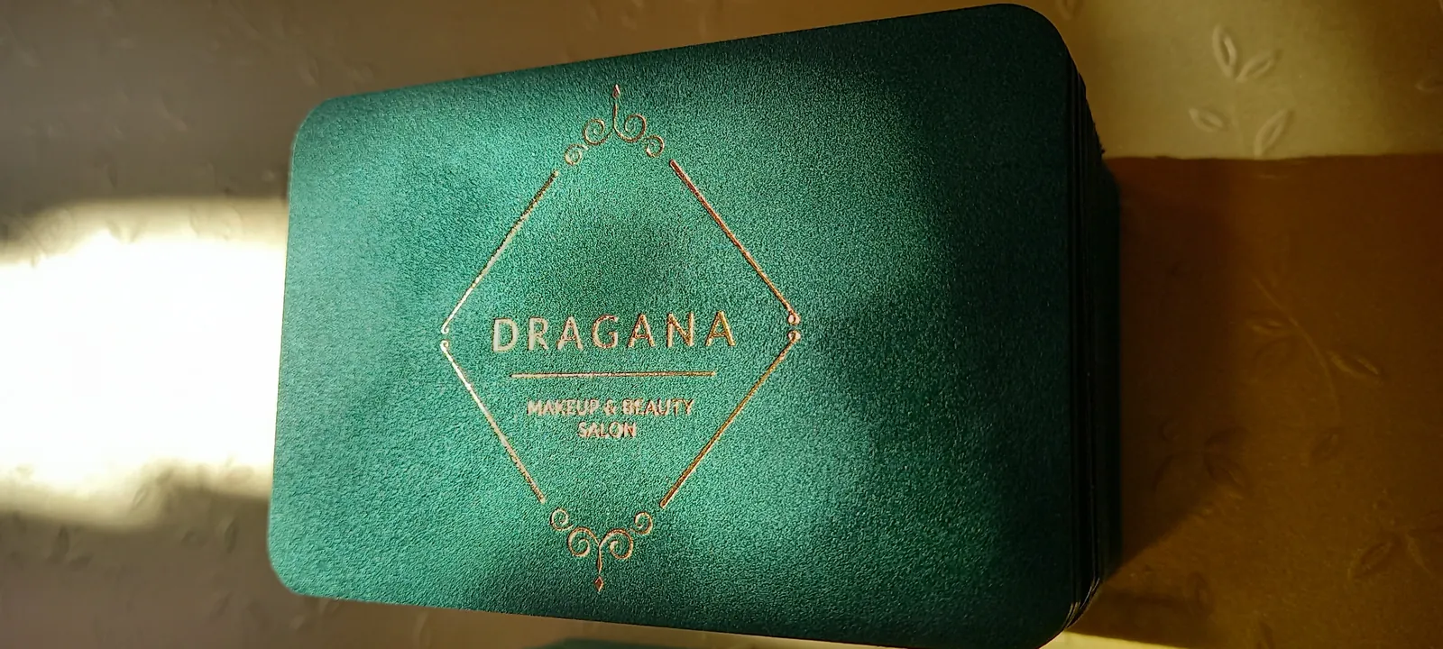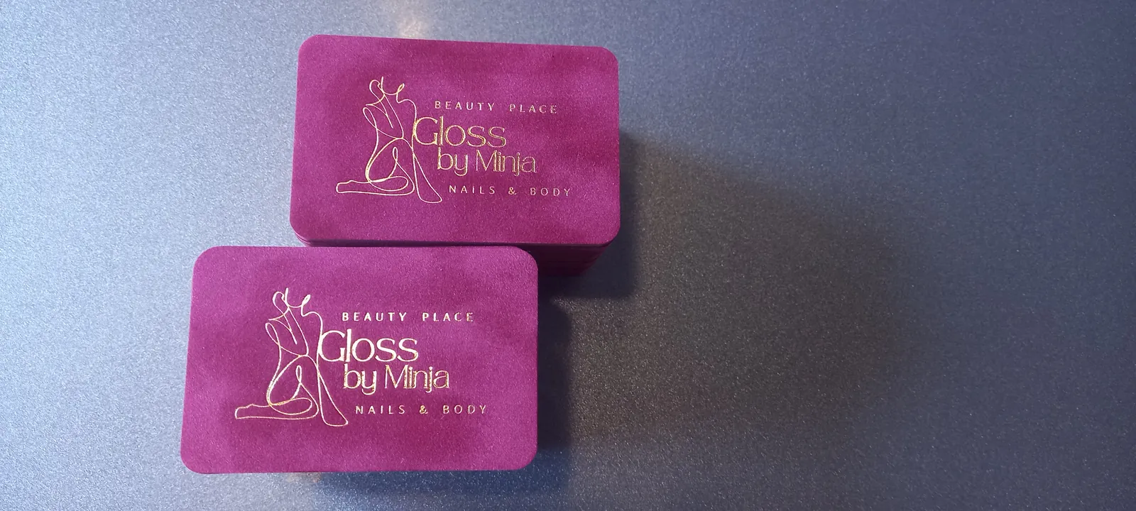 Kada neko zaista želi da bude neobičan sa svojim vizit kartama, neka se odluči za otmene, luksuzne plišane vizit karte! Klijenti mogu odabrati boju pliša, ima ga u svim bojama. Na plišu se radi zlatototisak, srebrotisak ili foliotisak, ne može se raditi obična štampa. Plišane vizit karte takođe su kaširane, čvršće od običnih, lepe se mašinski iz tri sloja. Ponekad kada je logo firme u punom koloru, možemo uraditi i kombinaciju, jedna strana plišana a druga štampana u digitalnoj štampi. Šaljemo plišane vizit karte često u Crnu Goru, Bosnu, Hrvatsku, Švajcarsku, Nemačku jer tamo niko to ne radi!