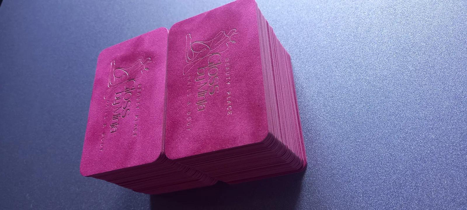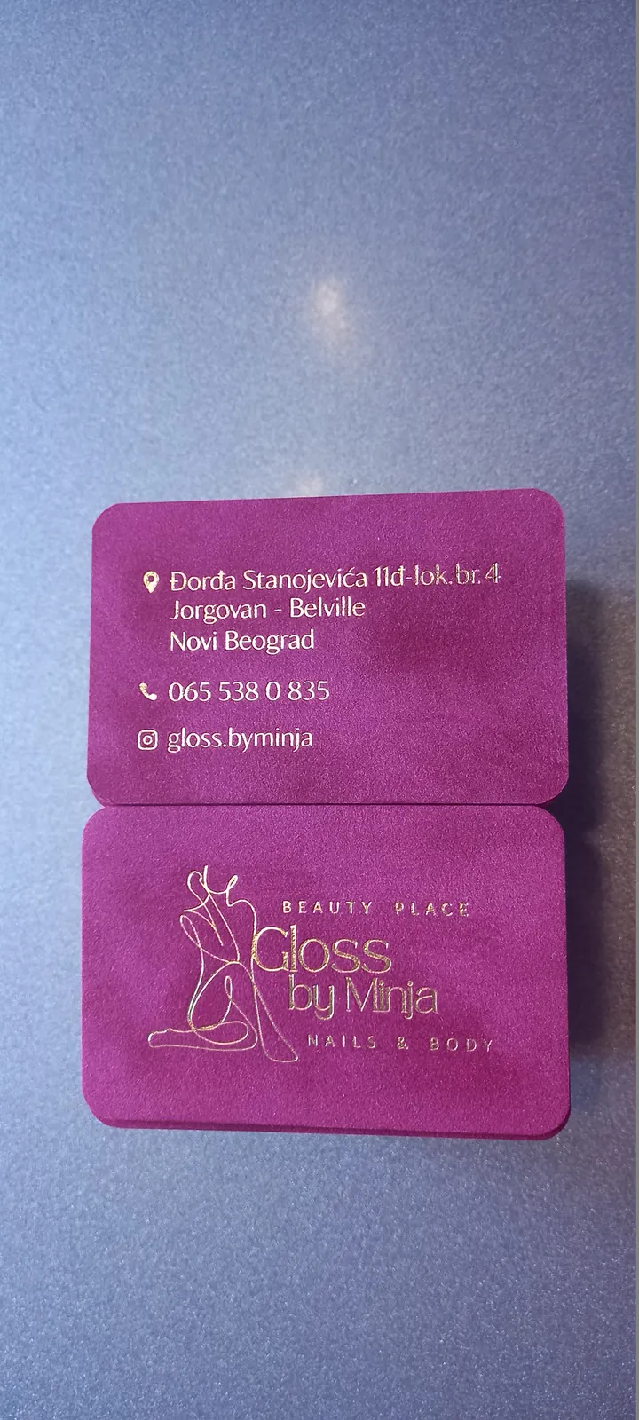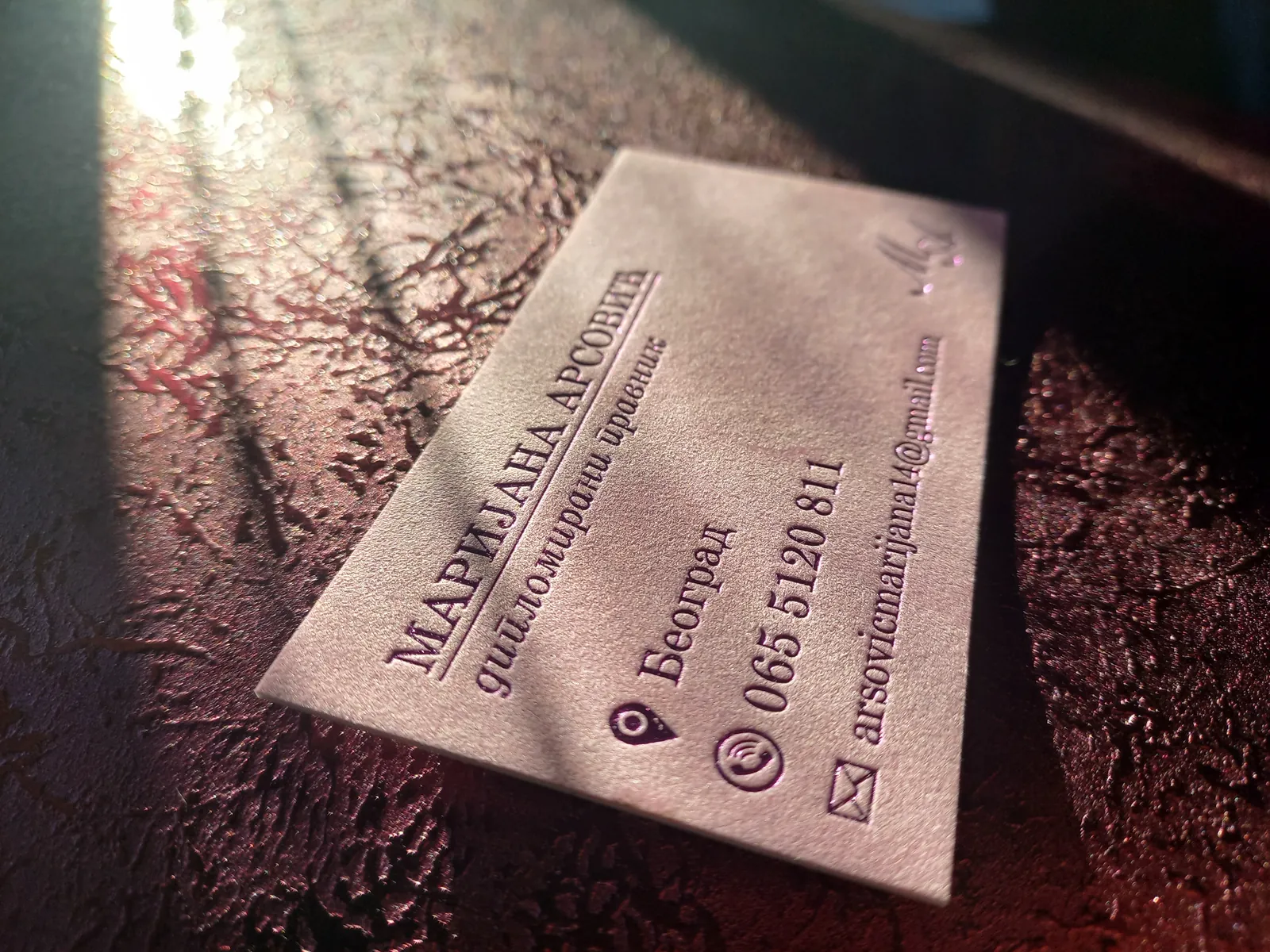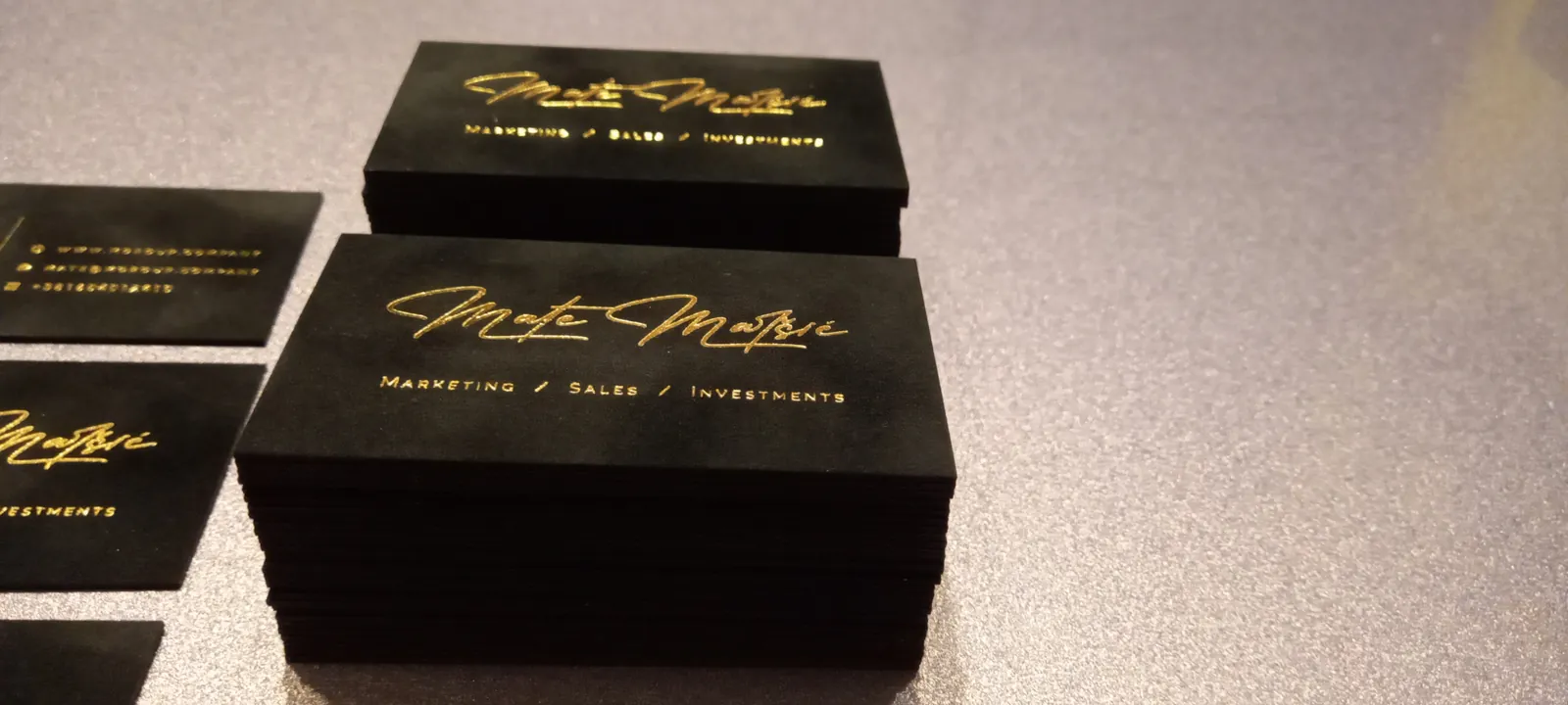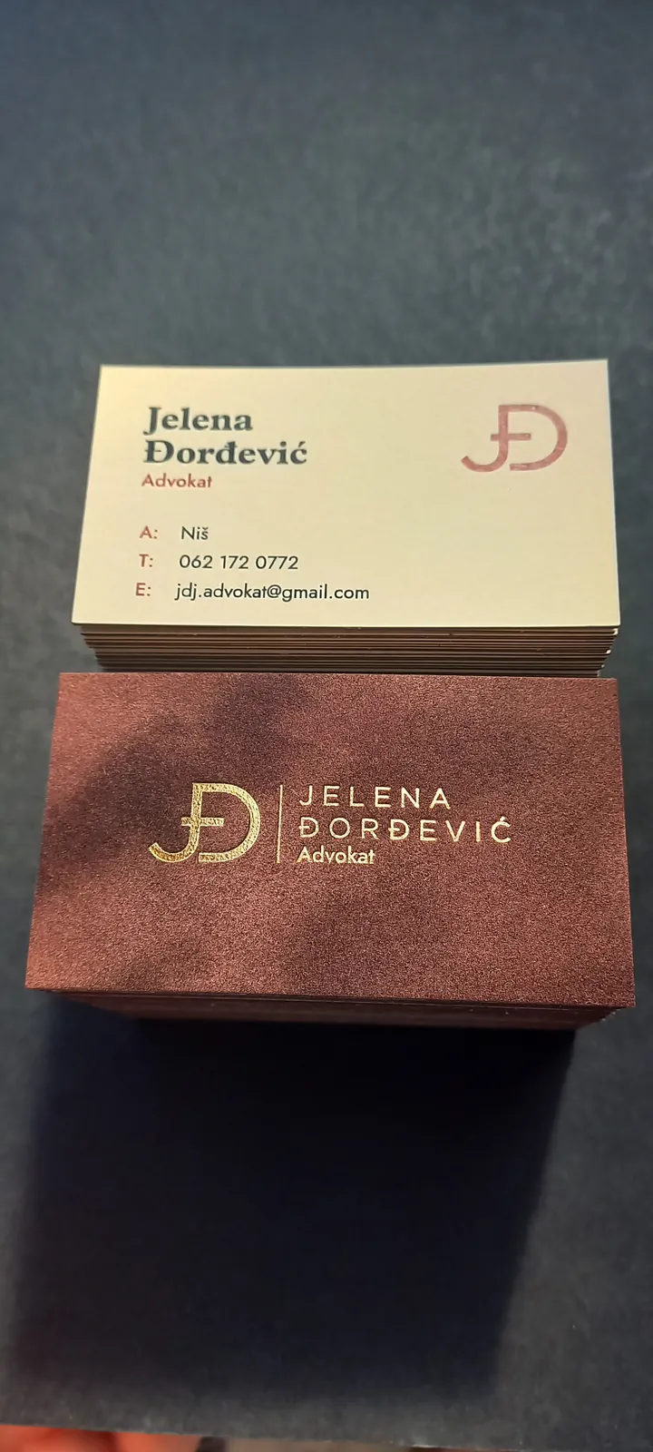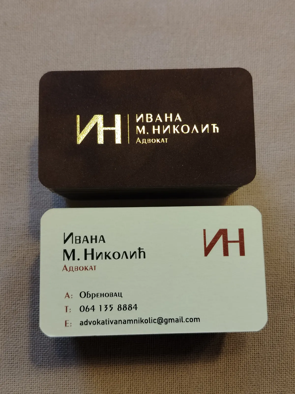 Kada neko zaista želi da bude neobičan sa svojim vizit kartama, neka se odluči za otmene, luksuzne plišane vizit karte! Klijenti mogu odabrati boju pliša, ima ga u svim bojama. Na plišu se radi zlatototisak, srebrotisak ili foliotisak, ne može se raditi obična štampa. Plišane vizit karte takođe su kaširane, čvršće od običnih, lepe se mašinski iz tri sloja. Ponekad kada je logo firme u punom koloru, možemo uraditi i kombinaciju, jedna strana plišana a druga štampana u digitalnoj štampi. Šaljemo plišane vizit karte često u Crnu Goru, Bosnu, Hrvatsku, Švajcarsku, Nemačku jer tamo niko to ne radi!