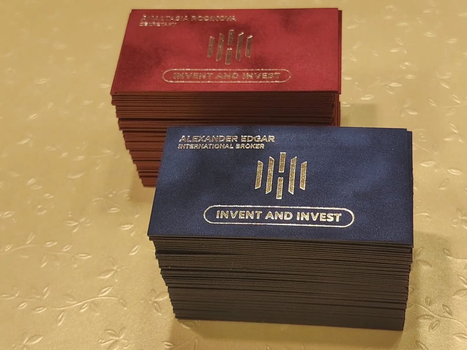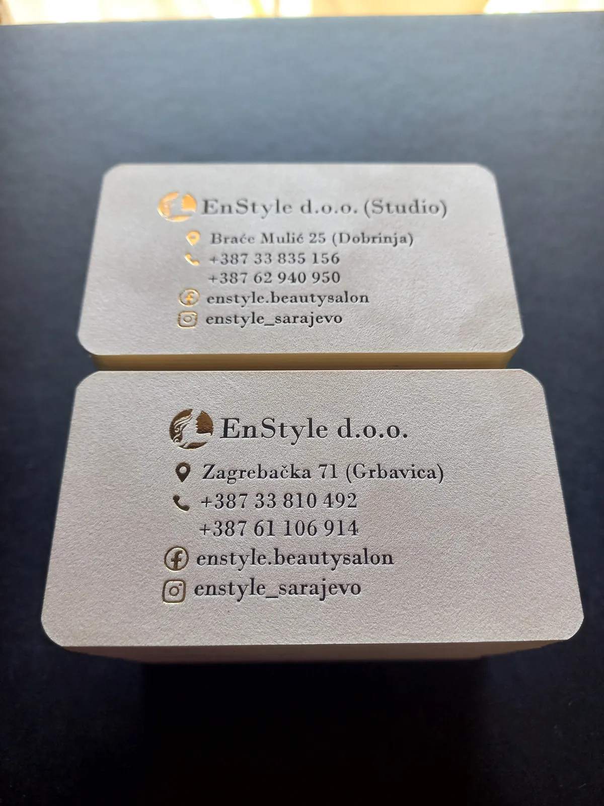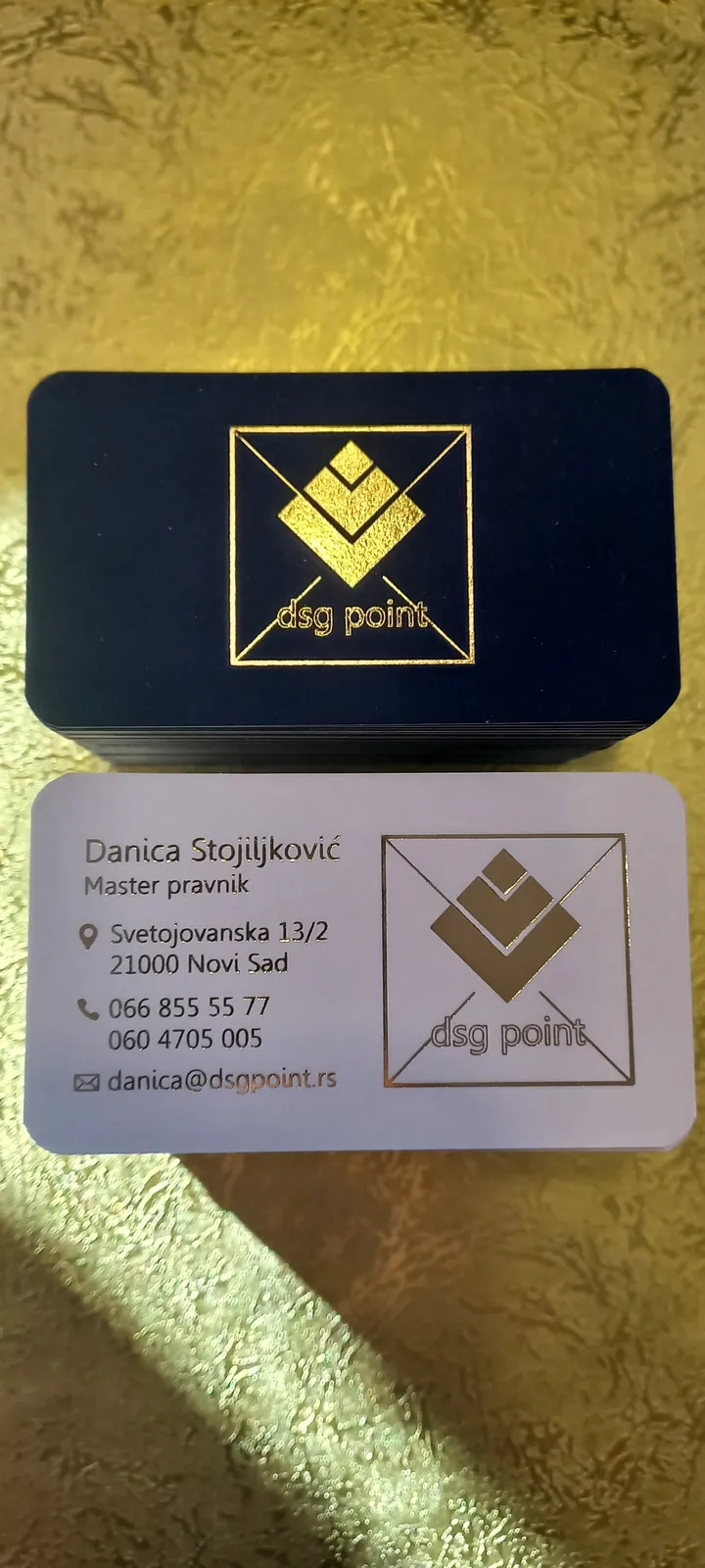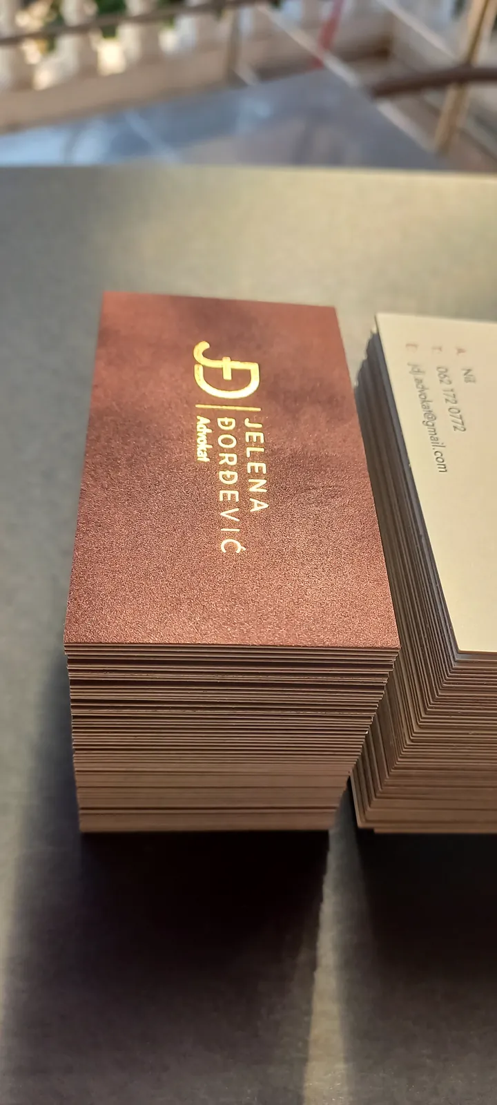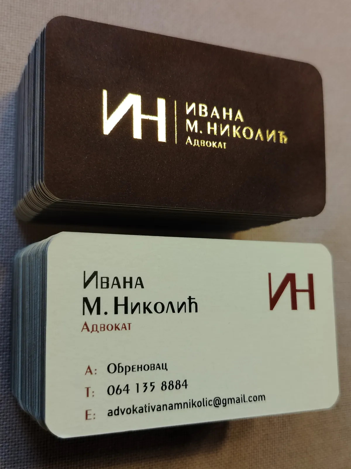 Kada neko zaista želi da bude neobičan sa svojim vizit kartama, neka se odluči za otmene, luksuzne plišane vizit karte! Klijenti mogu odabrati boju pliša, ima ga u svim bojama. Na plišu se radi zlatototisak, srebrotisak ili foliotisak, ne može se raditi obična štampa. Plišane vizit karte takođe su kaširane, čvršće od običnih, lepe se mašinski iz tri sloja. Ponekad kada je logo firme u punom koloru, možemo uraditi i kombinaciju, jedna strana plišana a druga štampana u digitalnoj štampi. Šaljemo plišane vizit karte često u Crnu Goru, Bosnu, Hrvatsku, Švajcarsku, Nemačku jer tamo niko to ne radi!