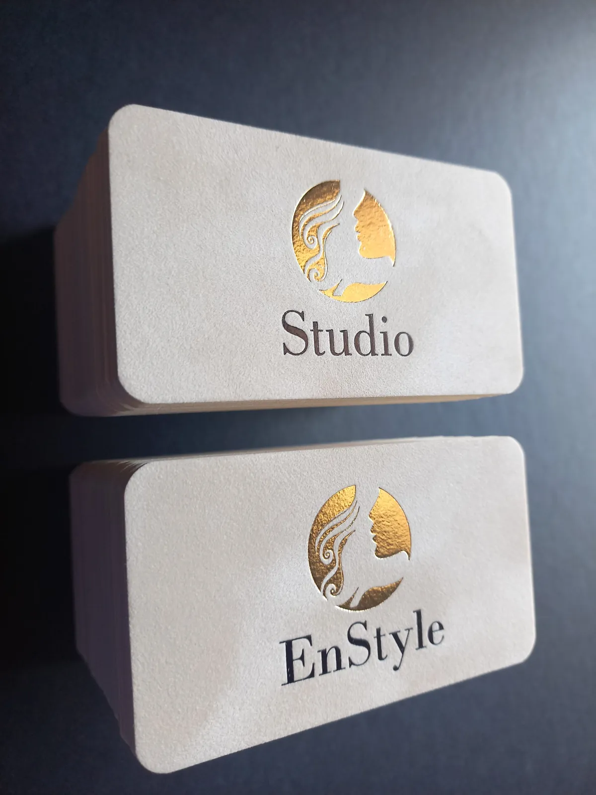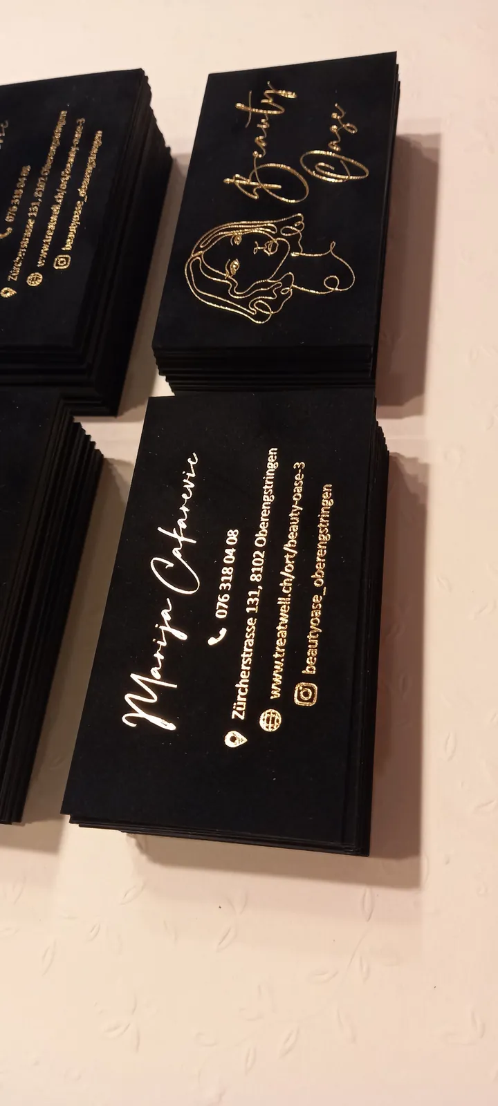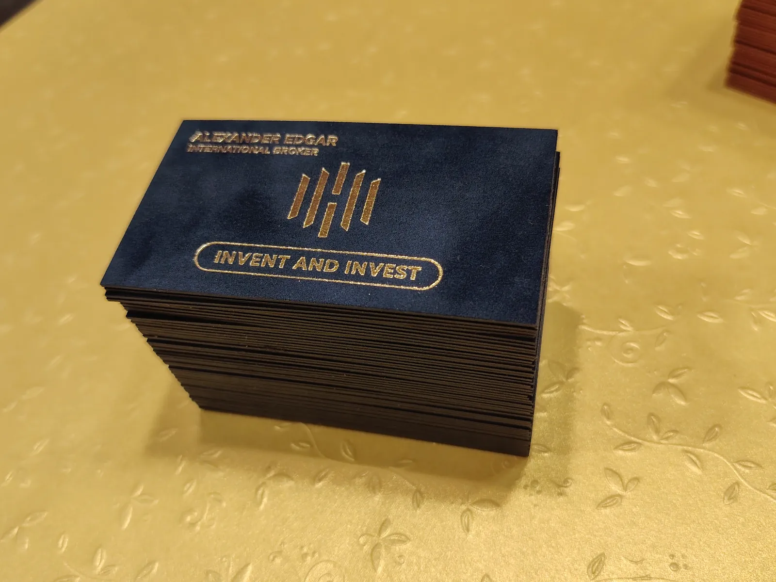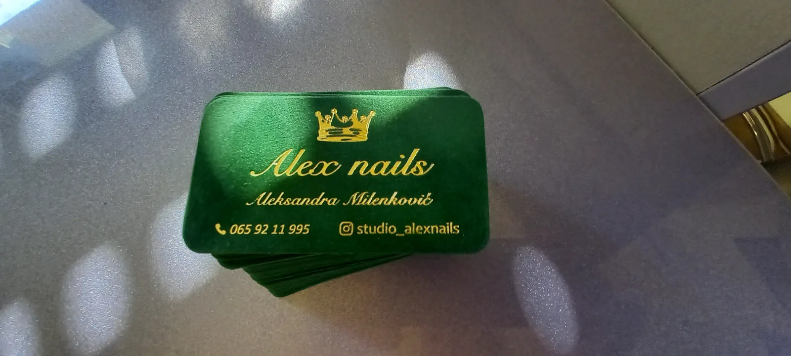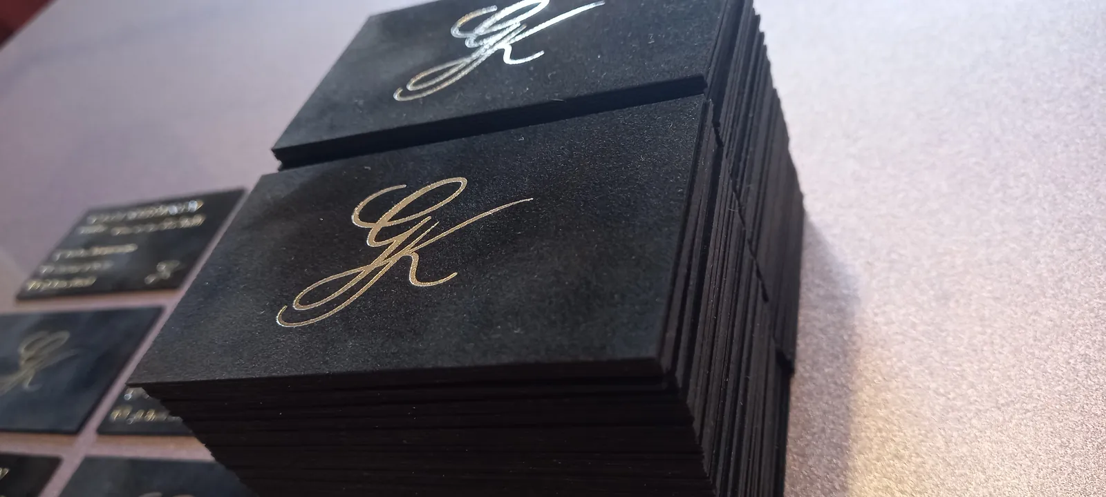 Kada neko zaista želi da bude neobičan sa svojim vizit kartama, neka se odluči za otmene, luksuzne plišane vizit karte! Klijenti mogu odabrati boju pliša, ima ga u svim bojama. Na plišu se radi zlatototisak, srebrotisak ili foliotisak, ne može se raditi obična štampa. Plišane vizit karte takođe su kaširane, čvršće od običnih, lepe se mašinski iz tri sloja. Ponekad kada je logo firme u punom koloru, možemo uraditi i kombinaciju, jedna strana plišana a druga štampana u digitalnoj štampi. Šaljemo plišane vizit karte često u Crnu Goru, Bosnu, Hrvatsku, Švajcarsku, Nemačku jer tamo niko to ne radi!