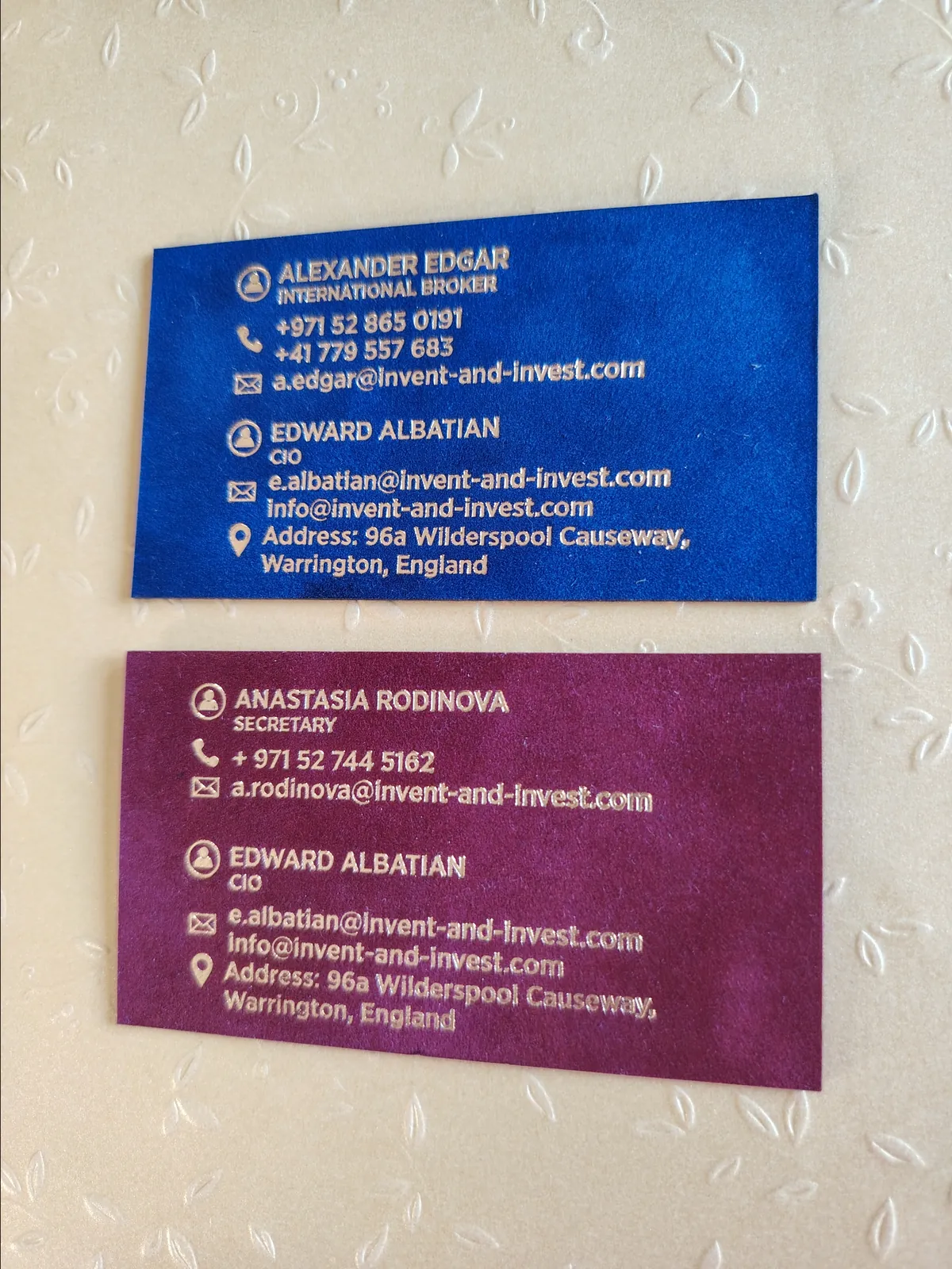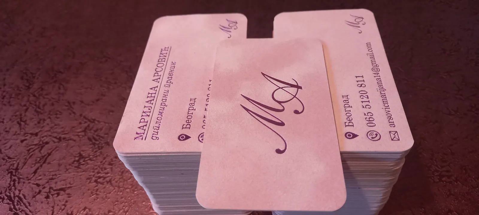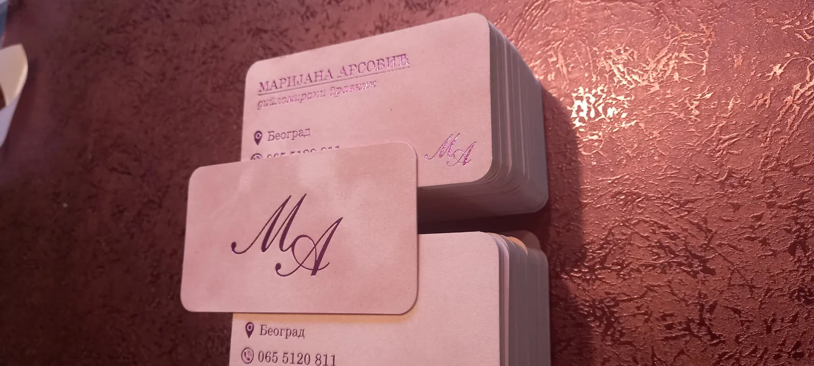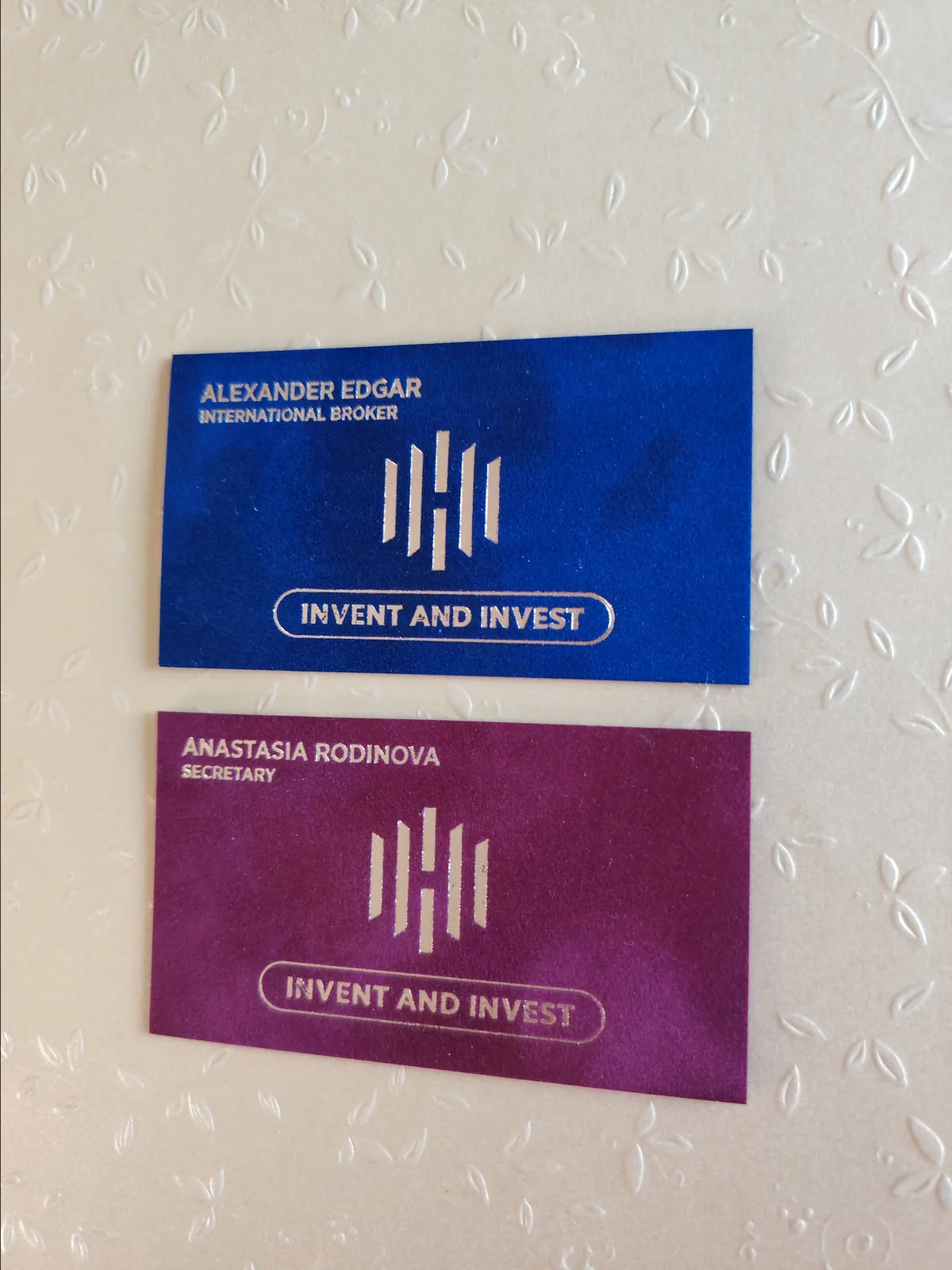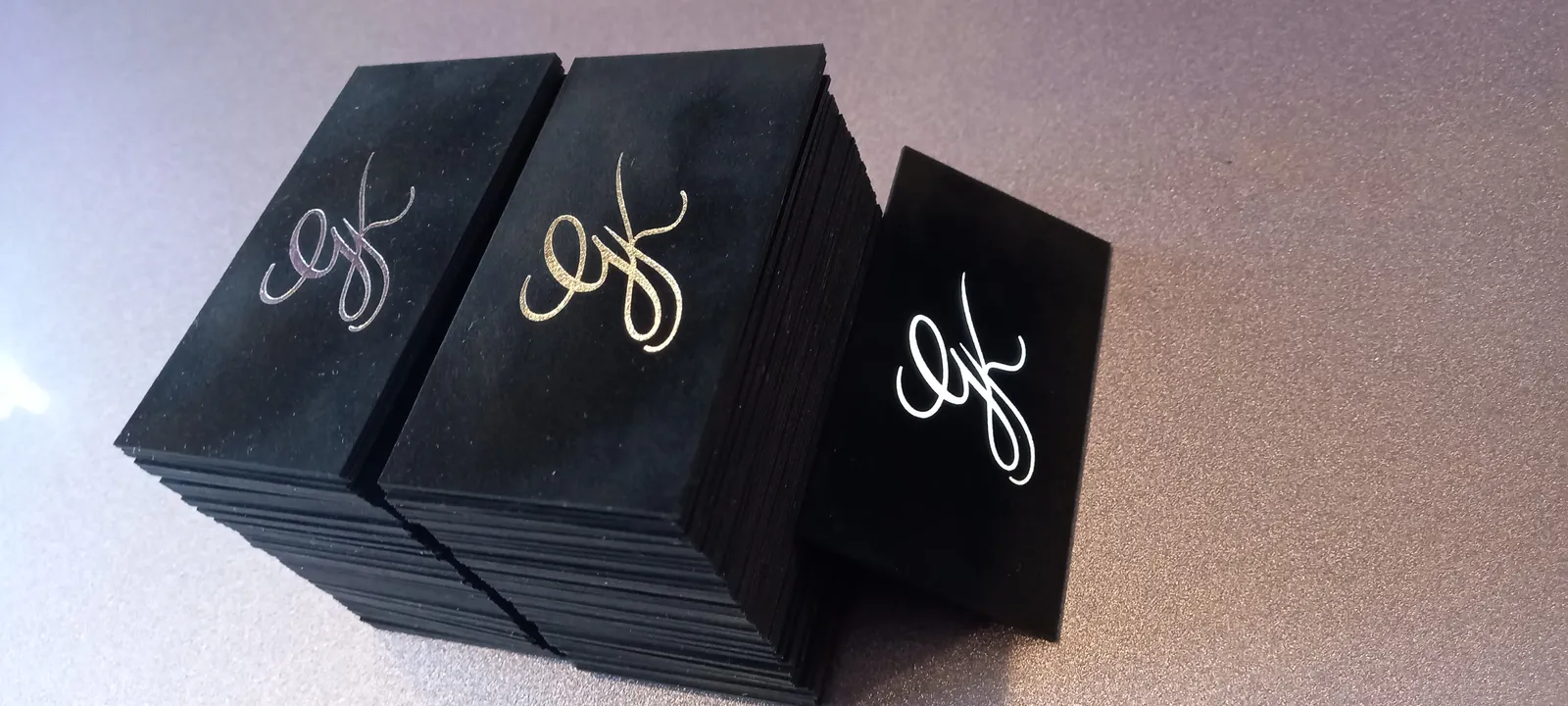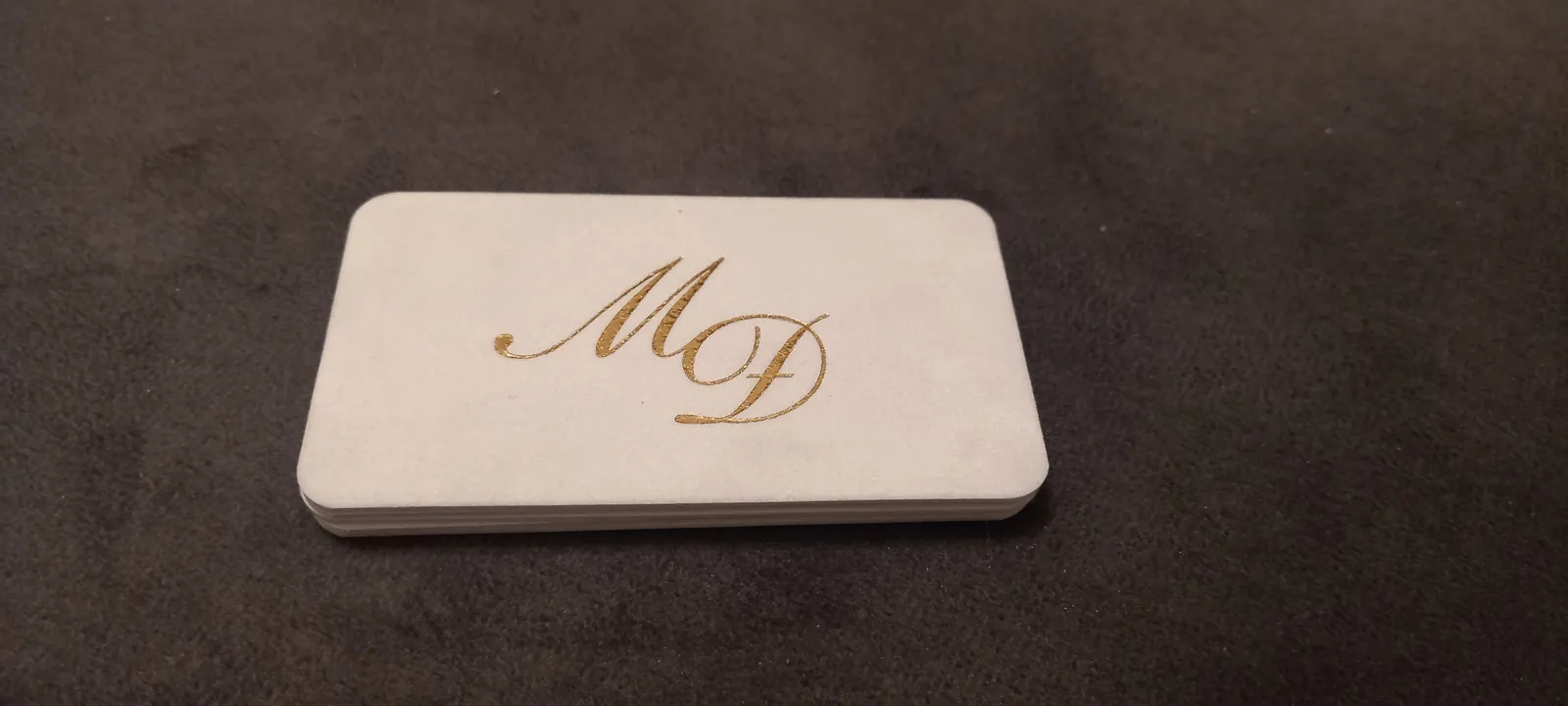 Kada neko zaista želi da bude neobičan sa svojim vizit kartama, neka se odluči za otmene, luksuzne plišane vizit karte! Klijenti mogu odabrati boju pliša, ima ga u svim bojama. Na plišu se radi zlatototisak, srebrotisak ili foliotisak, ne može se raditi obična štampa. Plišane vizit karte takođe su kaširane, čvršće od običnih, lepe se mašinski iz tri sloja. Ponekad kada je logo firme u punom koloru, možemo uraditi i kombinaciju, jedna strana plišana a druga štampana u digitalnoj štampi. Šaljemo plišane vizit karte često u Crnu Goru, Bosnu, Hrvatsku, Švajcarsku, Nemačku jer tamo niko to ne radi!