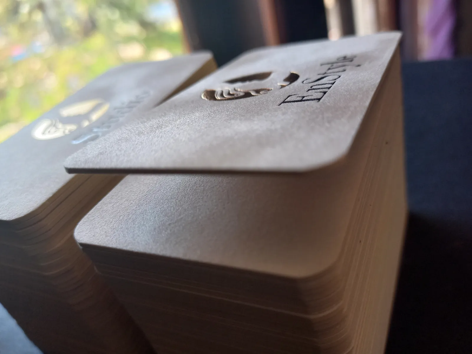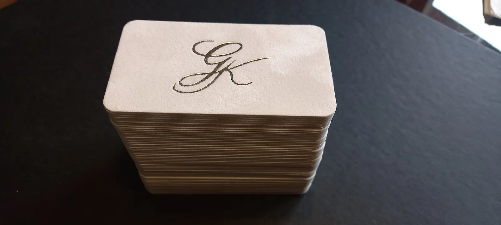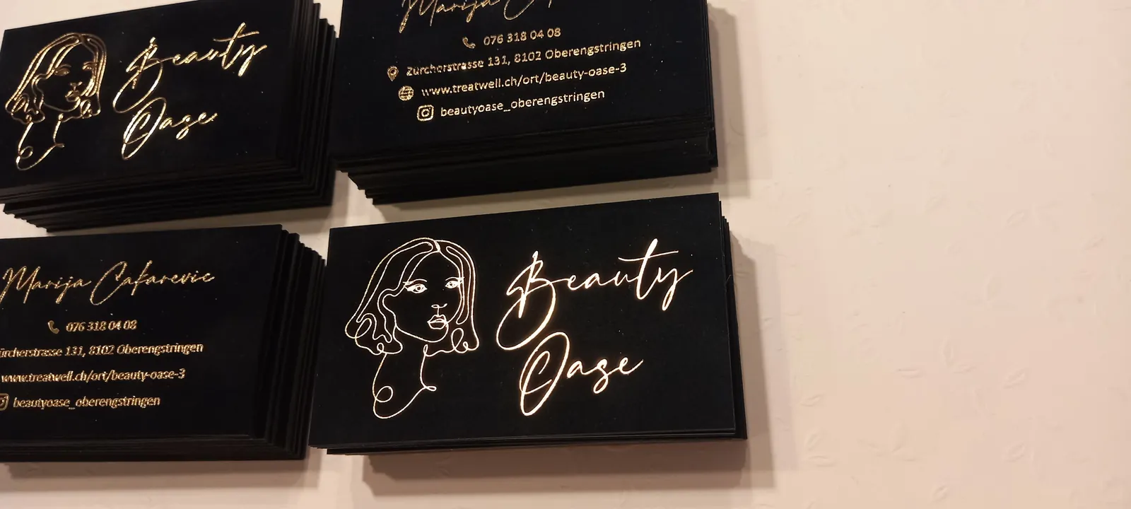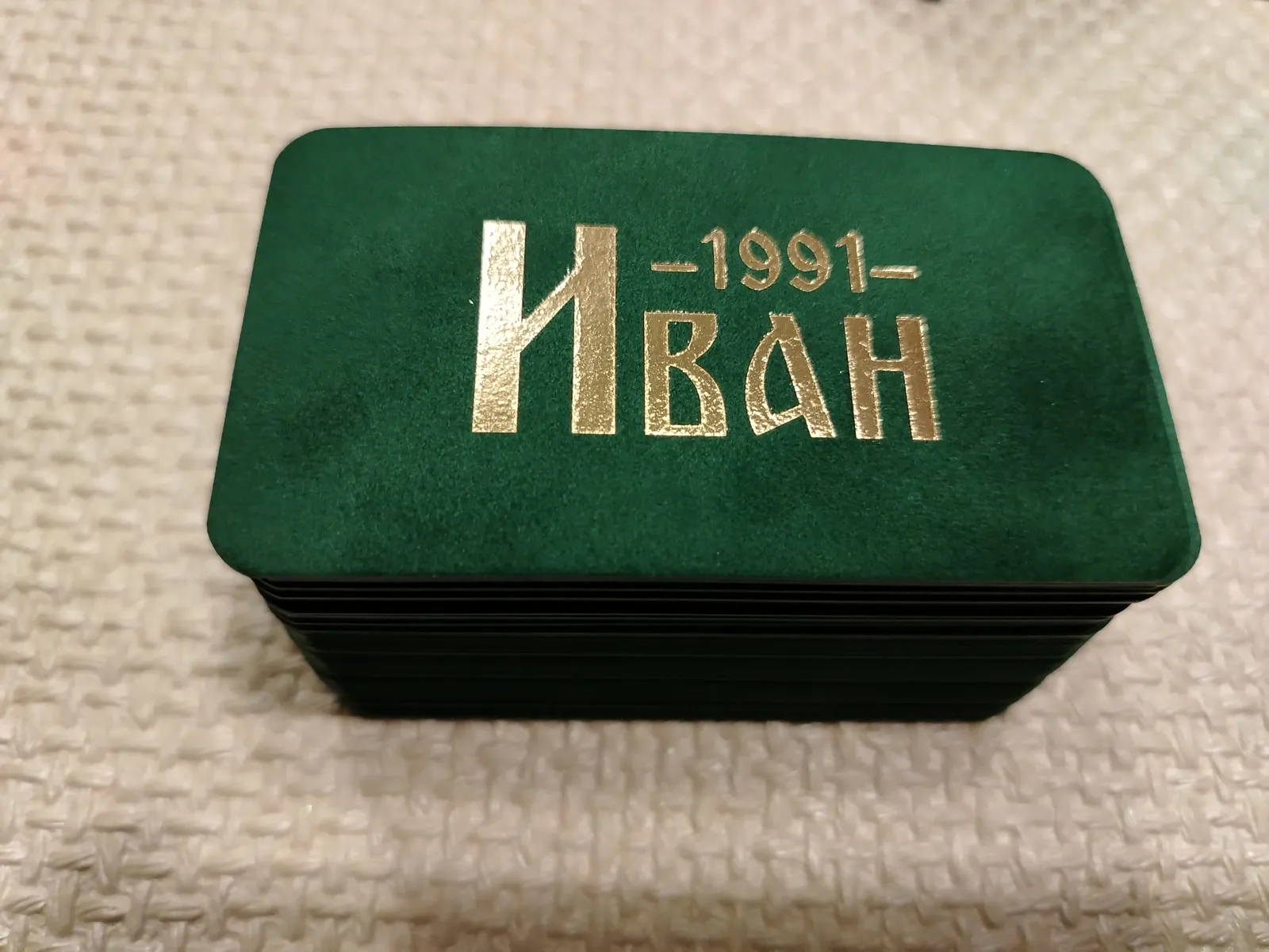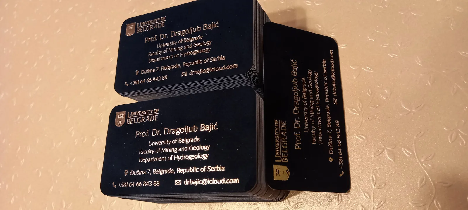 Kada neko zaista želi da bude neobičan sa svojim vizit kartama, neka se odluči za otmene, luksuzne plišane vizit karte! Klijenti mogu odabrati boju pliša, ima ga u svim bojama. Na plišu se radi zlatototisak, srebrotisak ili foliotisak, ne može se raditi obična štampa. Plišane vizit karte takođe su kaširane, čvršće od običnih, lepe se mašinski iz tri sloja. Ponekad kada je logo firme u punom koloru, možemo uraditi i kombinaciju, jedna strana plišana a druga štampana u digitalnoj štampi. Šaljemo plišane vizit karte često u Crnu Goru, Bosnu, Hrvatsku, Švajcarsku, Nemačku jer tamo niko to ne radi!