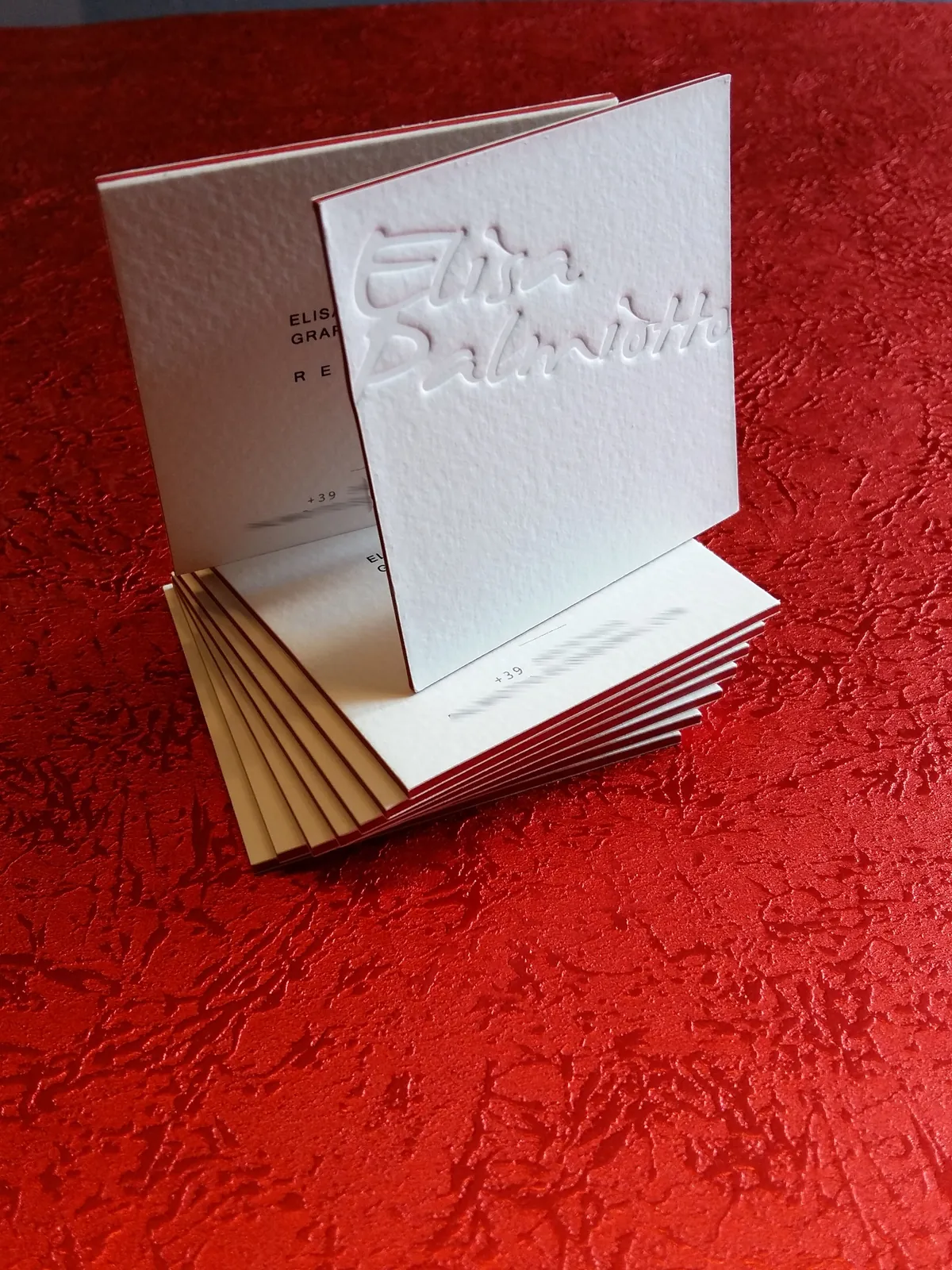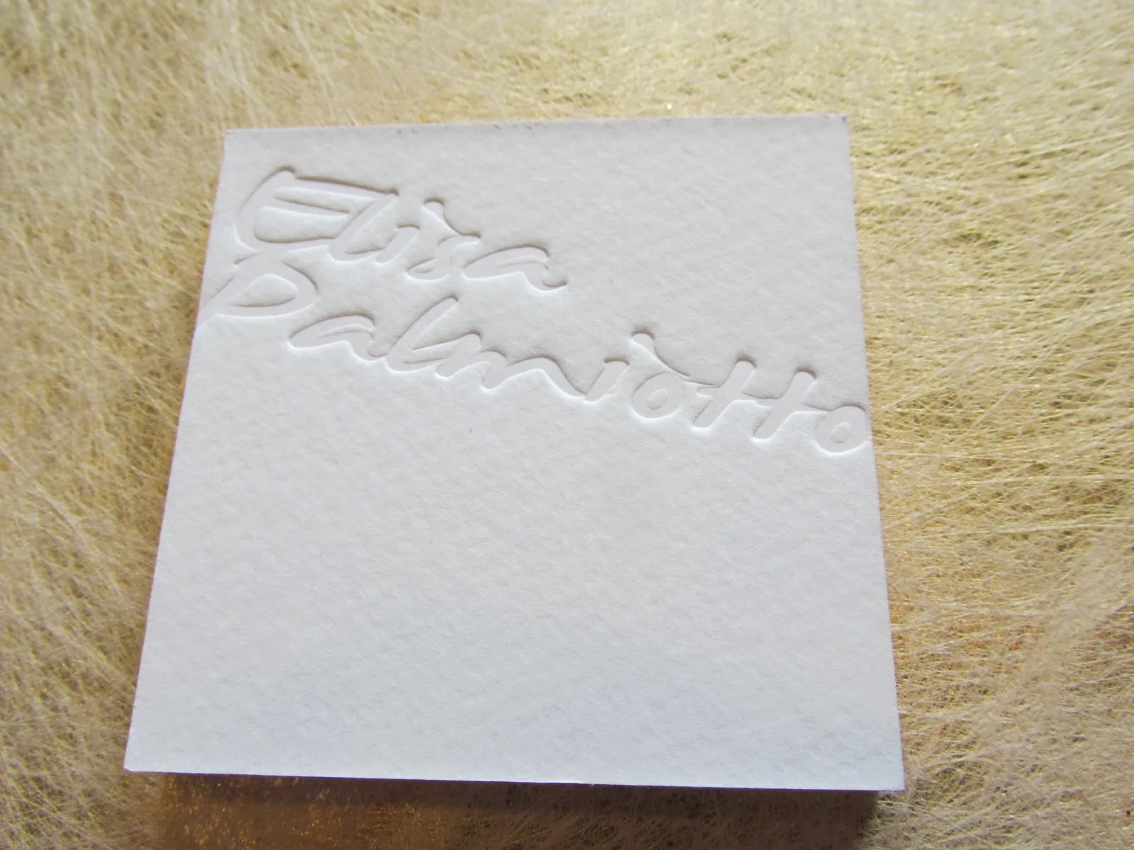 Neko baš želi pojedini detalj ili logo ili svoj potpis u reljefnoj štampi, letterpress tehnici, utisnuta slova. Pošto reljefna štampa ostavlja trag na poleđini, često u ovom slučaju radimo takođe kaširanje, mašinsko lepljenje 3 sloja papira tako da su ove vizit karte veoma čvrste i kvalitetne. Ako je tekst samo na prednjoj strani, u tom slučaju ne mora da se radi kaširanje.