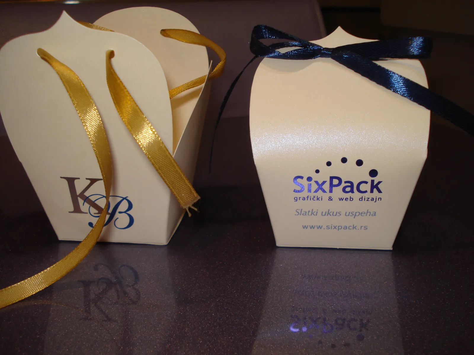Izrada kutija za bombone kao poklončić za goste sa štampom logo-a firme (foto 18,57,60, 66-72)