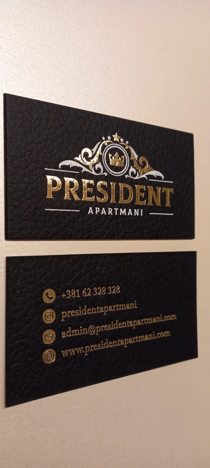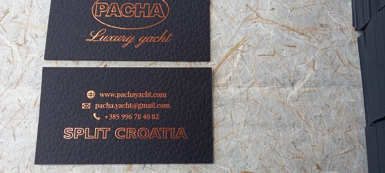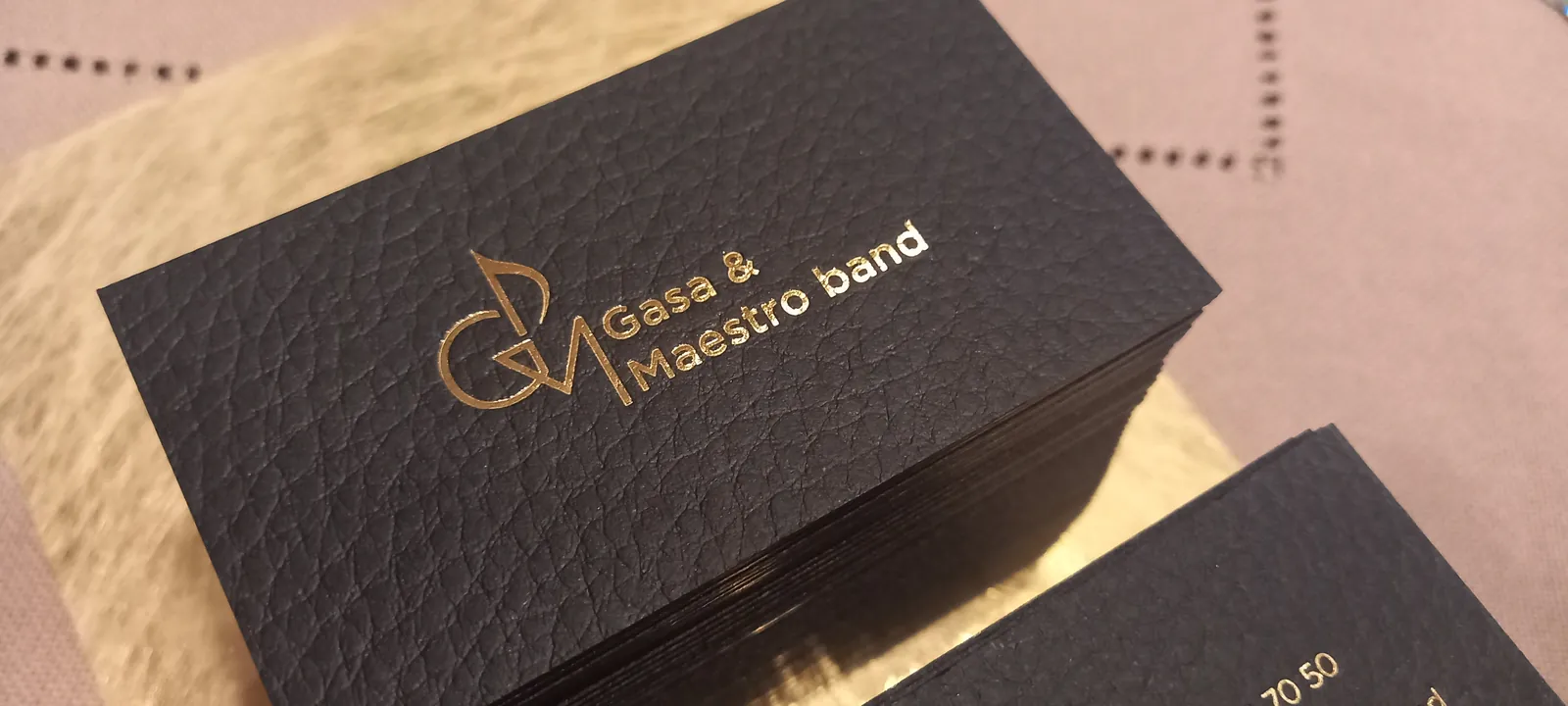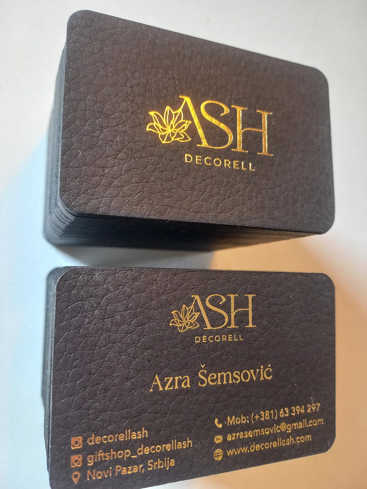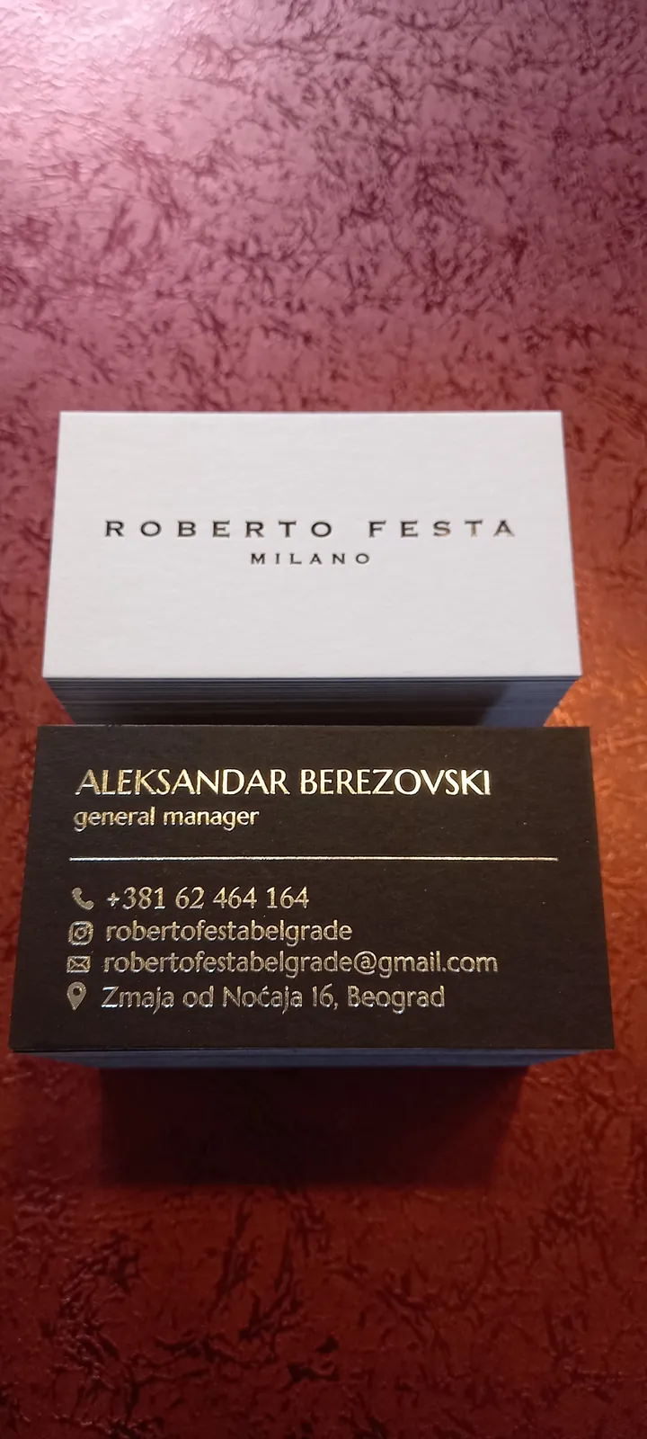 Kada neko zaista želi otmene, luksuzne i neobične vizit karte, neka se obrati nama. Za ovakve vizit karte zaista je potrebno umeće stečeno godinama rada. Kada neko želi izuzetno čvrstu vizit kartu, mi možemo spojiti 3 sloja papira, tako da vizit karta bude debela 1000 mm u preseku. Radili smo čak i deblje, 3-4 cm u preseku. To se više oseća na dodir nego preko ekrana, naravno. Lepljenje slojeva papira se radi mašinski i stručno.Takođe kada neko želi na vizit kartama reljefnu štampu, utisnuta slova, da se ona ne bi videla sa druge strane, radi se kaširanje. Zatim kada je reč o luksuznim papirima sa strukturom kože ili krokodilske kože, koji su takvi samo sa prednje strane,radi se kaširanje kako bi vizit karta bila obostrano sa istom strukturom. Kada je reč o ovim kaširanim vizit kartama, radimo i foliotisak i digitalnu štampu.