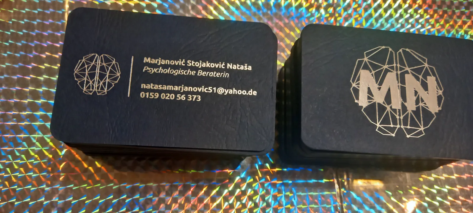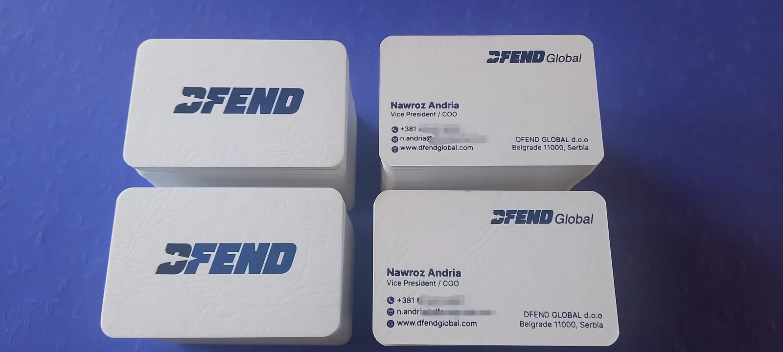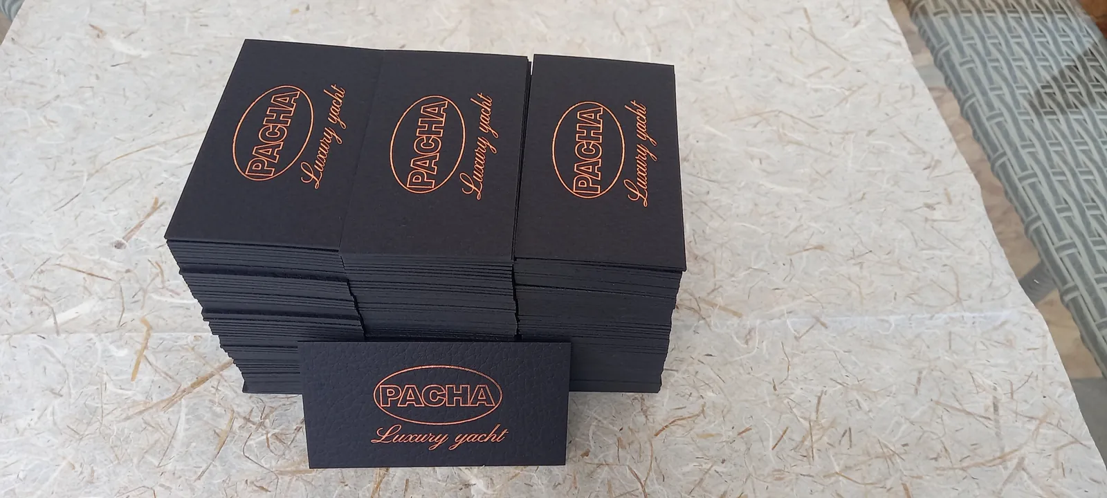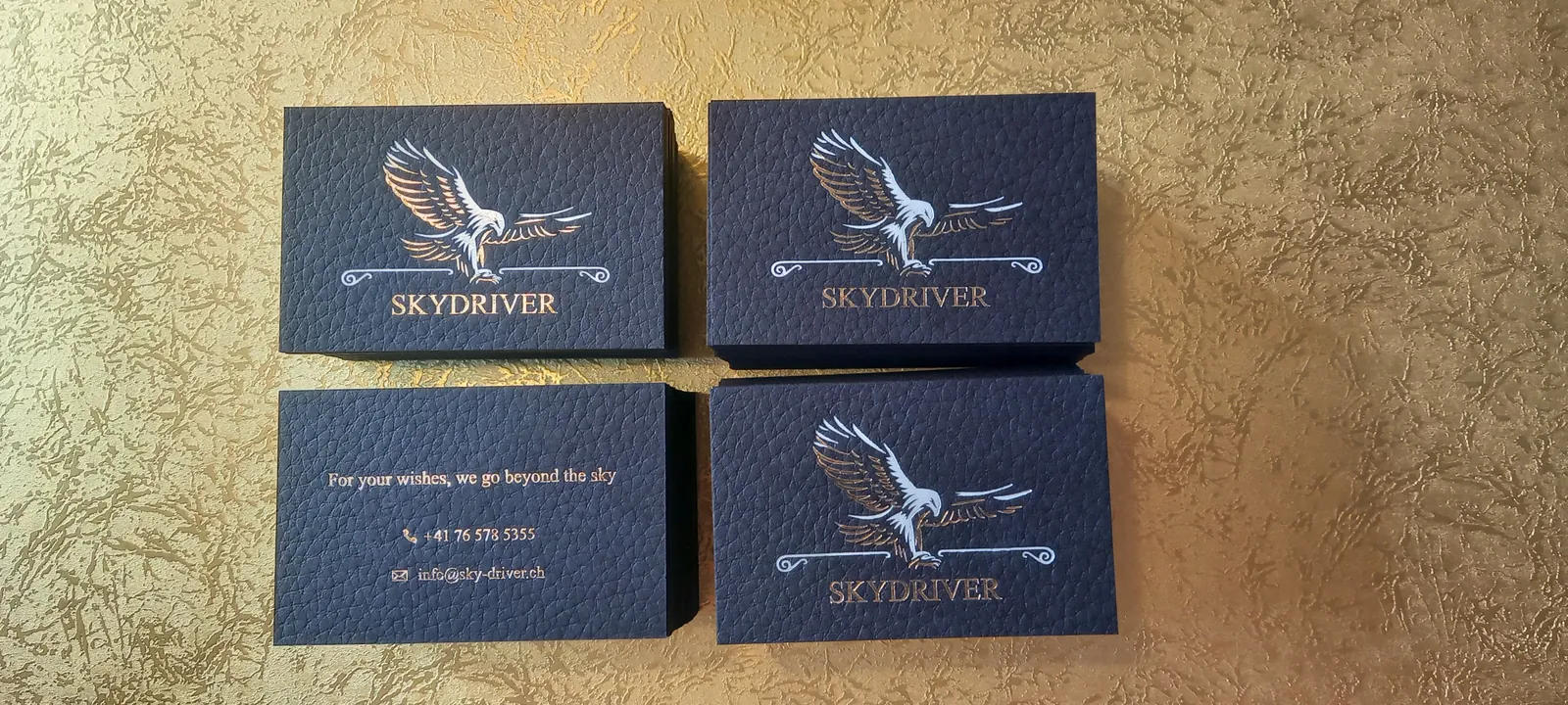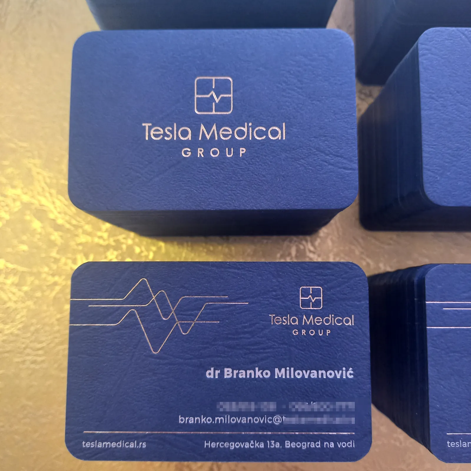 Kada neko zaista želi otmene, luksuzne i neobične vizit karte, neka se obrati nama. Za ovakve vizit karte zaista je potrebno umeće stečeno godinama rada. Kada neko želi izuzetno čvrstu vizit kartu, mi možemo spojiti 3 sloja papira, tako da vizit karta bude debela 1000 mm u preseku. Radili smo čak i deblje, 3-4 cm u preseku. To se više oseća na dodir nego preko ekrana, naravno. Lepljenje slojeva papira se radi mašinski i stručno.Takođe kada neko želi na vizit kartama reljefnu štampu, utisnuta slova, da se ona ne bi videla sa druge strane, radi se kaširanje. Zatim kada je reč o luksuznim papirima sa strukturom kože ili krokodilske kože, koji su takvi samo sa prednje strane,radi se kaširanje kako bi vizit karta bila obostrano sa istom strukturom. Kada je reč o ovim kaširanim vizit kartama, radimo i foliotisak i digitalnu štampu.